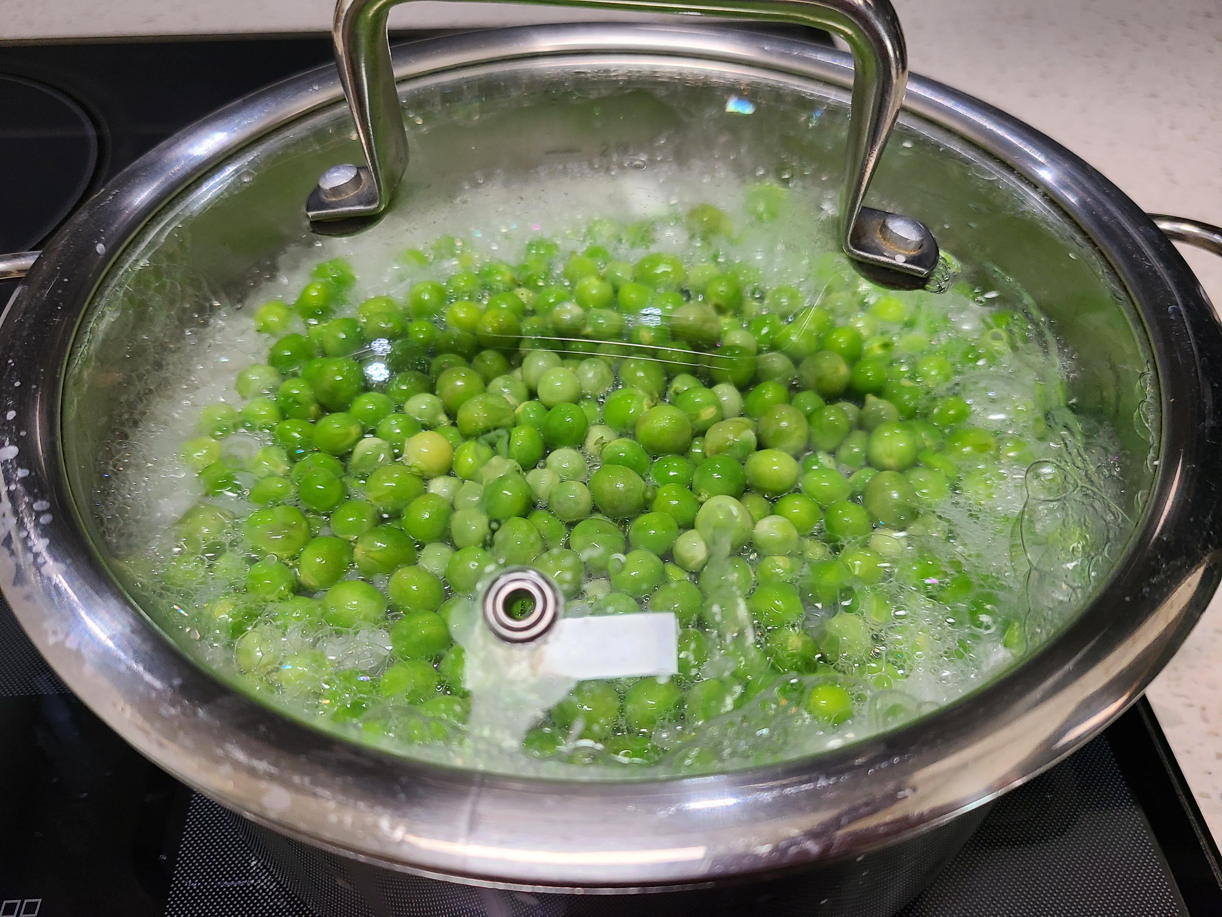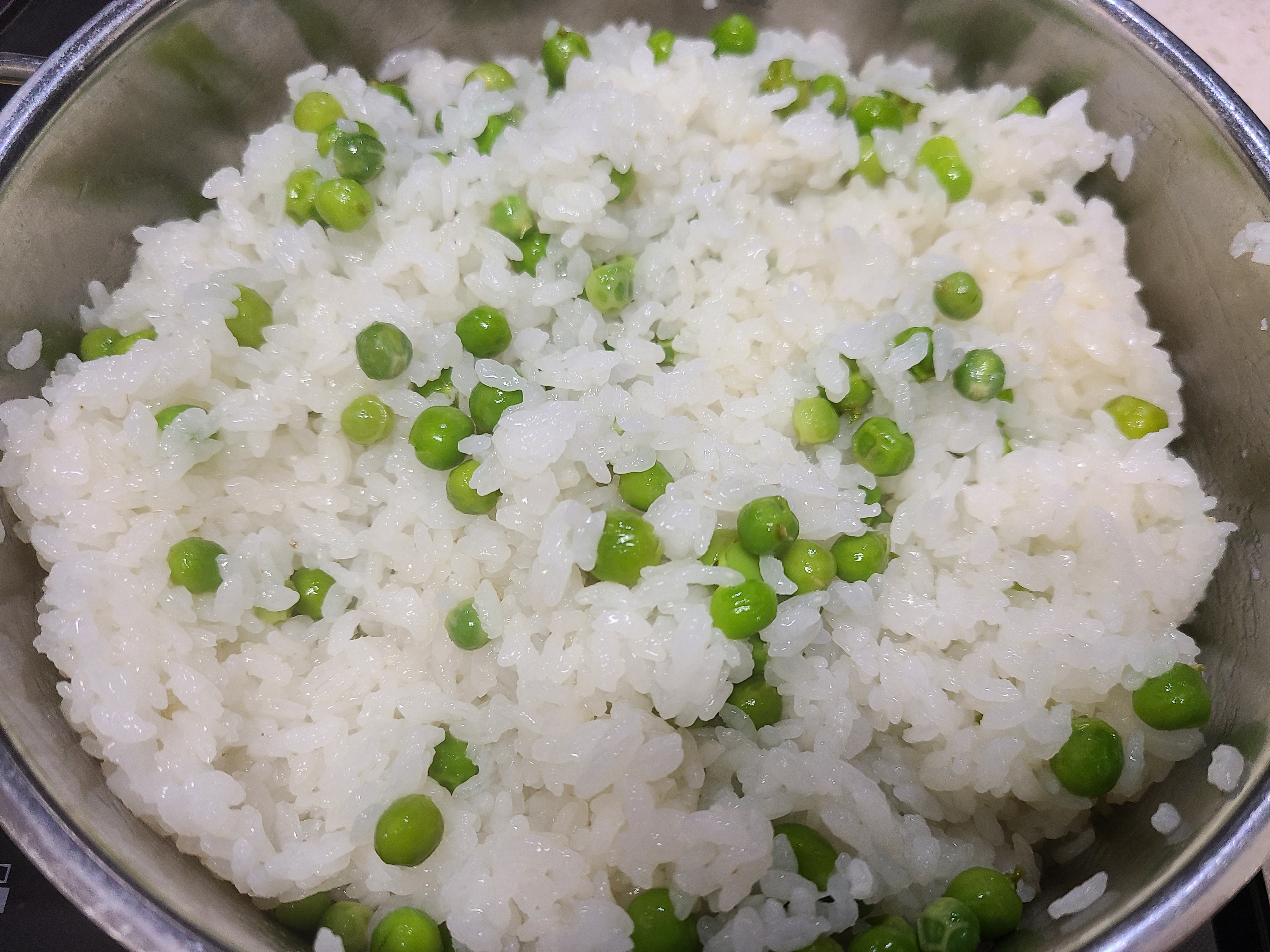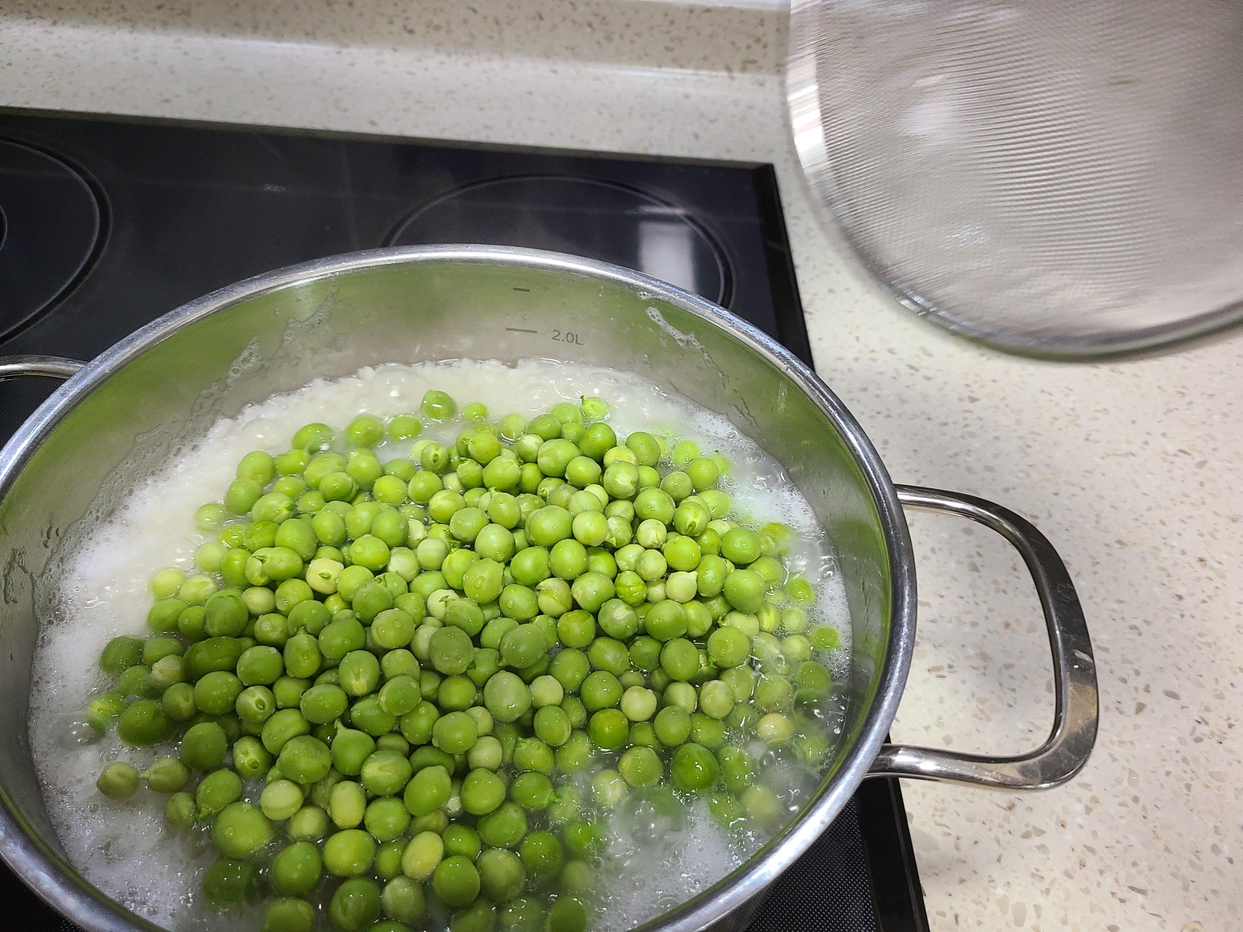 완두콩은 연하기 때문에 처음부터 넣는 것보다는 밥이 끓기 시작한 후 완두콩을 넣어주면 탱글탱글하다.