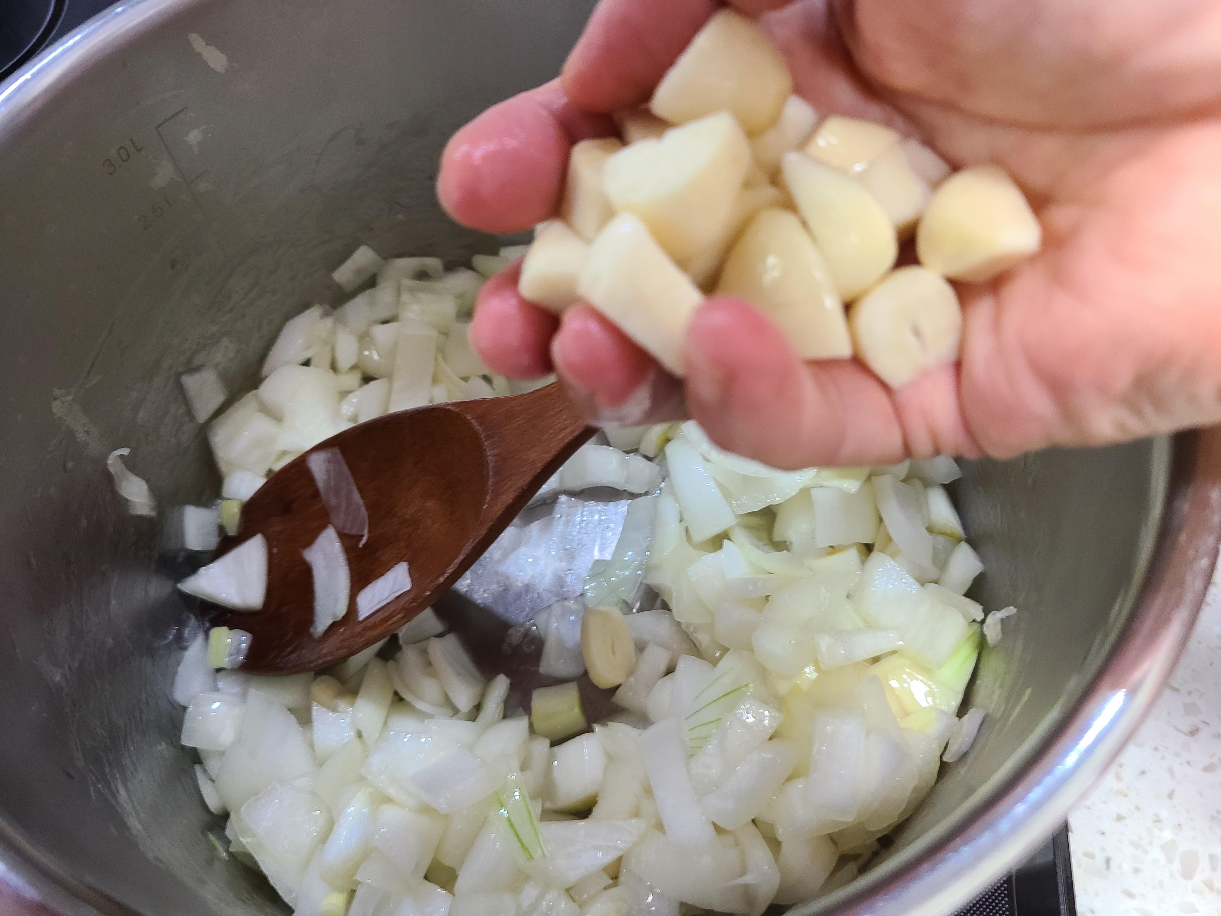 3. 카레에 풍미를 더해 주려고 통마늘을 적당히 잘라서 넣고 볶아주었다.
