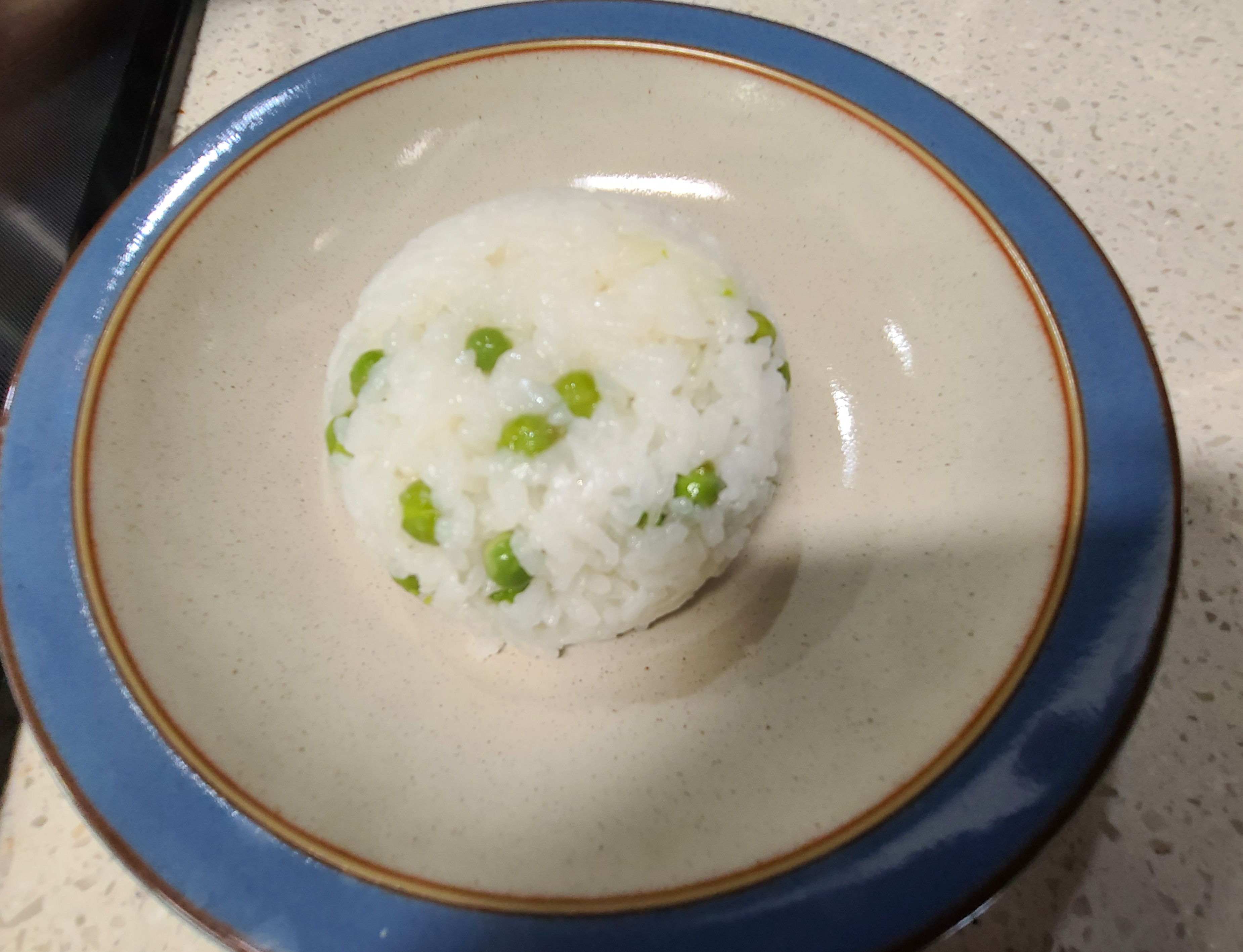 완두콩을 넣어 밥을 지으니 색이 너무 예쁘다.
