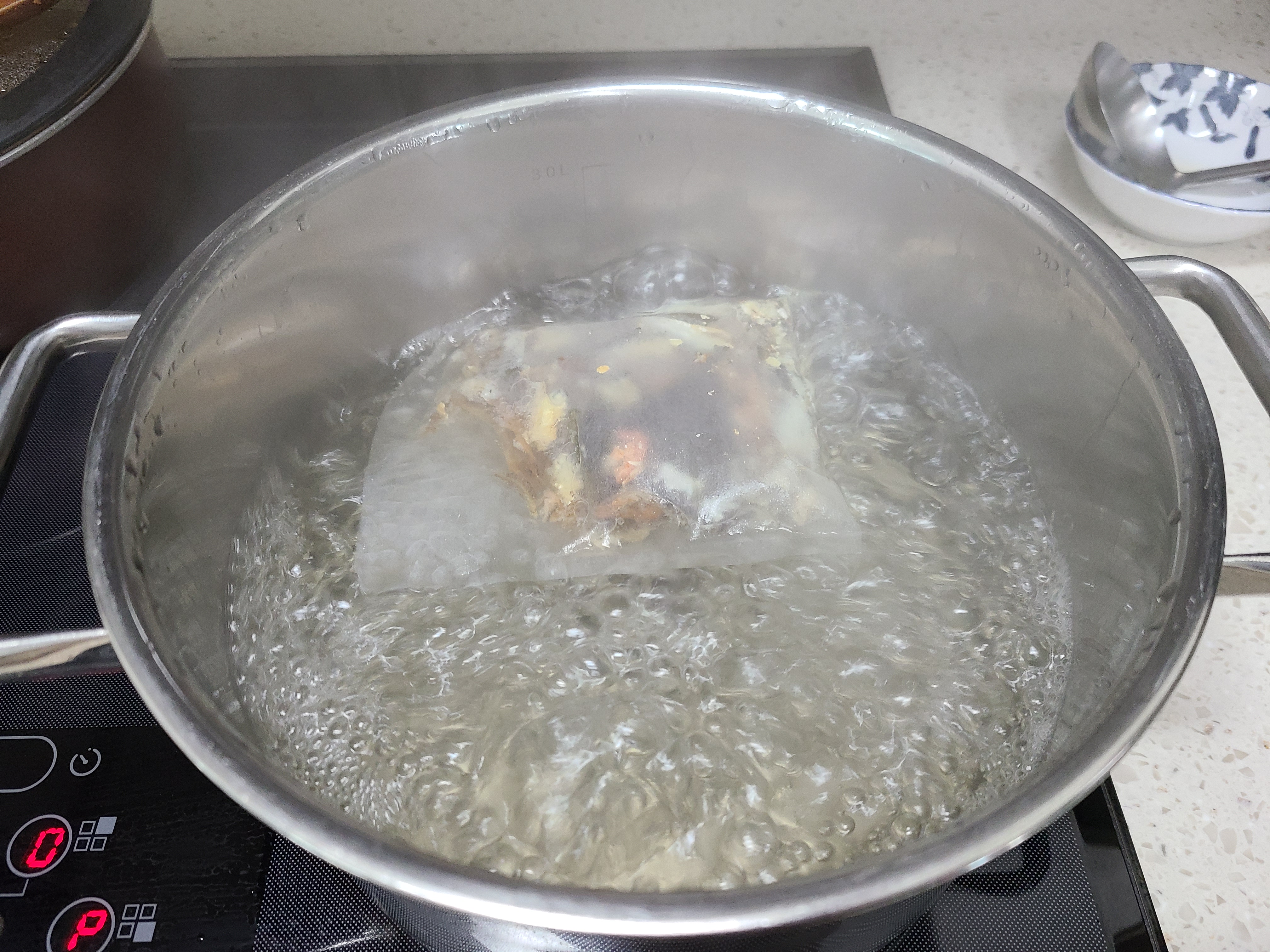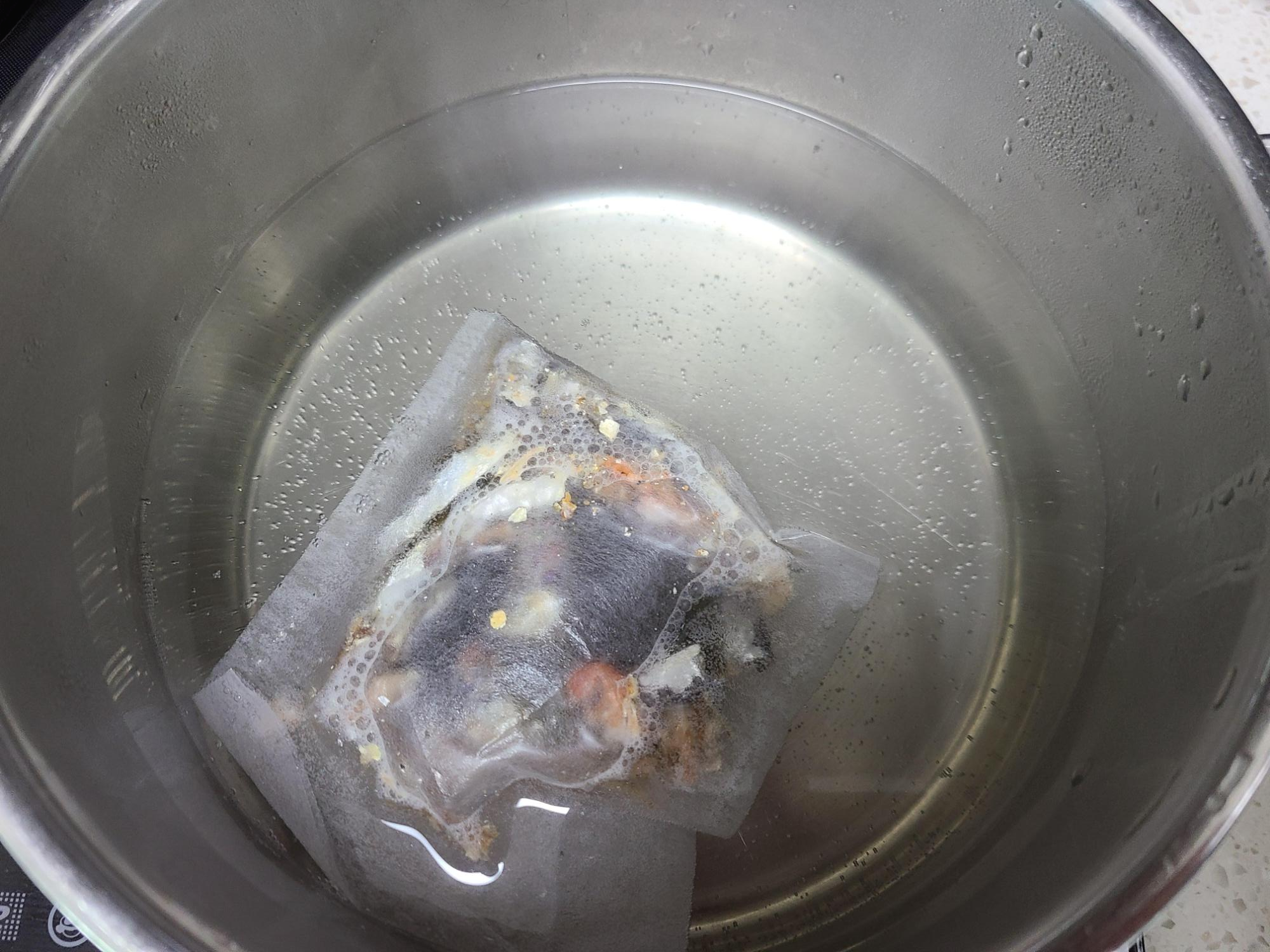 1. 냄비에 생수 500ml를 붓고 다시팩을 넣어 육수를 내준다.( 디포리와 보리새우가 떨어져서 다시팩으로 대신했다.)