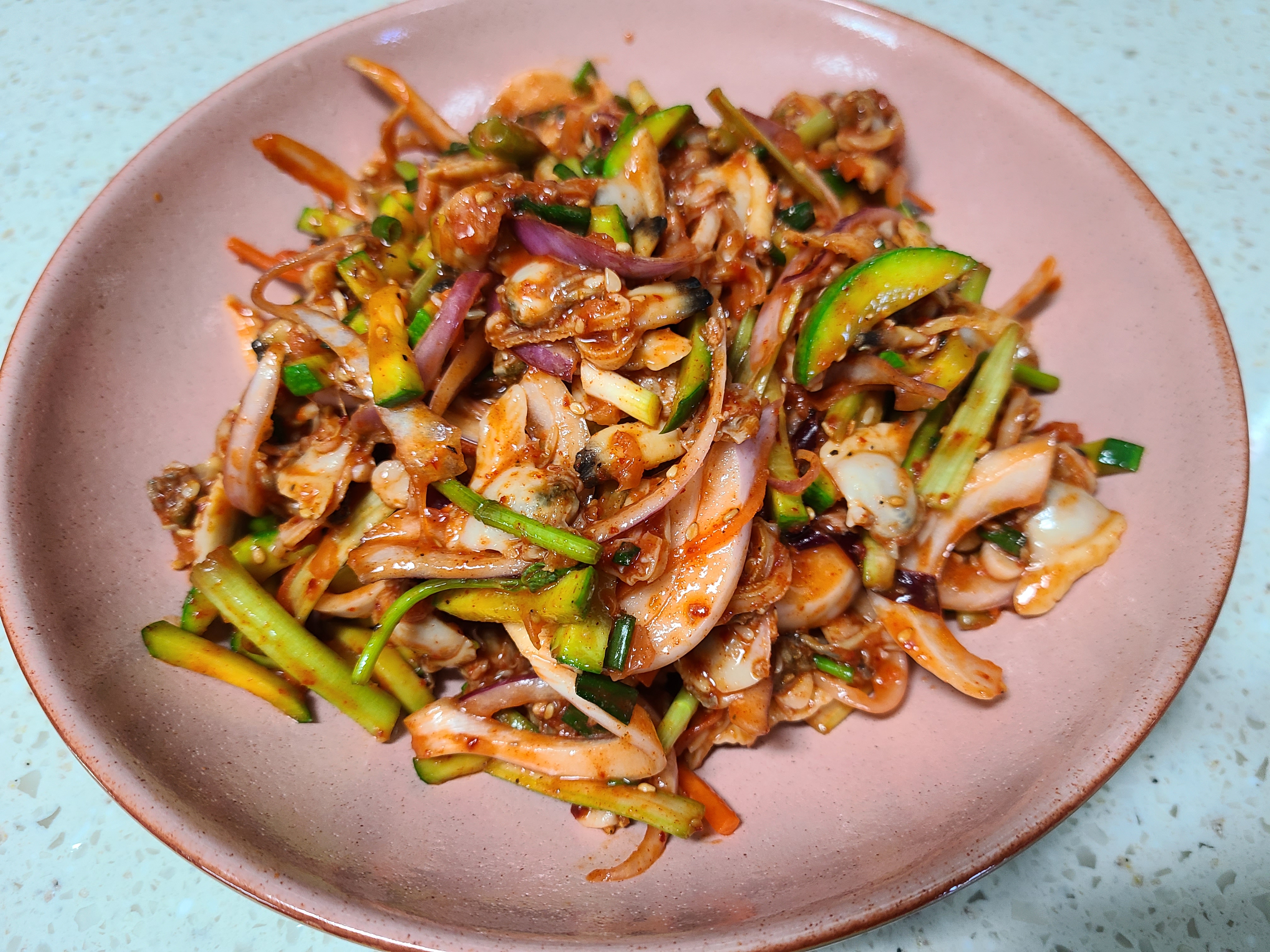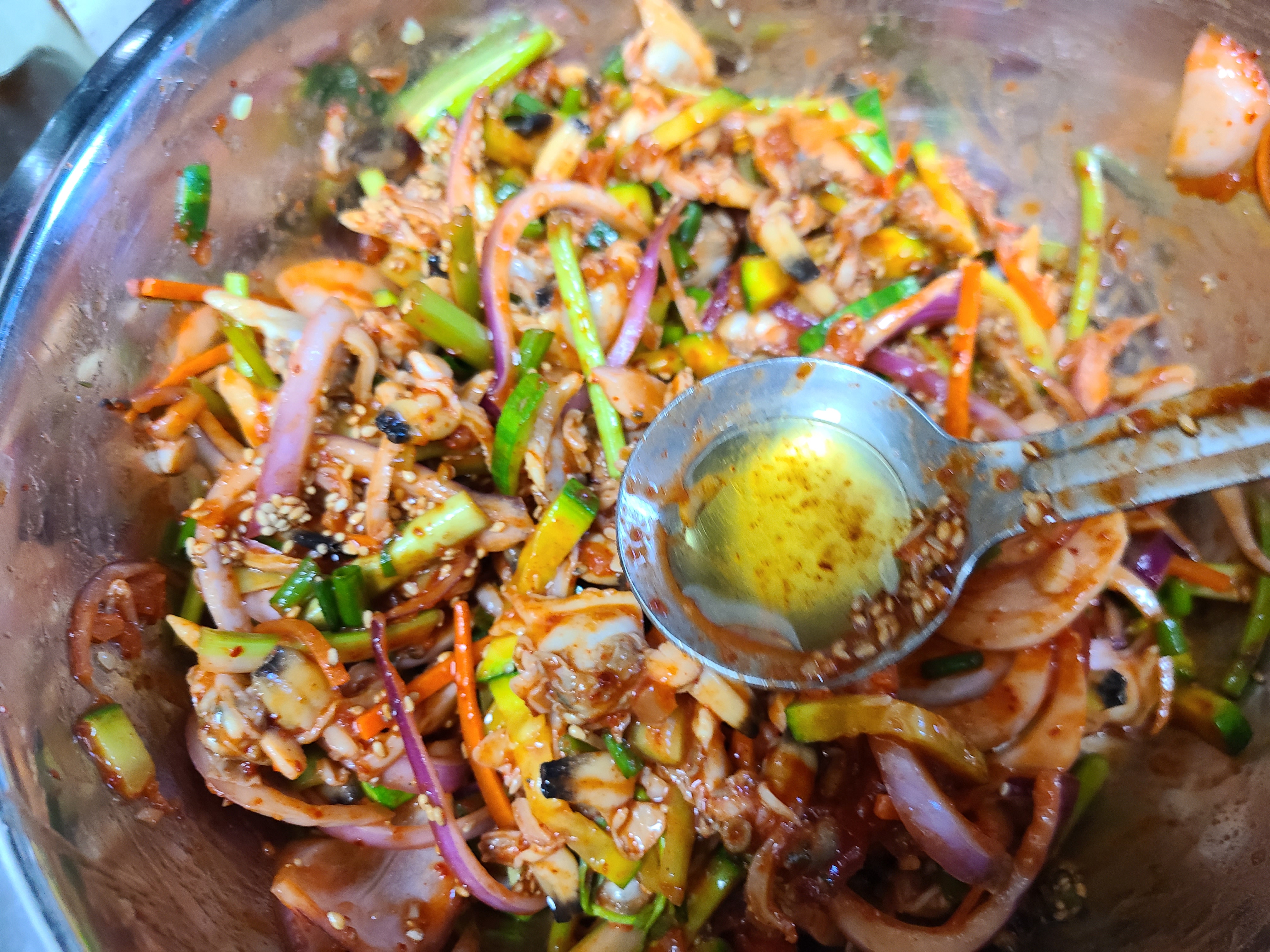 강진에서 맛있게 먹었던 바지락 회무침을 먹어본 기억만으로 만들었는데 절반은 성공한듯하다.