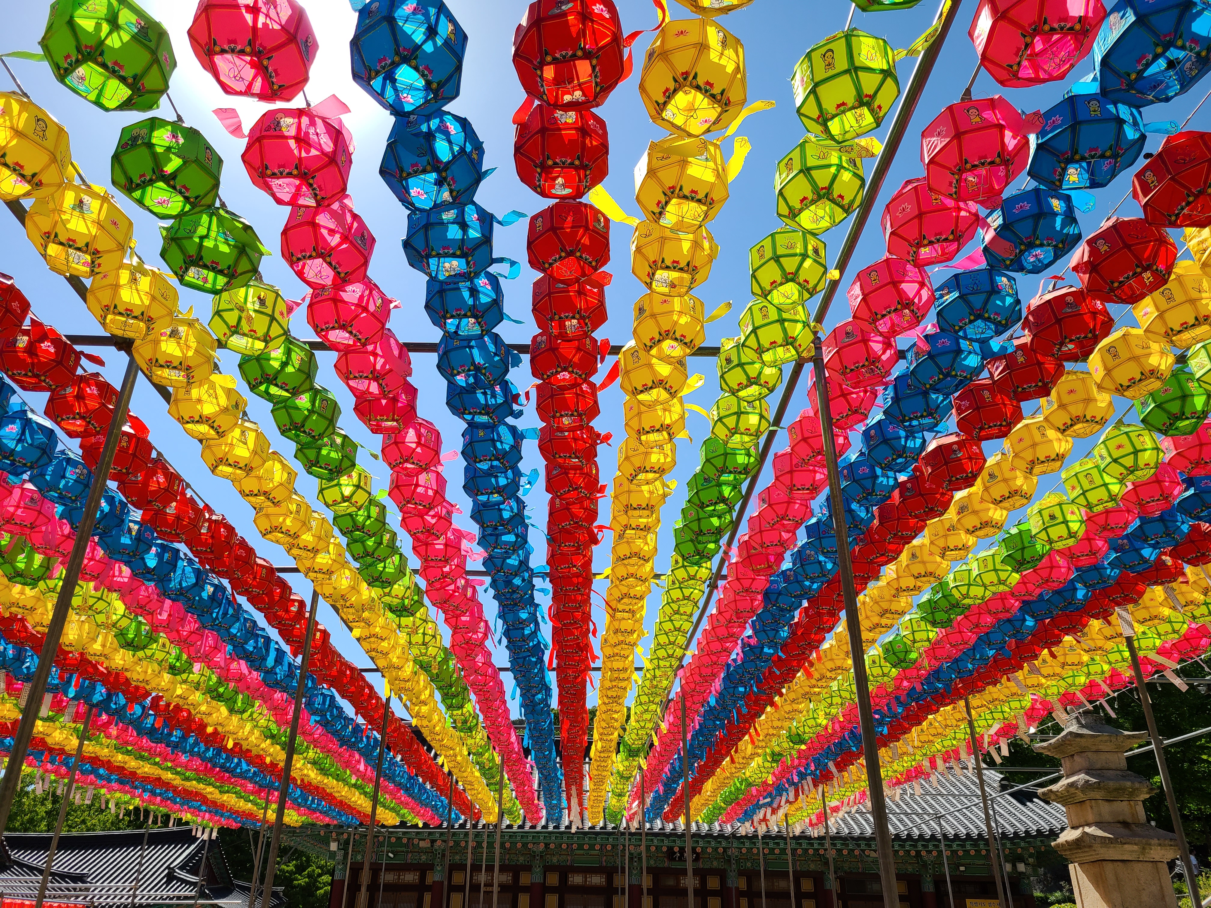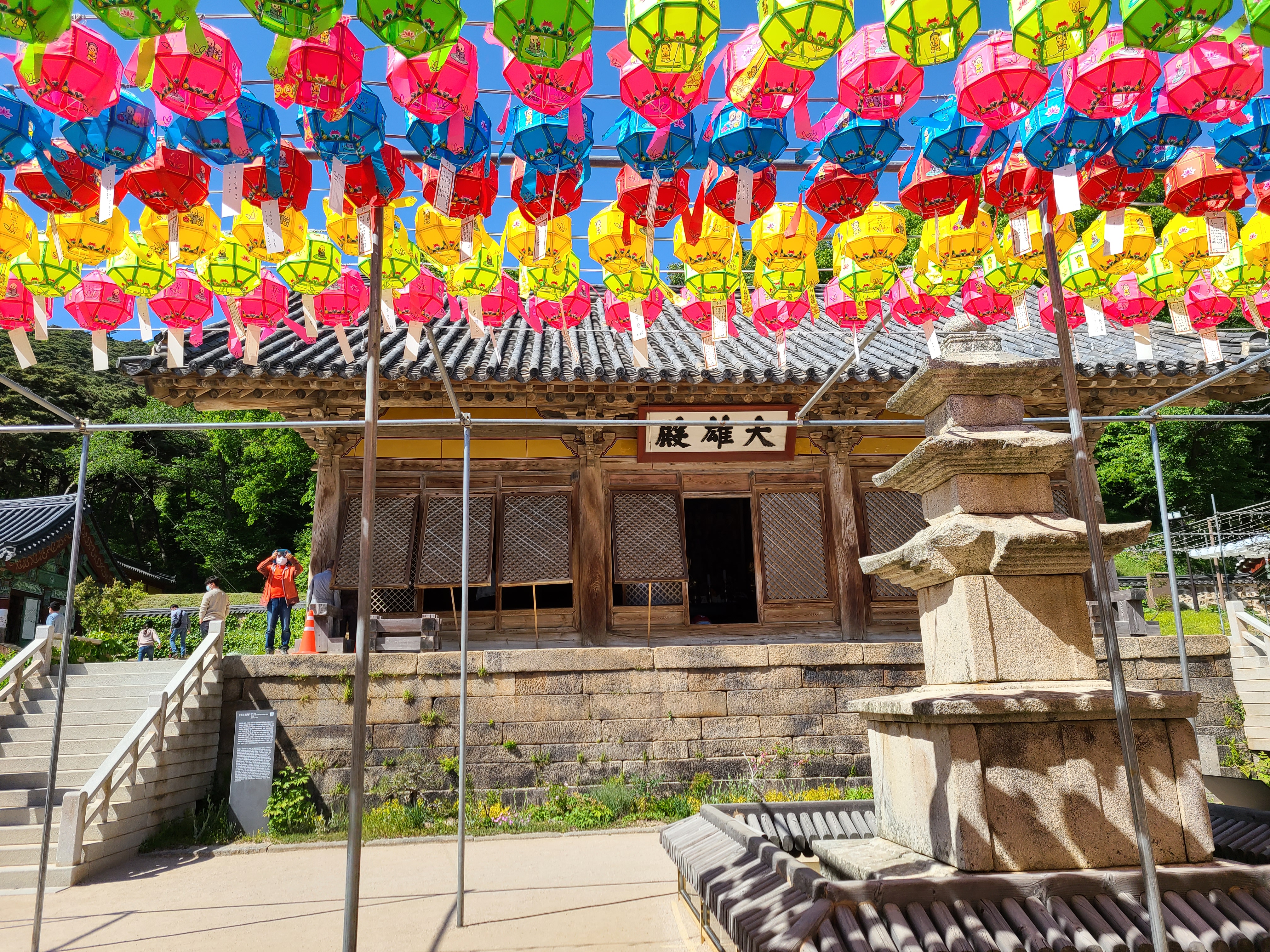 부처님 오신 날이 10일 정도 남아서인지 대웅전 앞에 연등이 가득 걸려있었다.