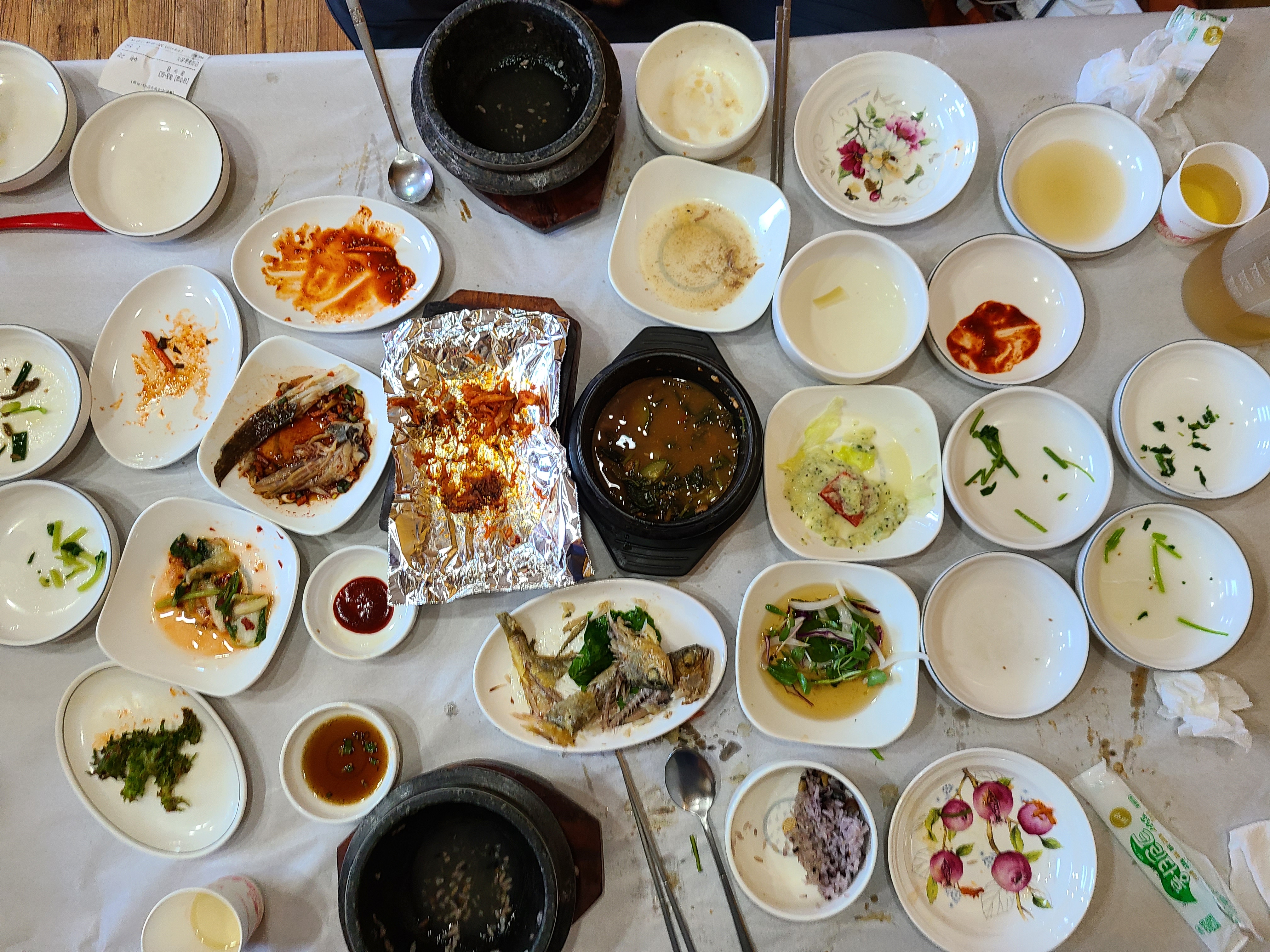 된장찌개와 더덕구이, 불고기, 가오리찜, 조기구이가 나오고 돌솥밥이 나왔다. 된장찌개 맛이 좋았고 더덕구이와 불고기, 가오리찜 맛은 좋았는데 조기구이는 별로였다.