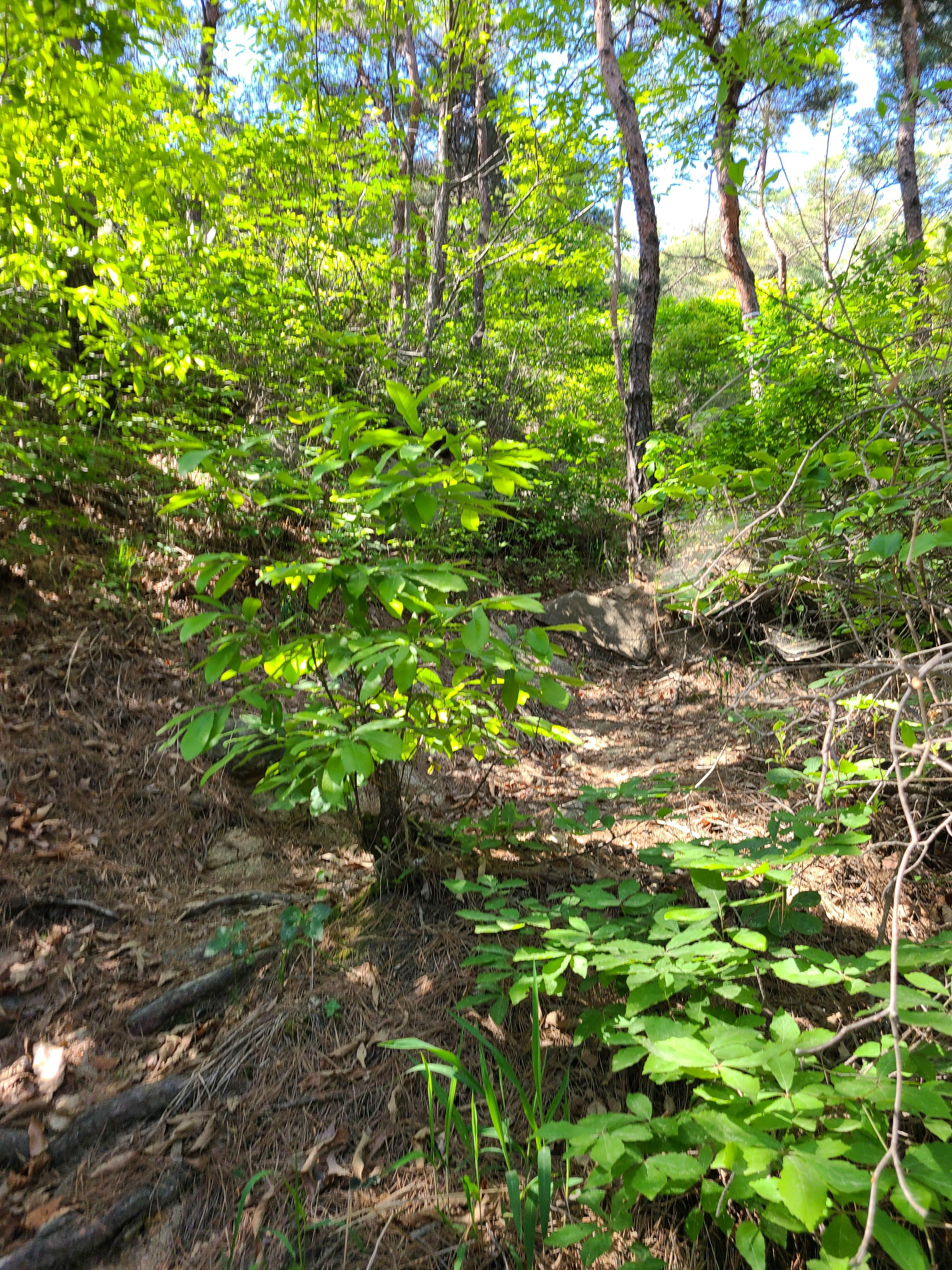 나뭇가지에 매달려 있는 산악대 표시를 보더니 남편은 등산로가 맞다고 한다. 나는 무언가 잘못 가고 있다는 생각이 들어 휴대폰으로 찍었던 사진을 찾아보았다.