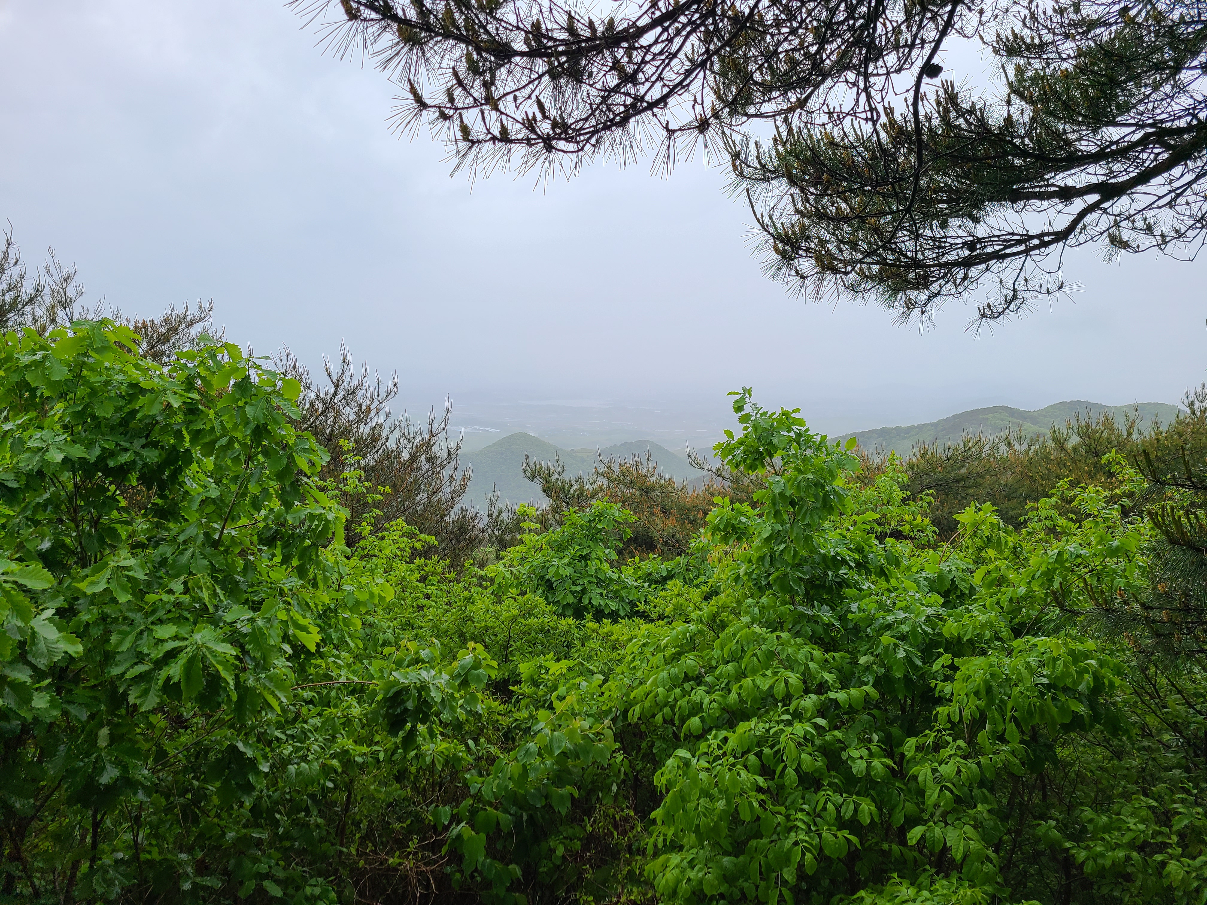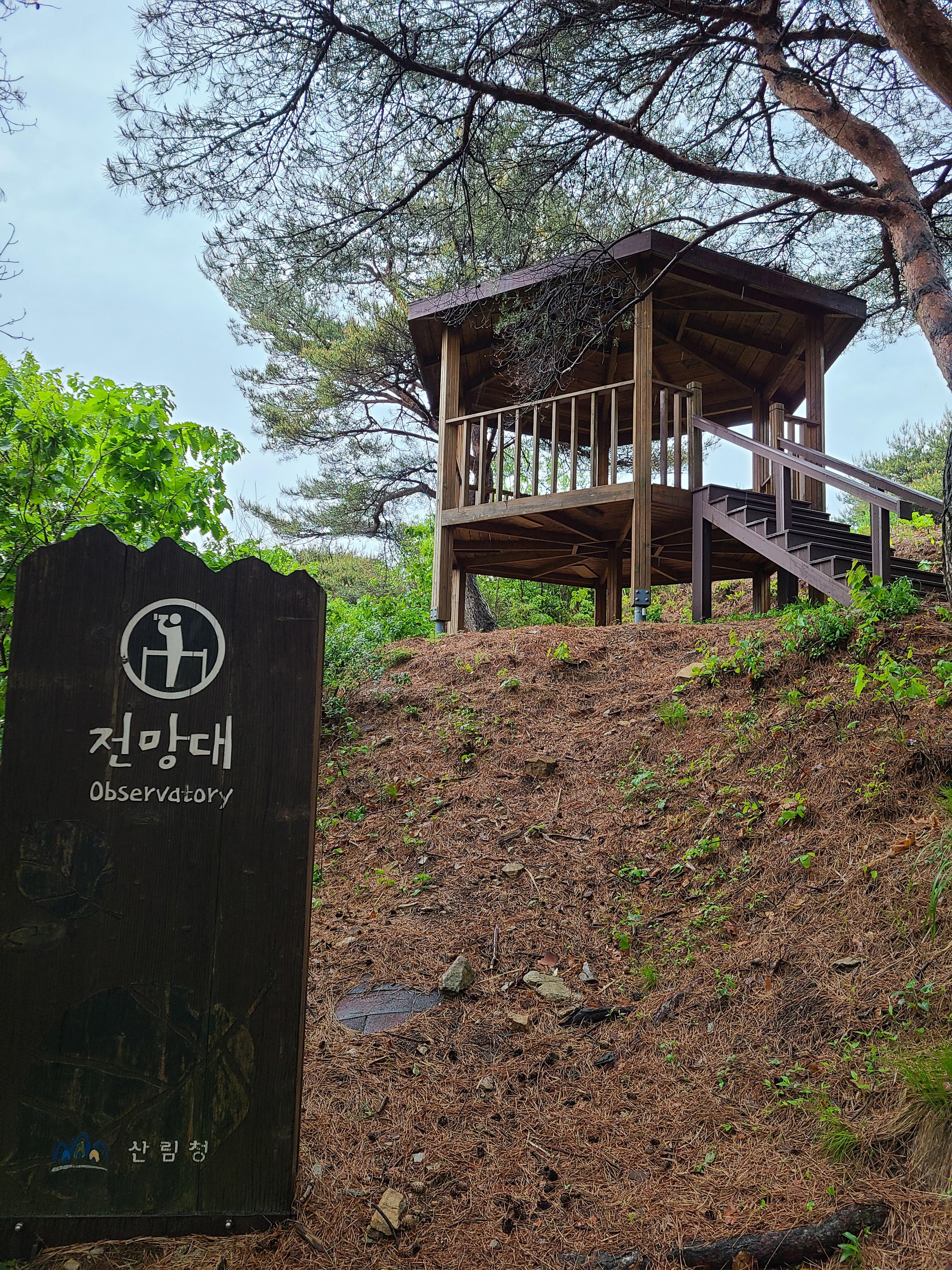 전망 대위에 올라가 내려다보니 내리는 비로 인해 시야가 좋지를 않다. 전망대에 방향에 따라 안내문이 없어 보이는 곳이 어디 인지를 모르겠다. 30분을 더 걸어 올라온 전망대에서 바라본 모습은 아쉬웠다.