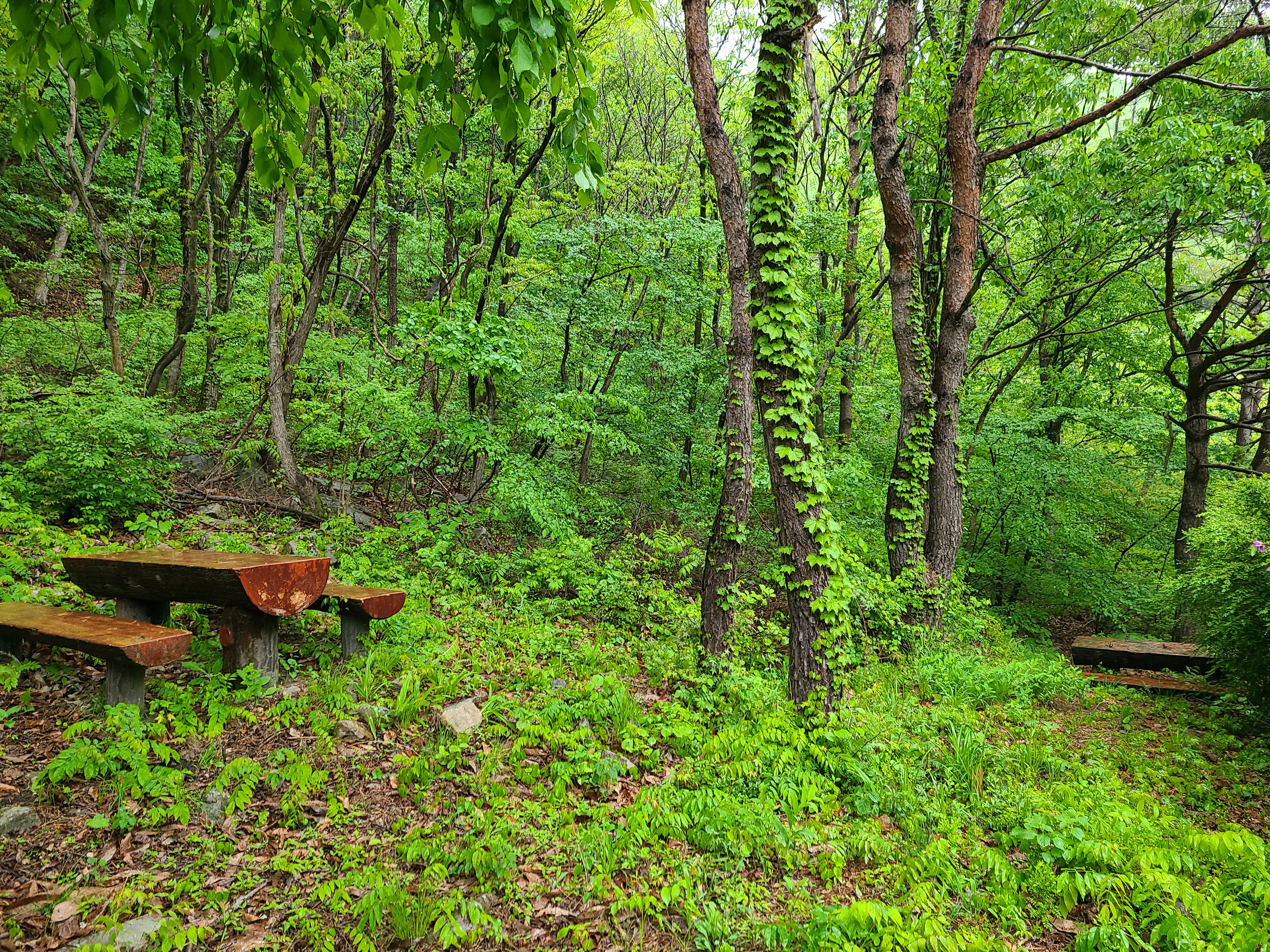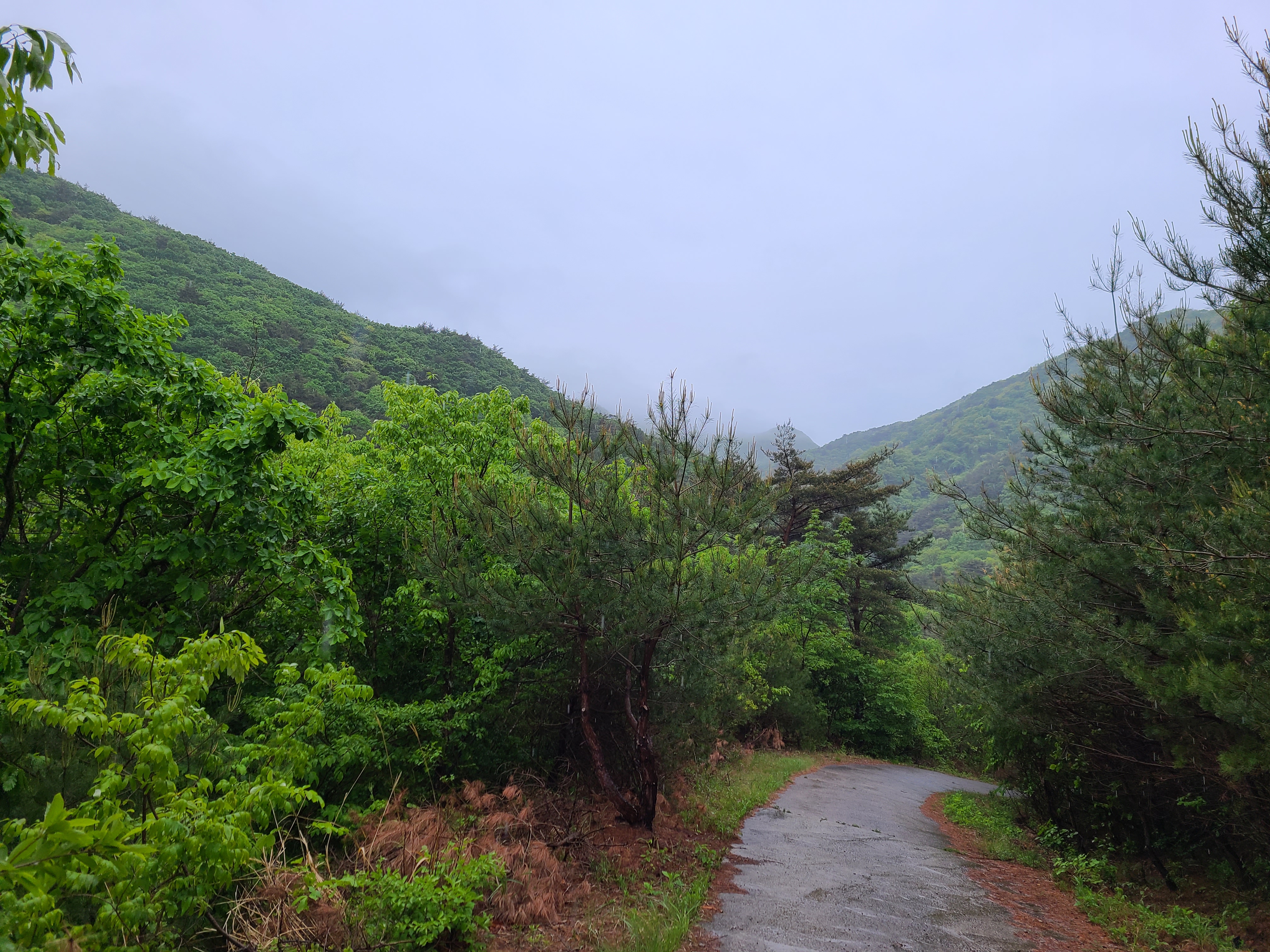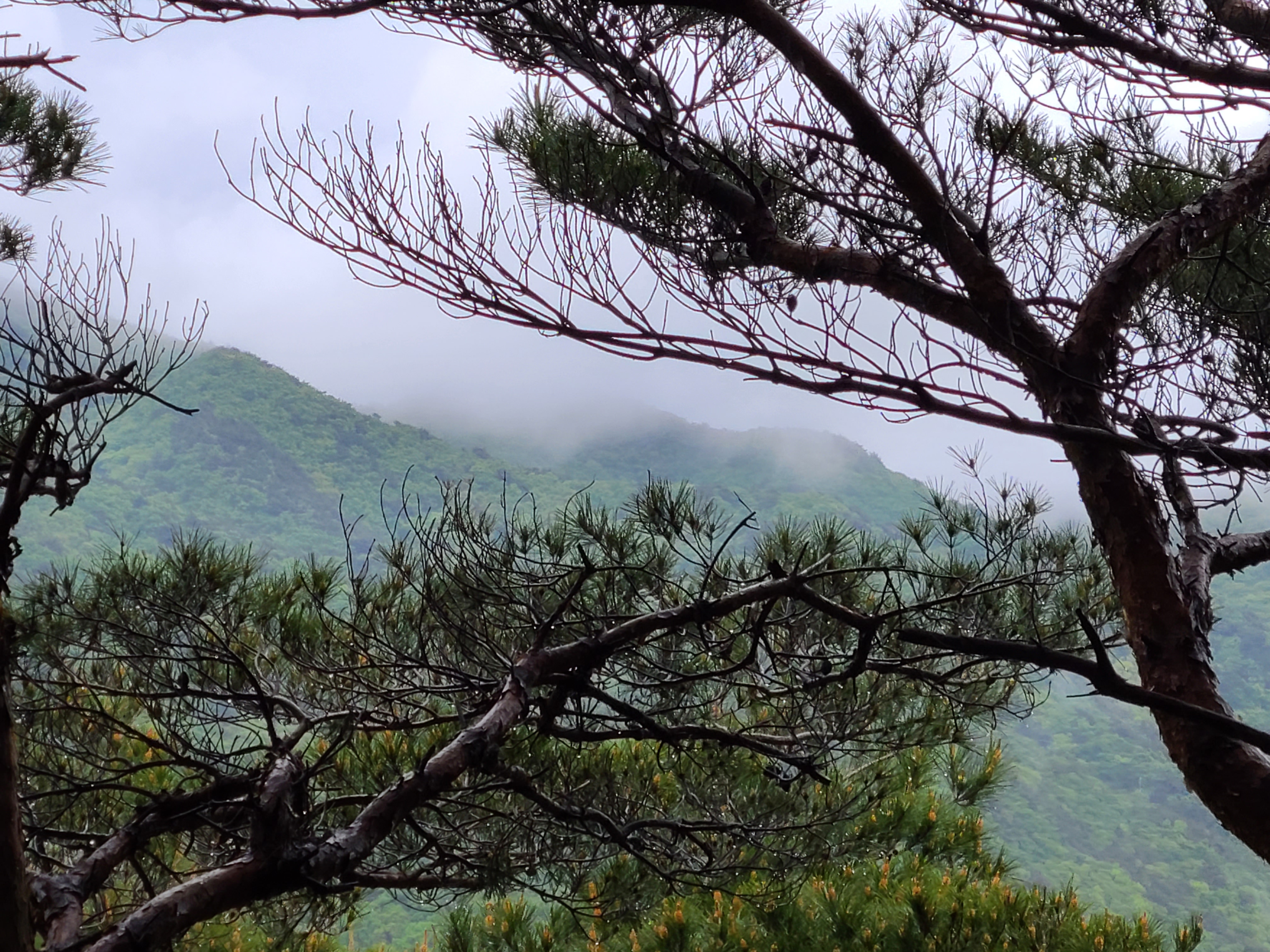 산 아래에는 활엽수가 많더니 산 위로 올라가면서 침엽수인 소나무가 보인다.