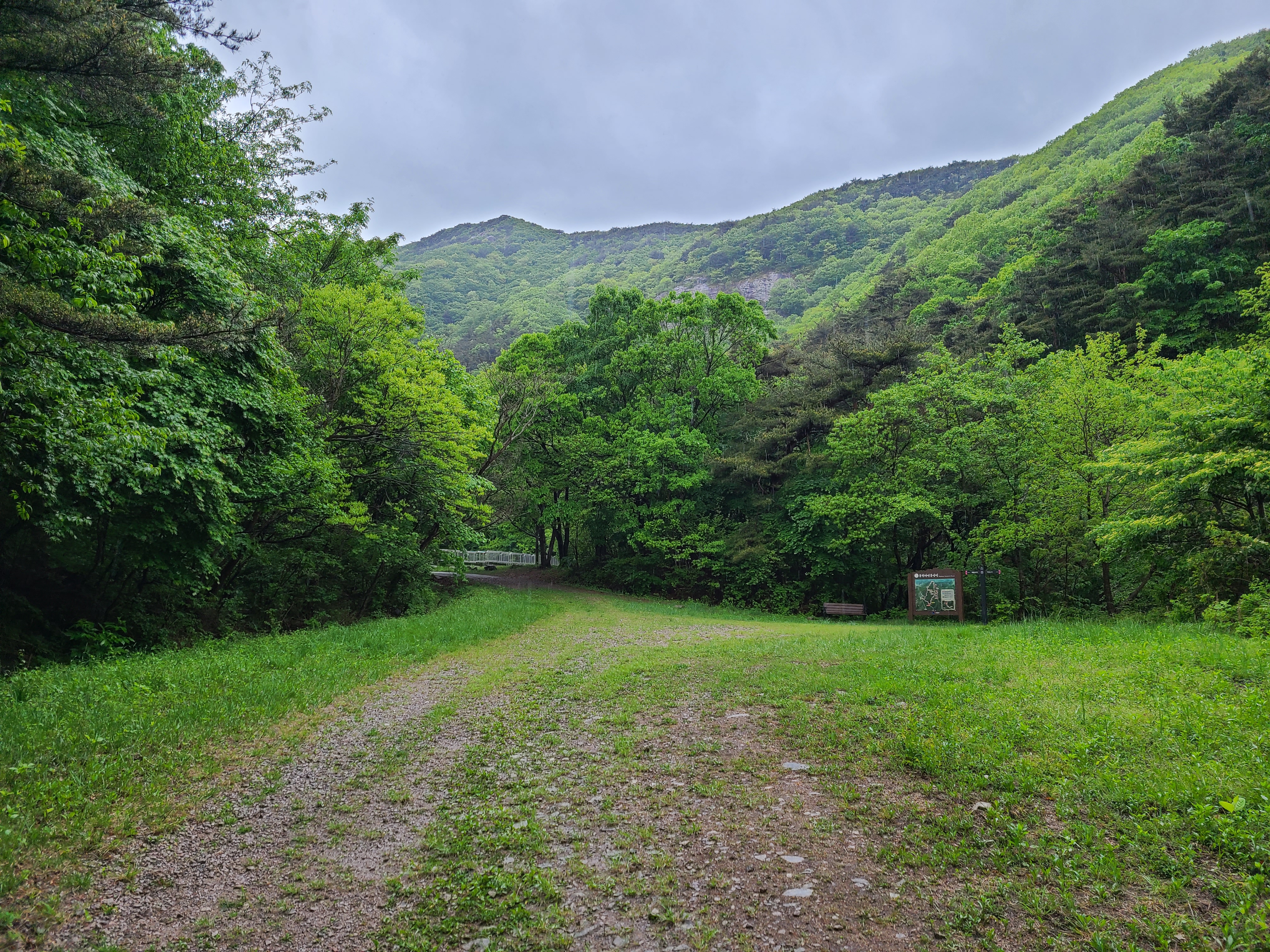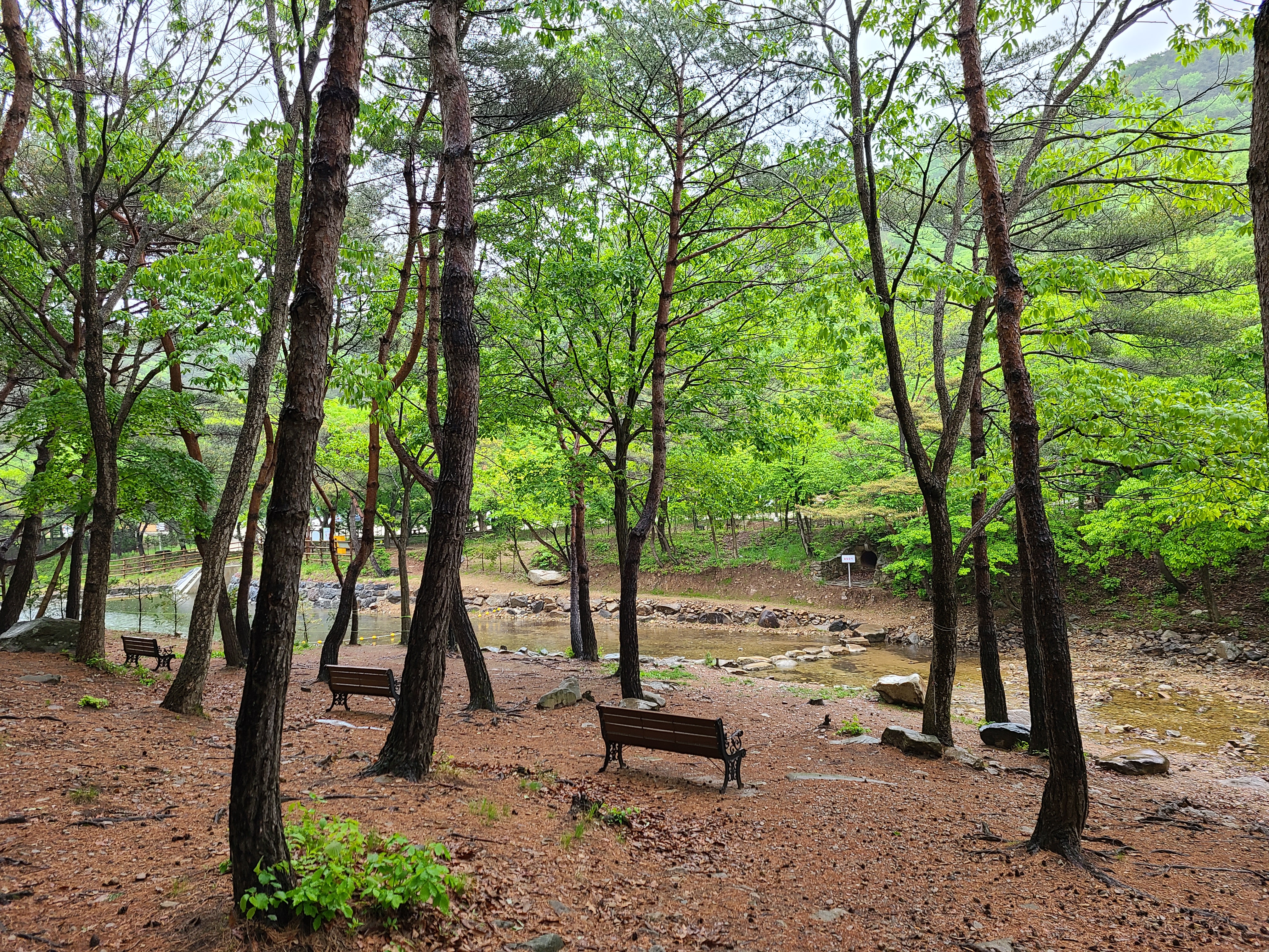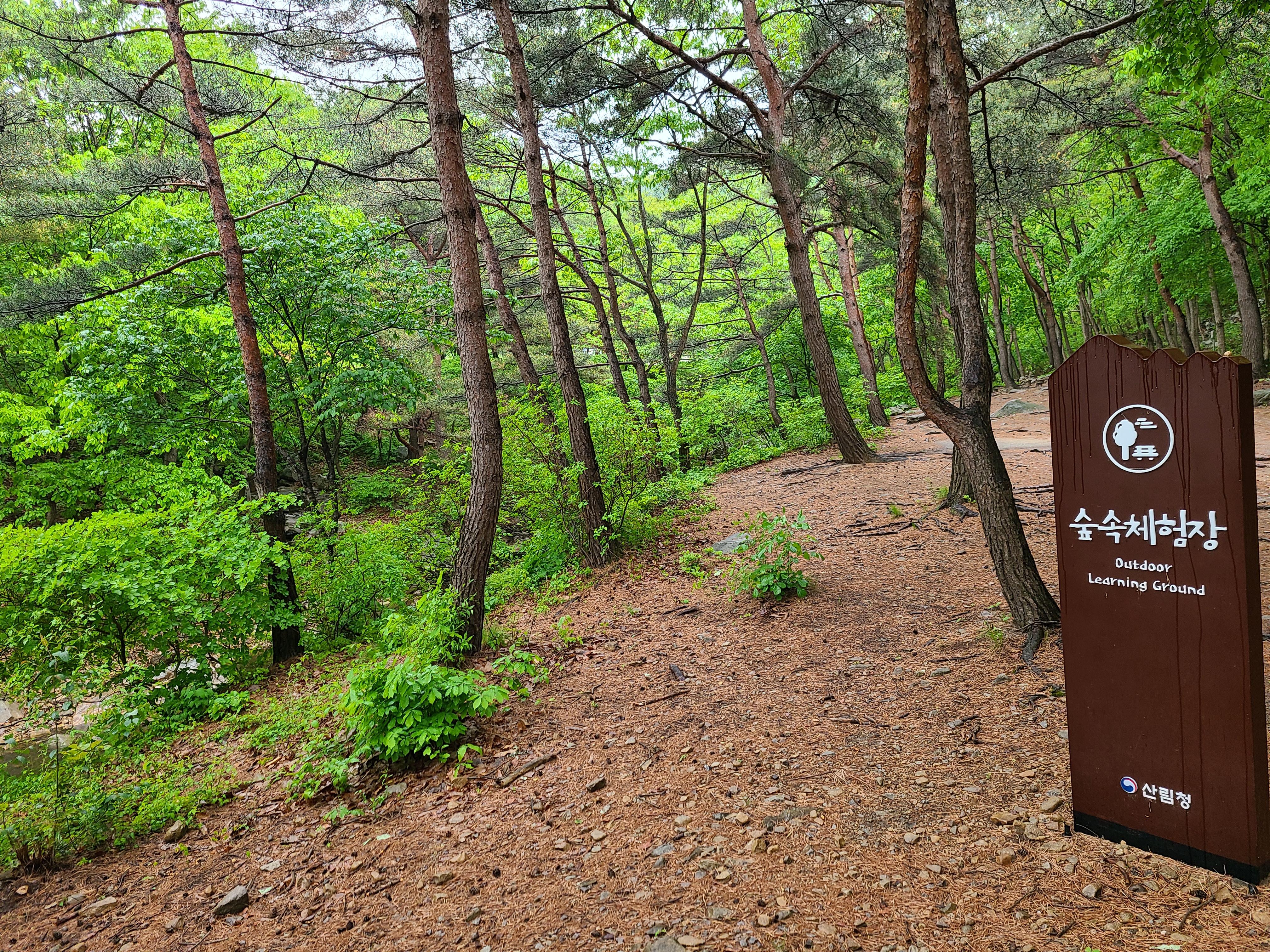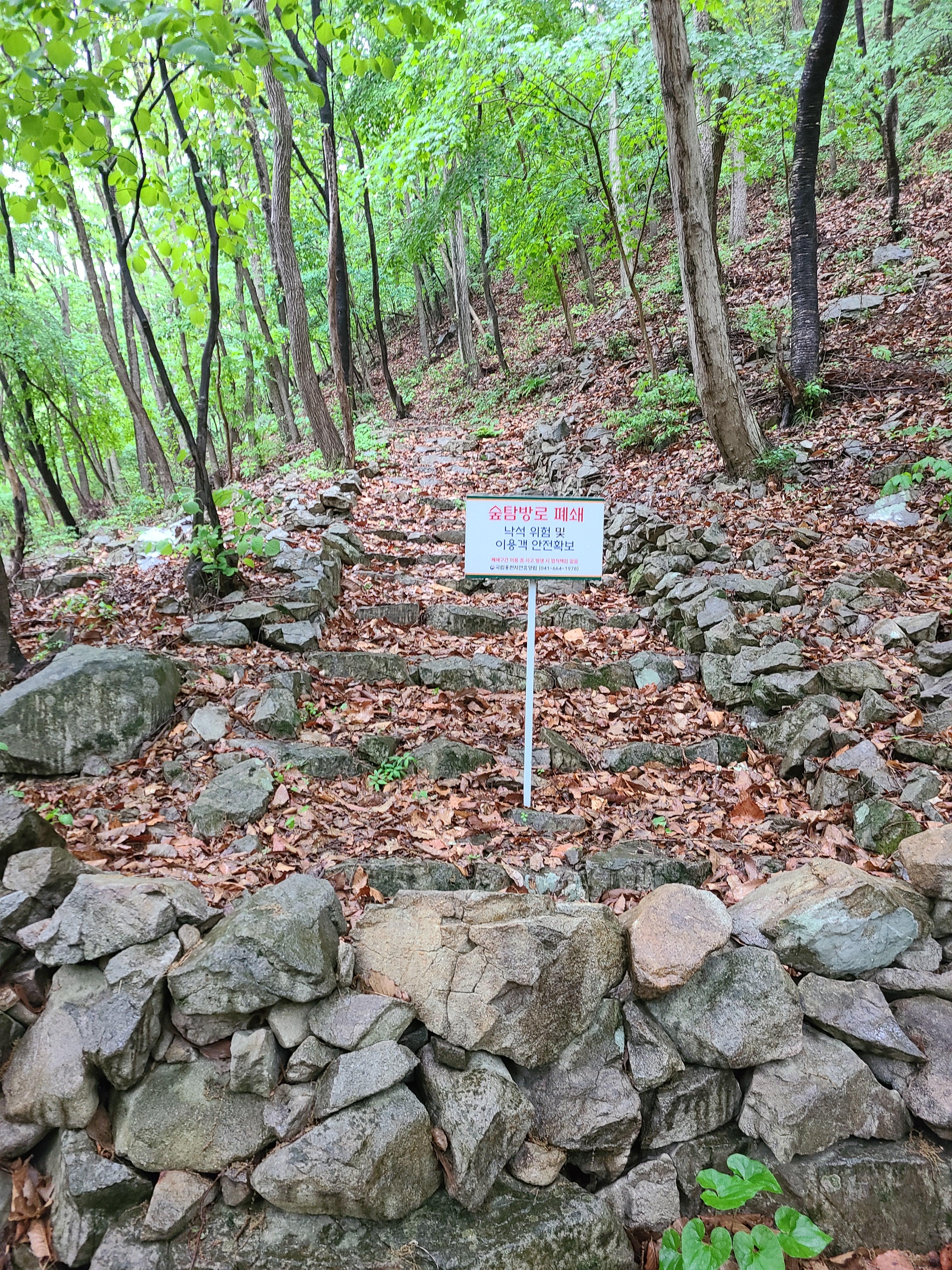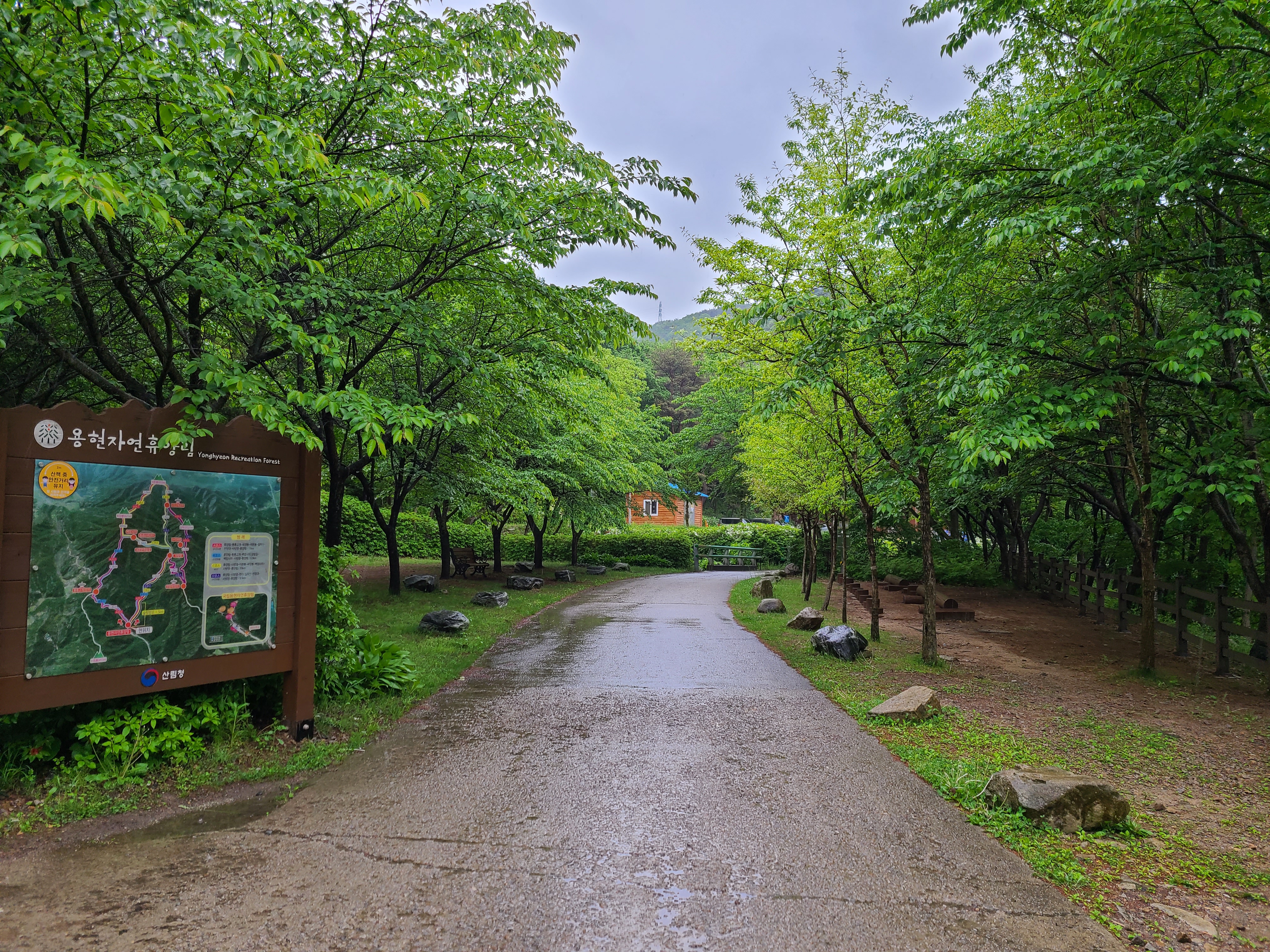 비가 와서인지는 모르겠으나 숲 속 체험장에서 파고라 벤치까지 이어진 숲 탐방로가 폐쇄되어있었다.