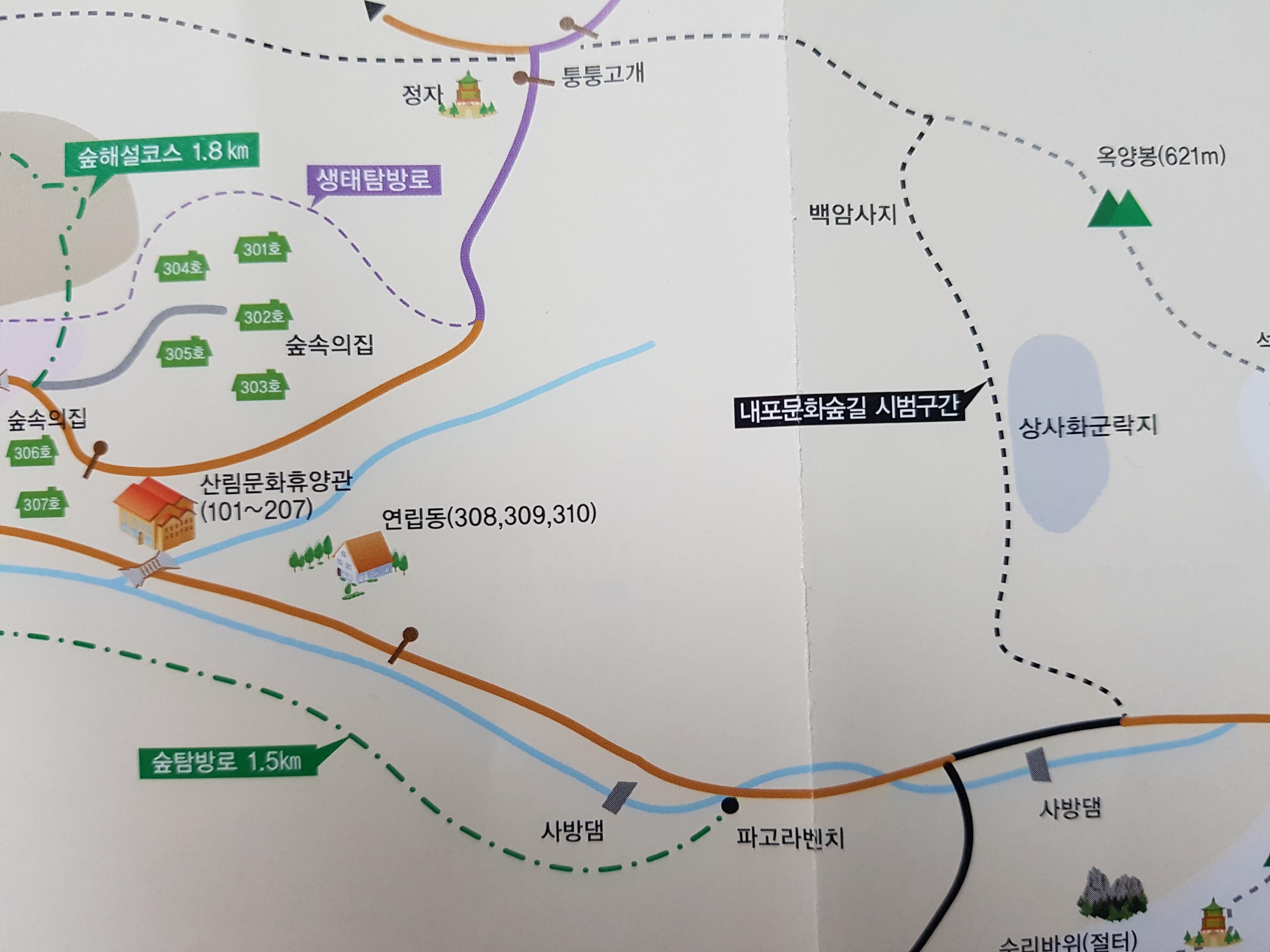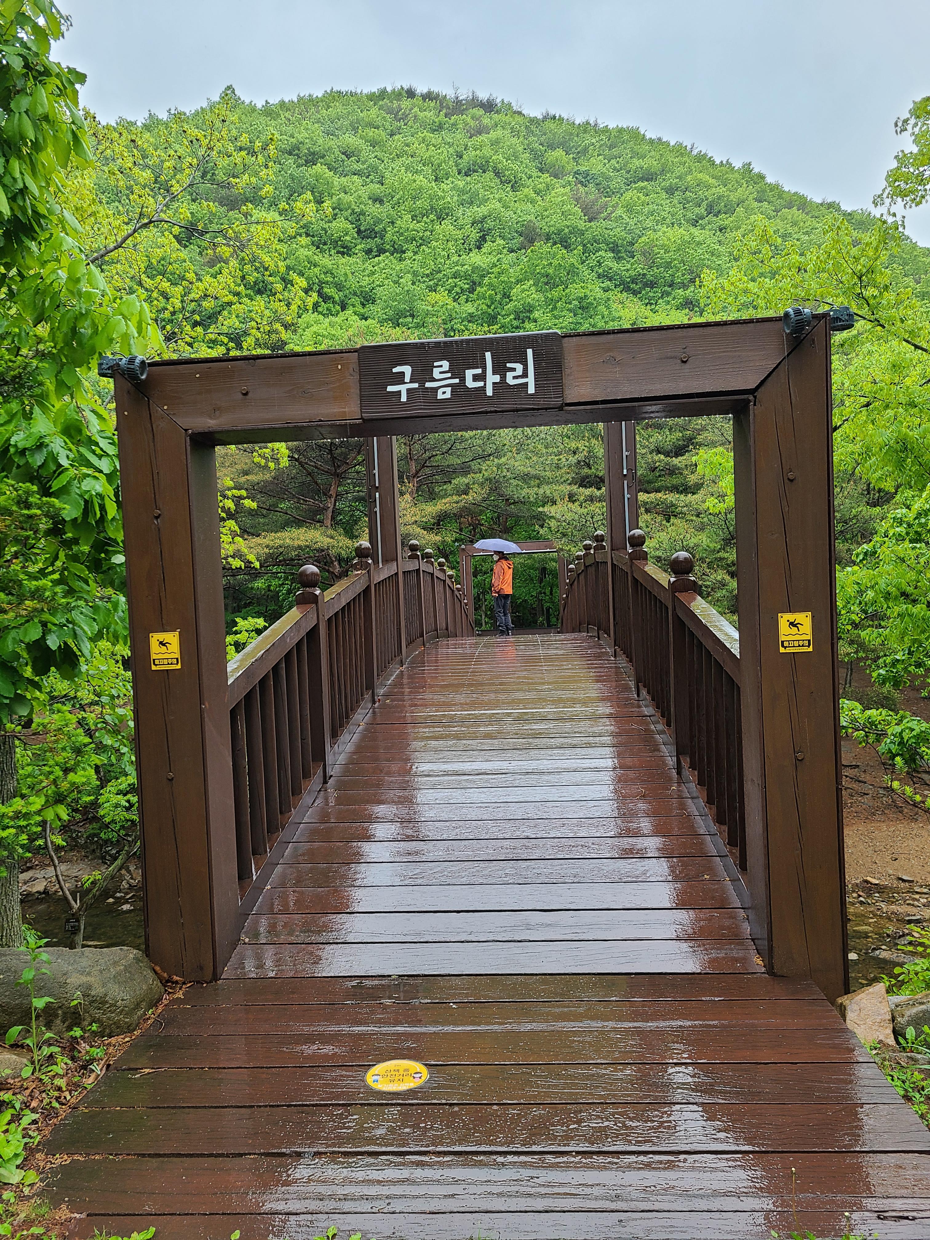 계곡에 놓인 구름다리를 건너 숲속 체험장 쪽으로 넘어갔다. 숲속 체험장에서 숲 탐방로로 1.5km 걸어볼까 해서였다.