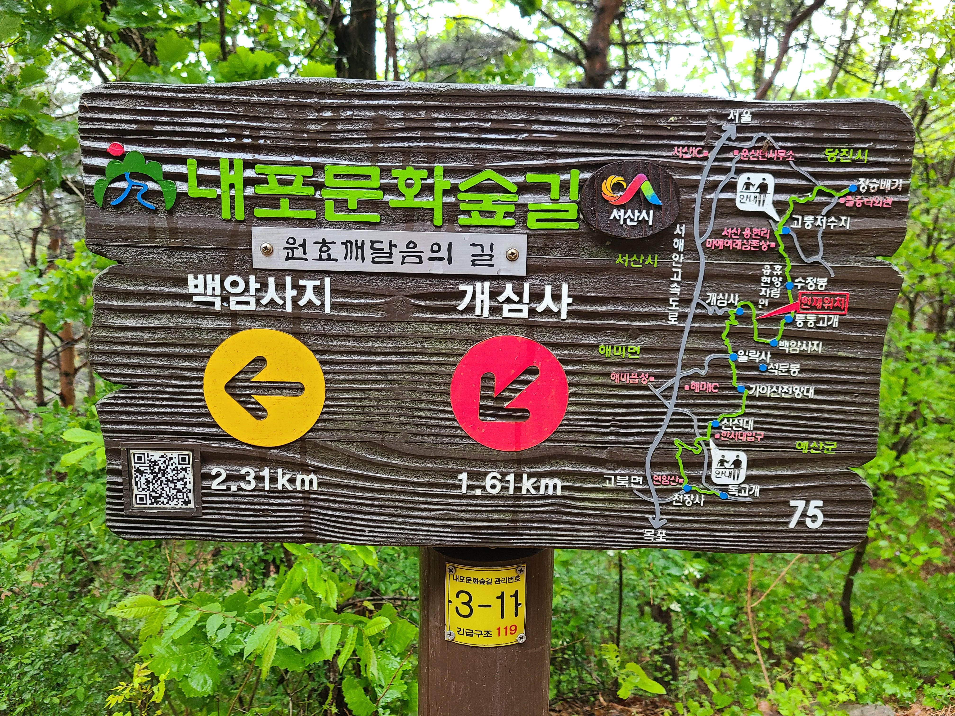 전망대 아래에 '내포 문화숲길'이정표가 있다. 이곳에서 개심사까지 1.61km라는데 더 이상은 자신이 없다.