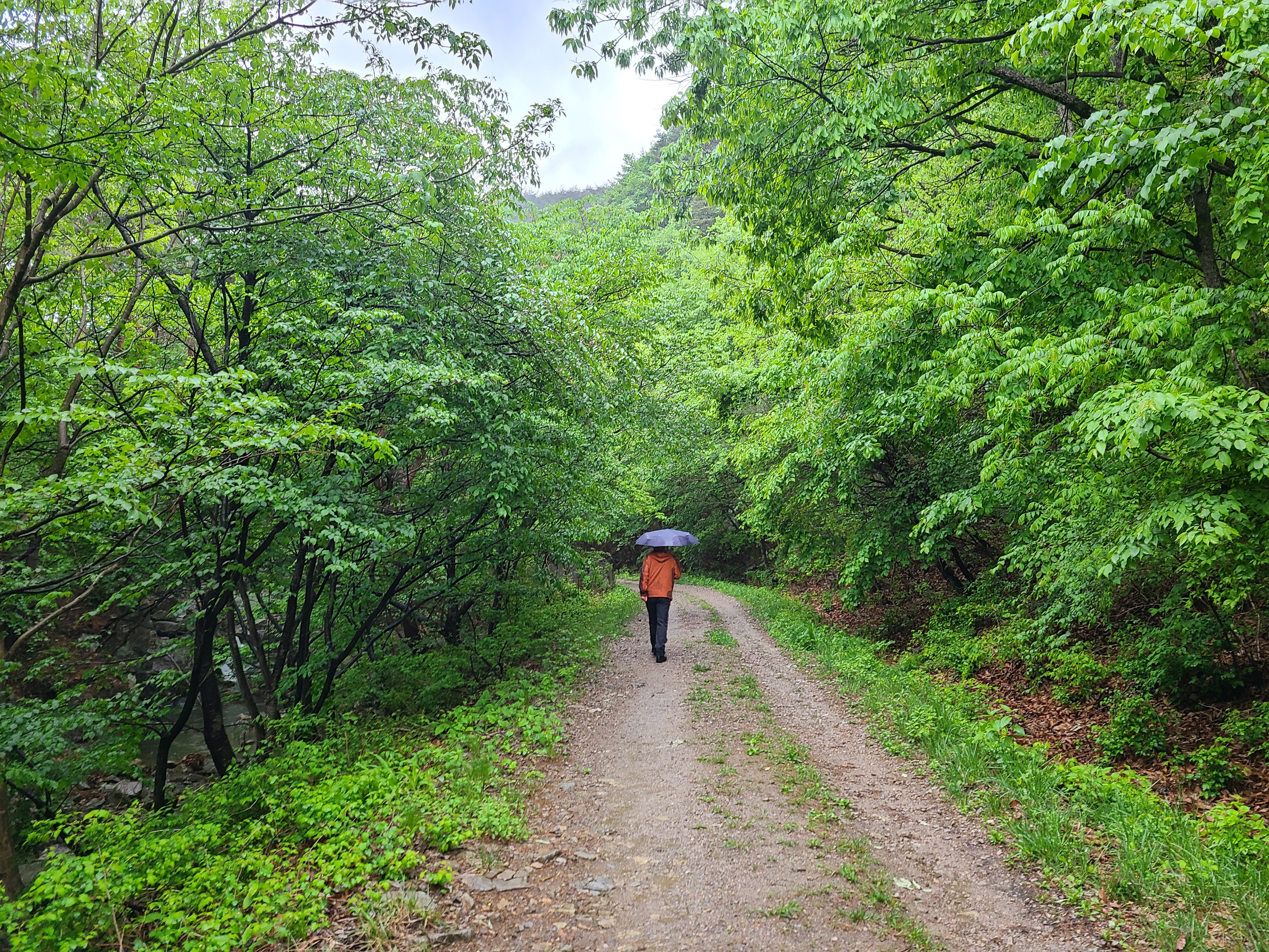 어제 저녁 계획으로는 퉁퉁 고개를 거쳐 옥양봉에 갔다가 백암사지를 거쳐 사방댐으로 돌아 내려오려고 했다. 비가 오니 어제 계획은 포기하고 임도로 한 시간 정도 걷고 오기로 했다.