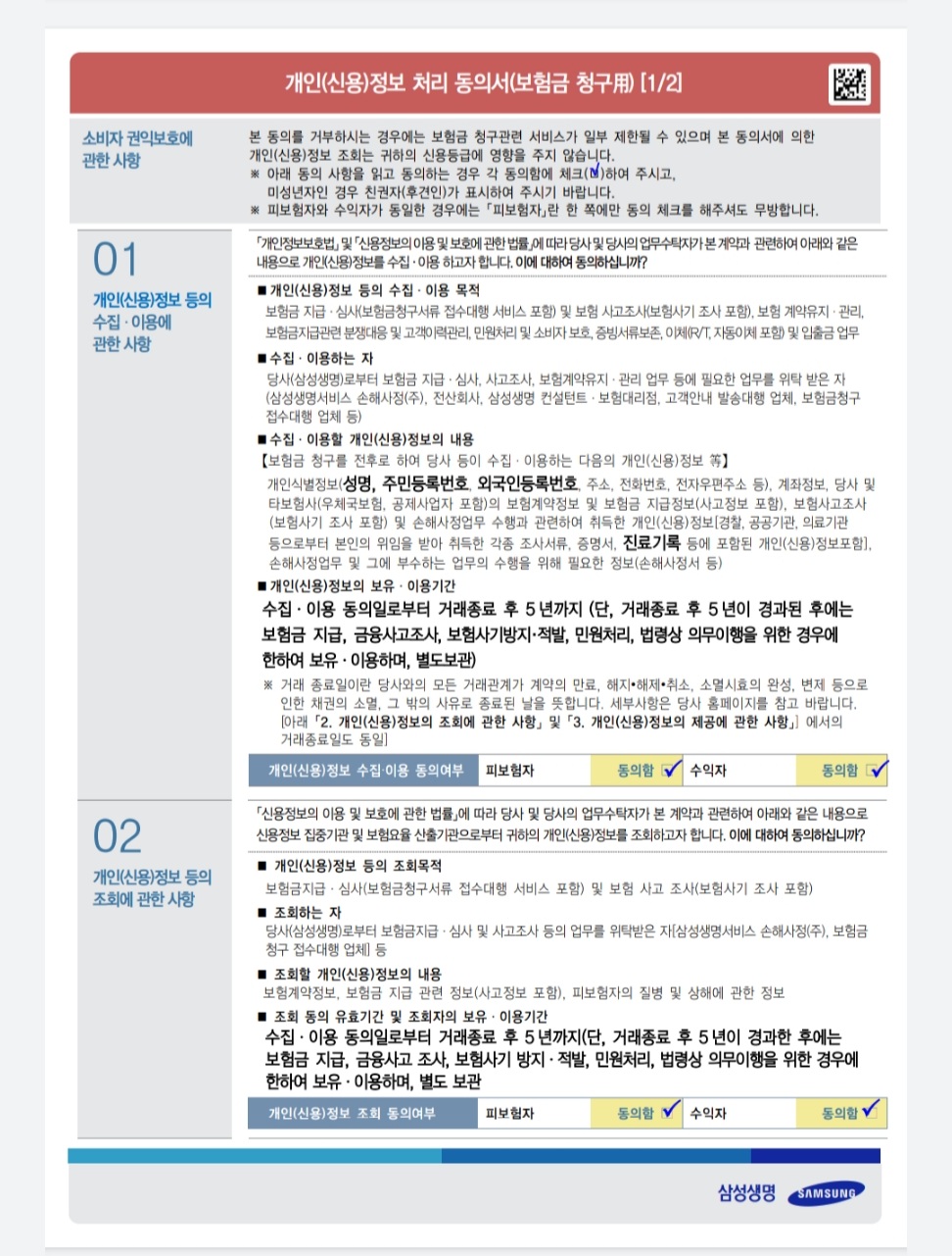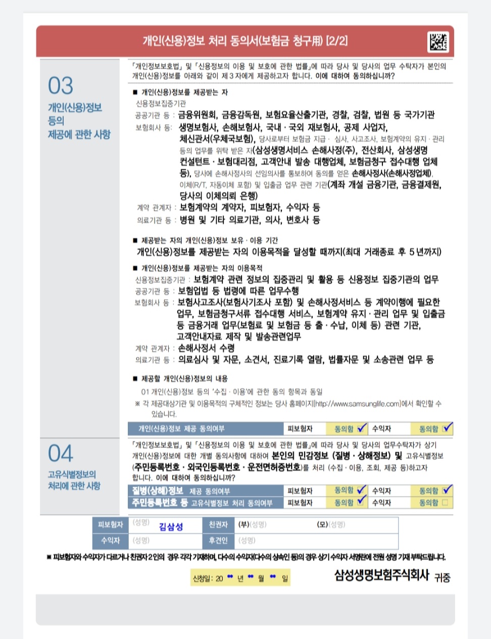 - 보험금 청구서 및 개인(신용) 정보처리 동의서