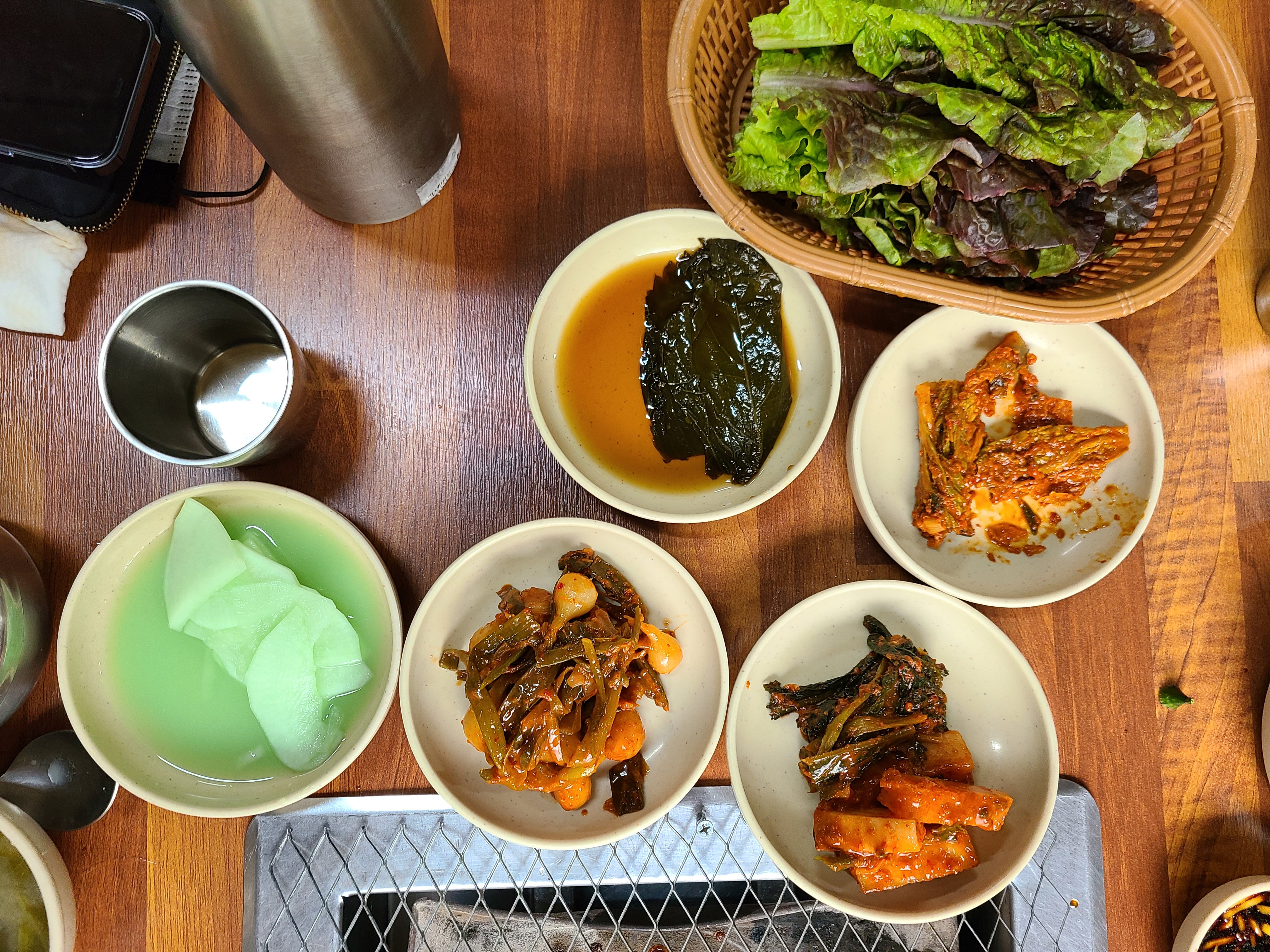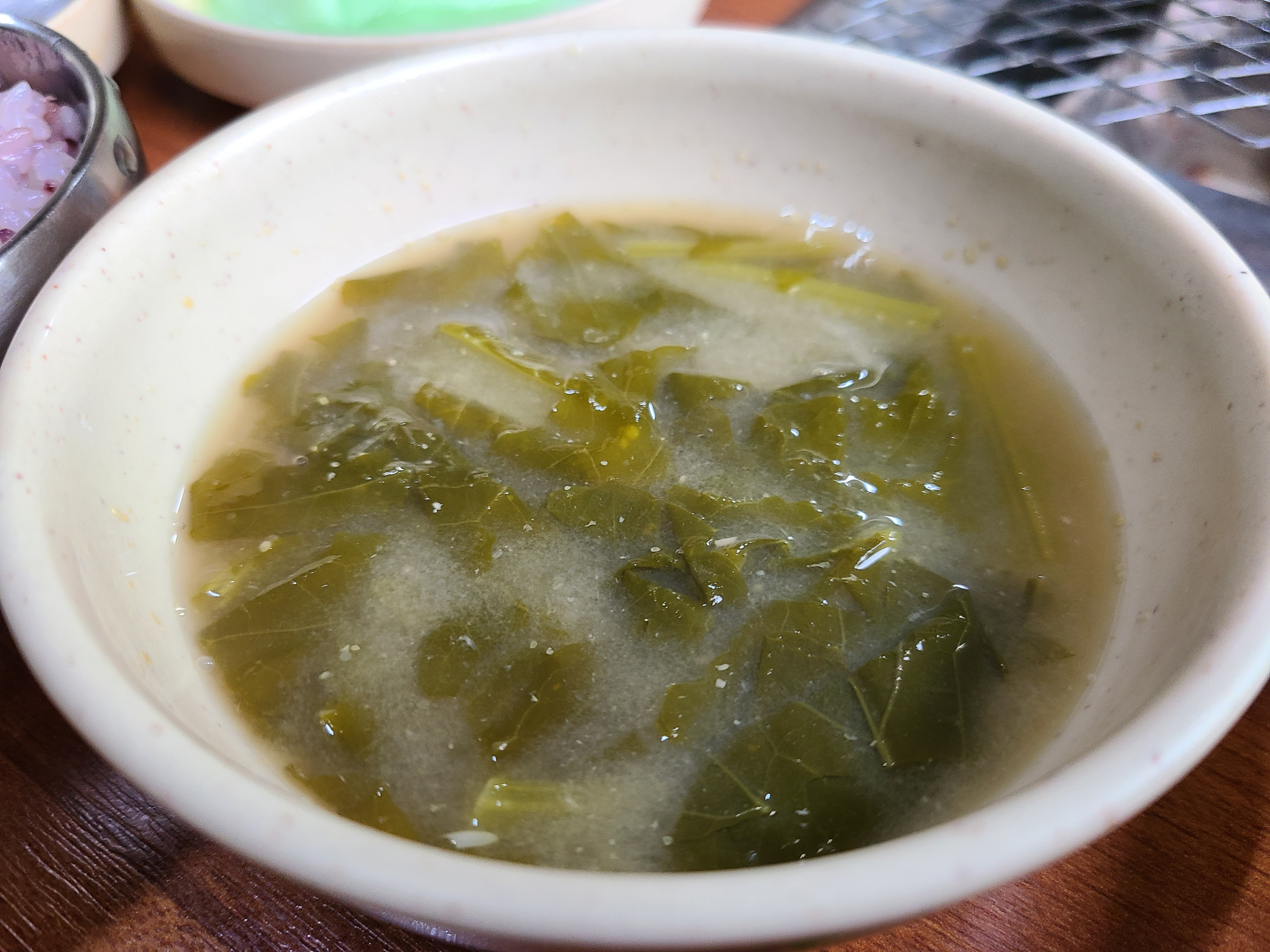 공깃밥을 주문하니 양파김치와 묵은지 그리고 된장국이 함께 나왔다.