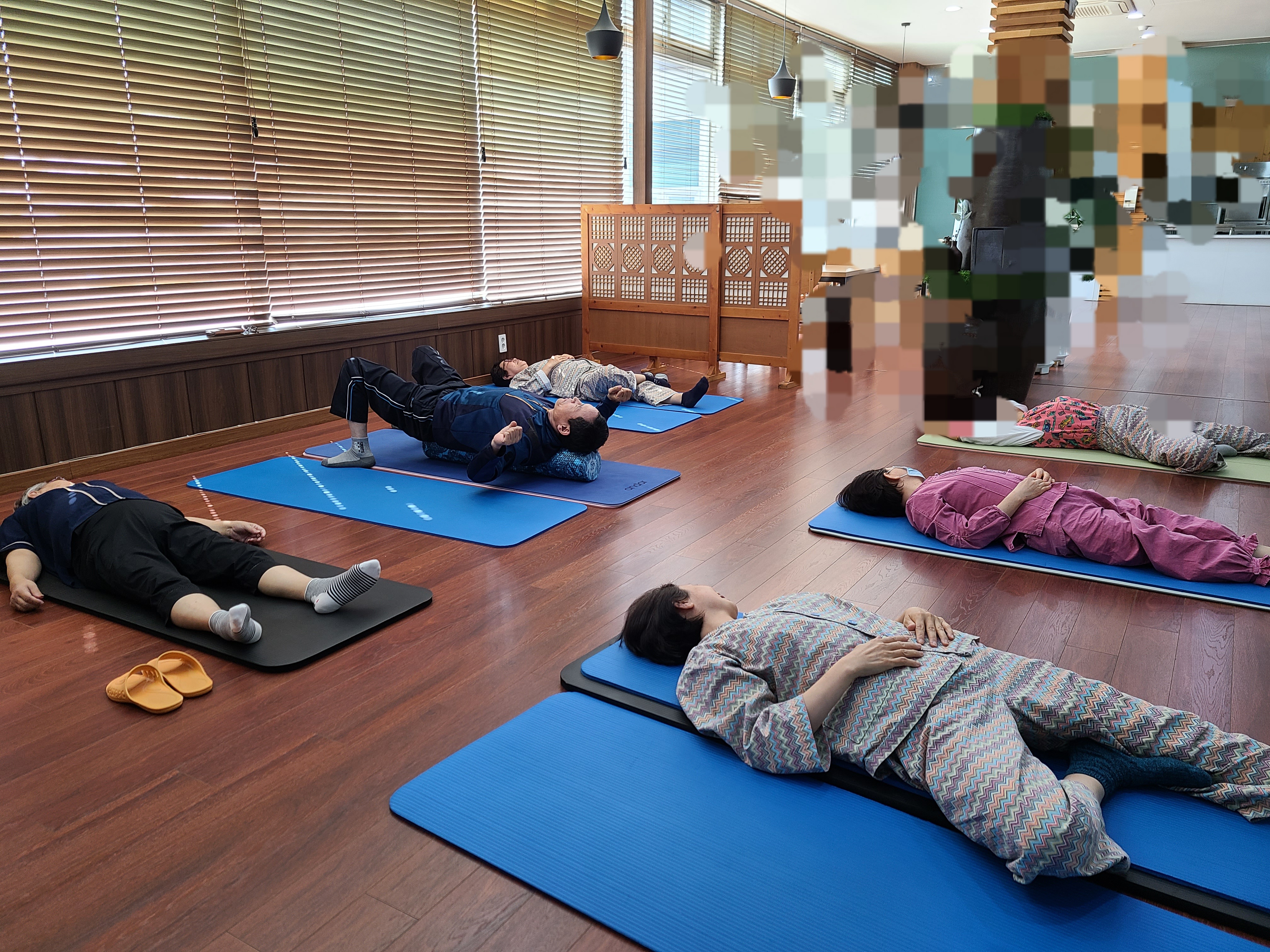 * 오후 점심식사 시간 이후에 체형 교정을 위한 개별 스트레칭 방법을 알려주고 스스로 할 수 있는 방법 또한 알려줘서 입원하고 있는 동안 운동습관을 익히게 한다.