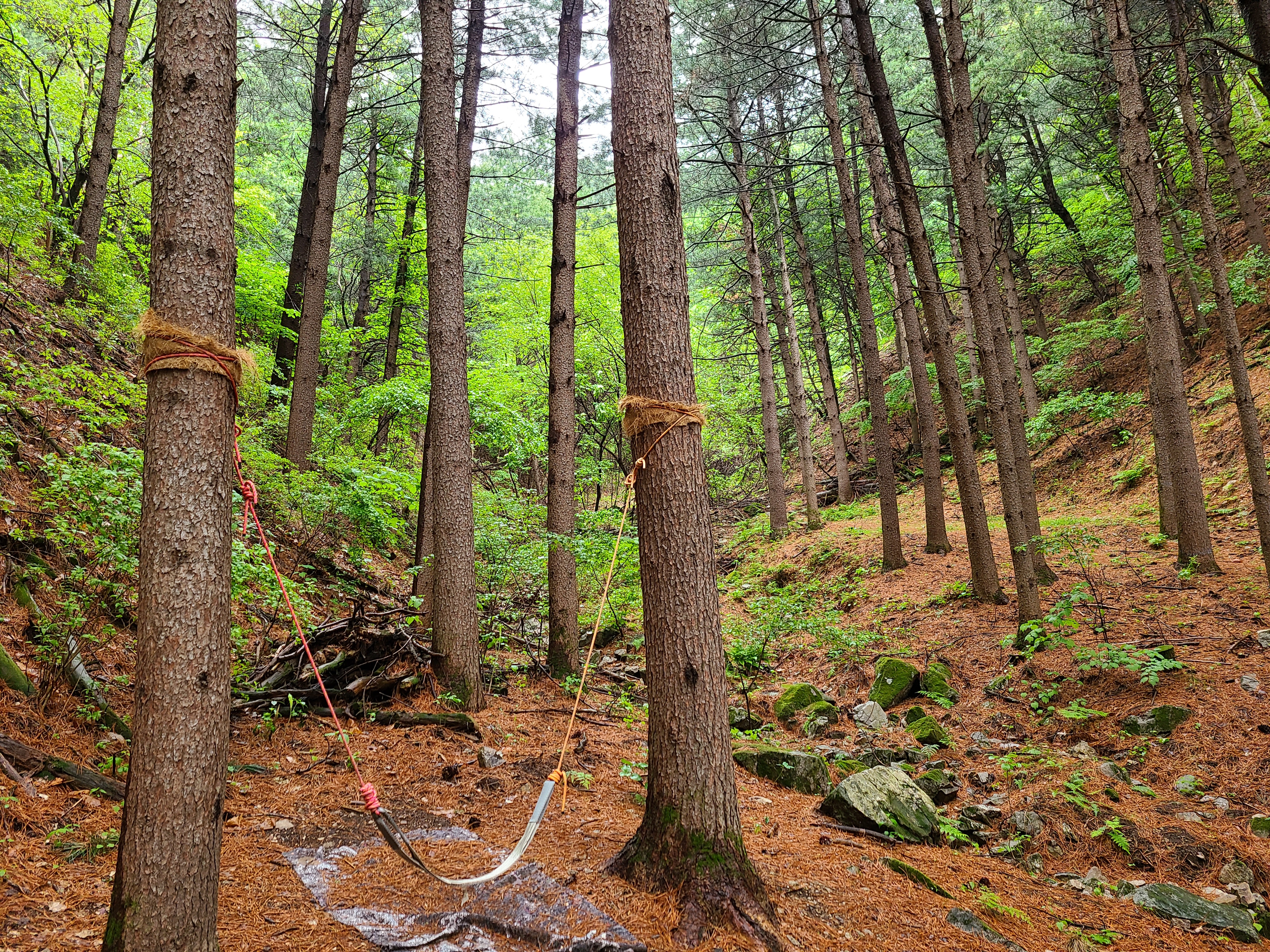 예전에 없던 시설이 잣나무에 설치가 되어 있다.