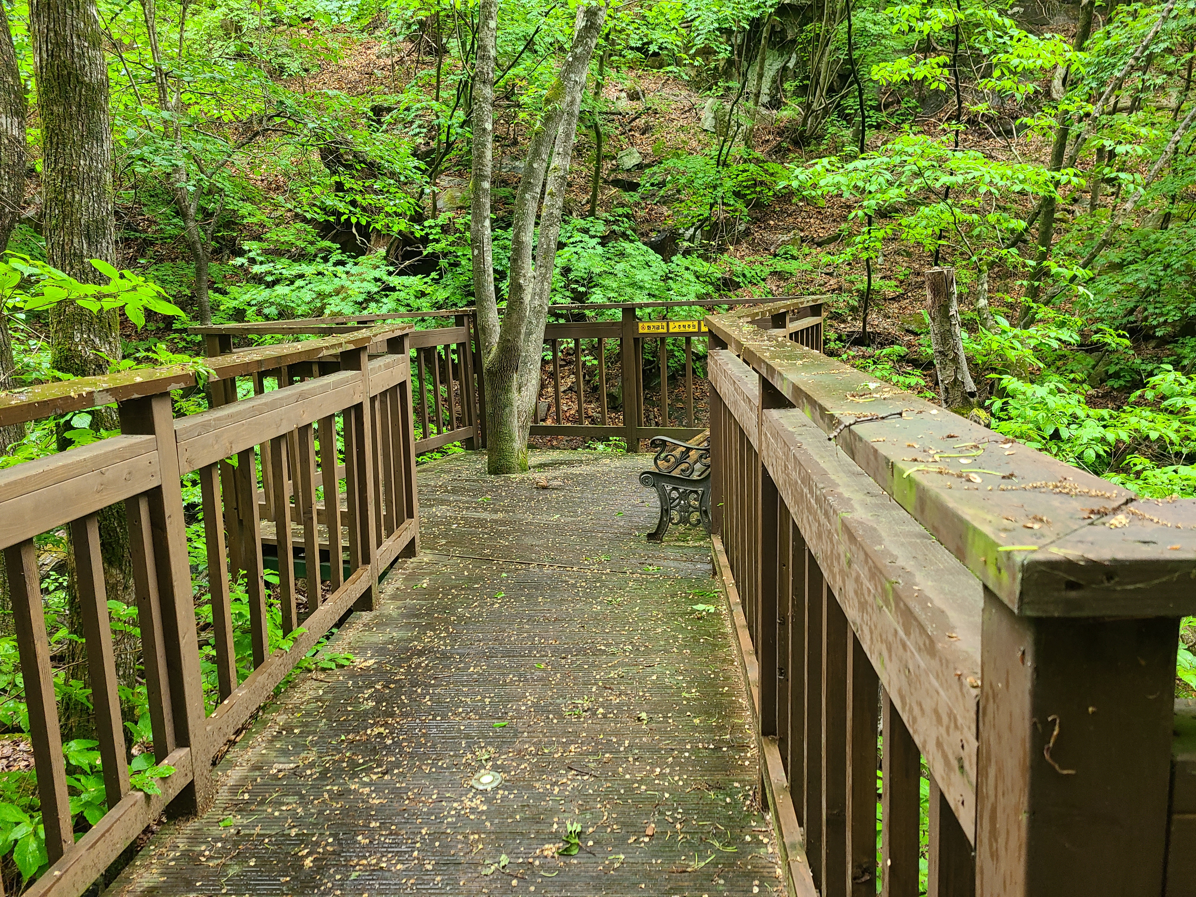 테크 길을 따라 다시 내려오는 데 비가 내려 테크 길이 미끄러워 넘어지지 않게 조심해서 걸어야만 했다.