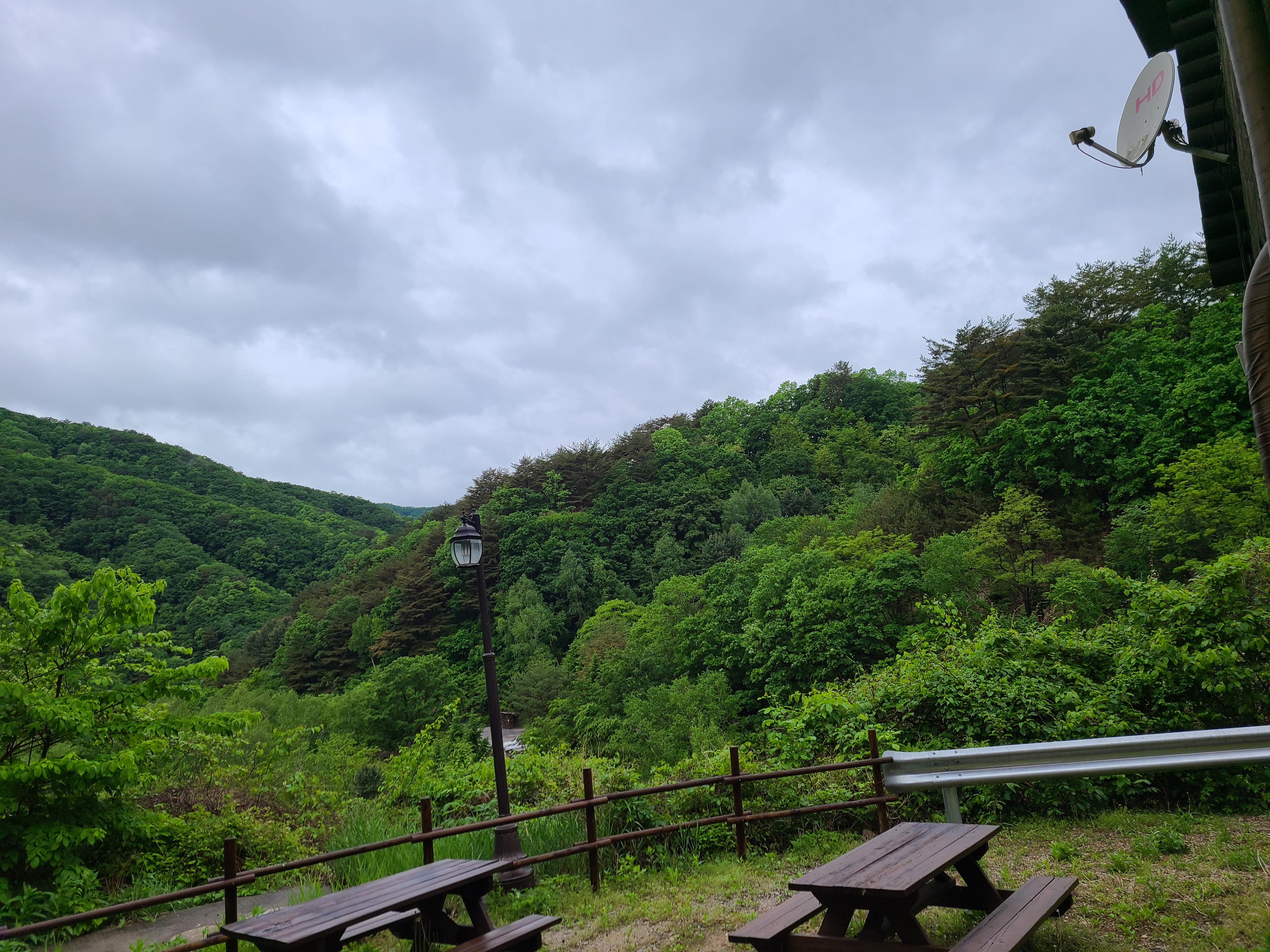 자고 일어나 창문을 열어 보니 밤새 비가 내린 듯하다. 비에 젖은 숲 내음이 너무도 좋다. 야외 테이블이 있어 날이 좋을 때는 이곳에서 밥을 먹어도 될듯하다.