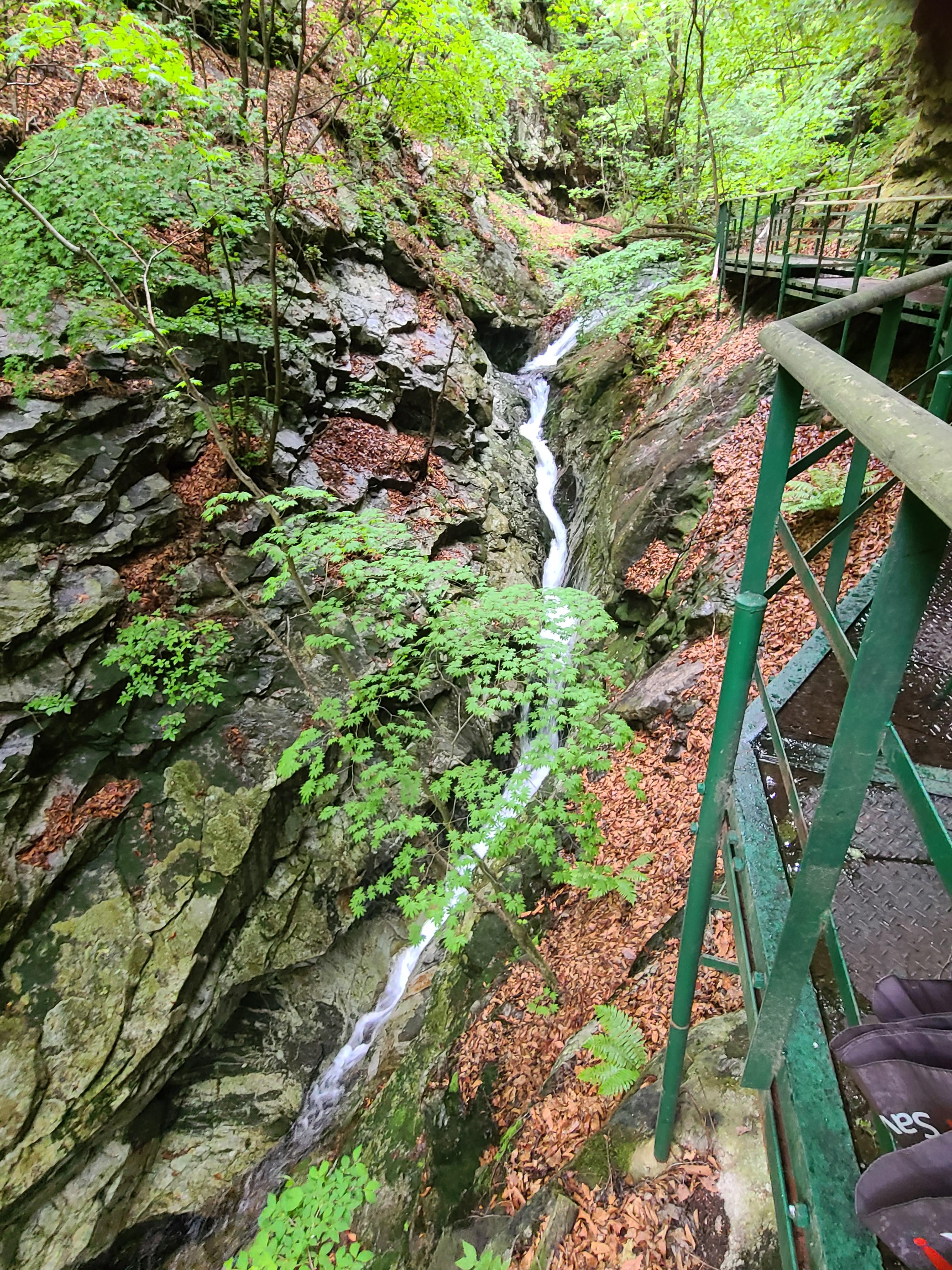 드디어 용탕 폭포가 보이기 시작한다. 바위 사이를 뚫고 내려오는 물줄기가 우렁찬 소리를 내며 쏟아져 내린다. 바위 사이로 난 골짜기의 깊이가 가늠이 되지 않는다.