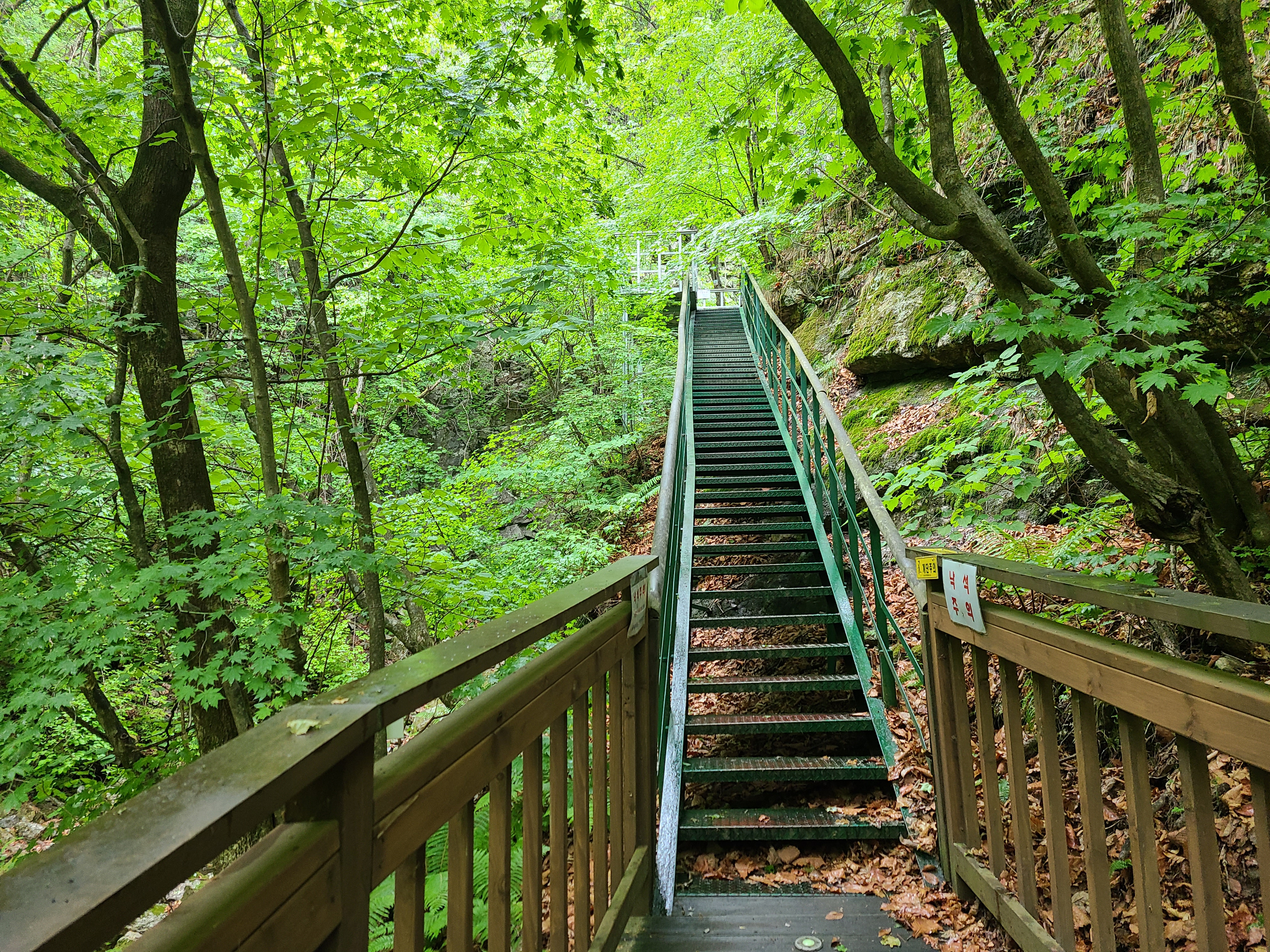 철재 계단 옆으로 바위에 돋아난 풀들이 너무 예쁘다.