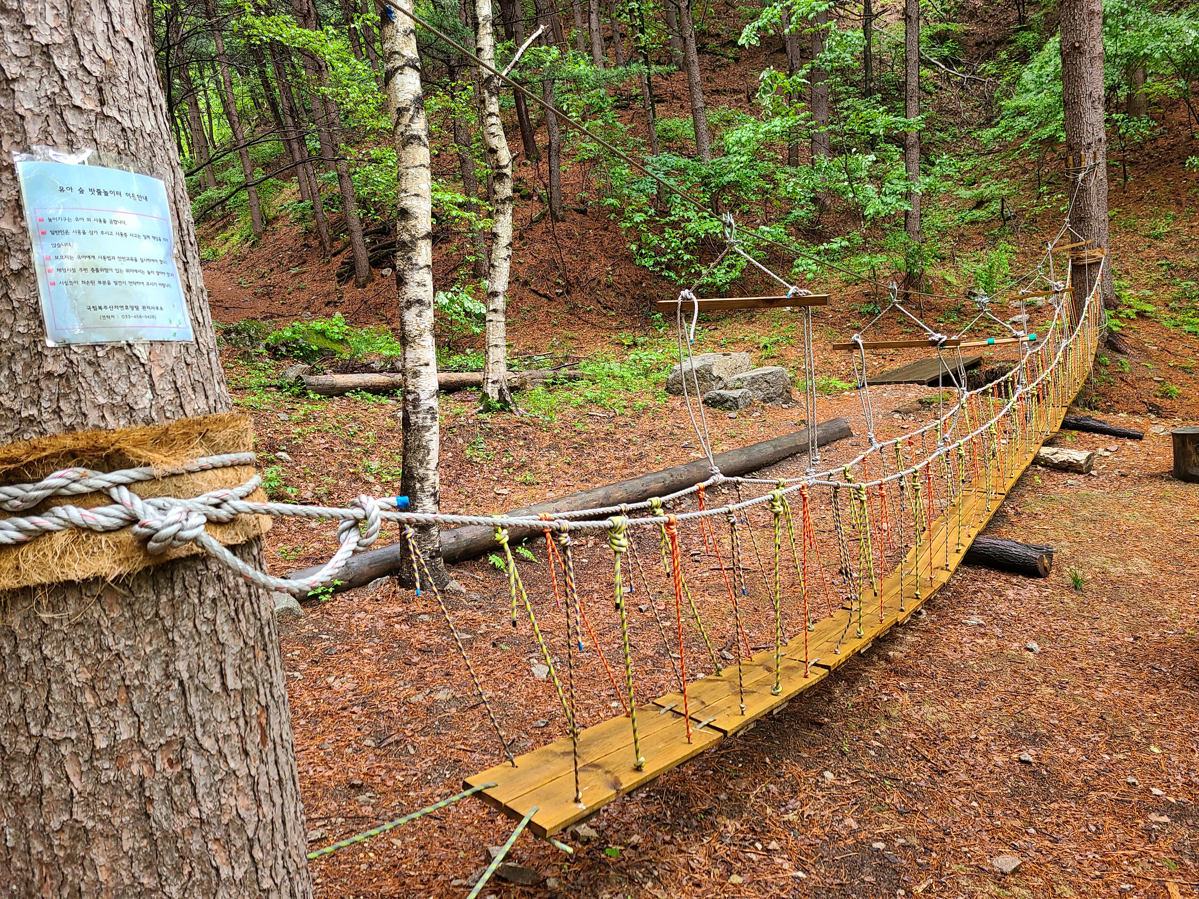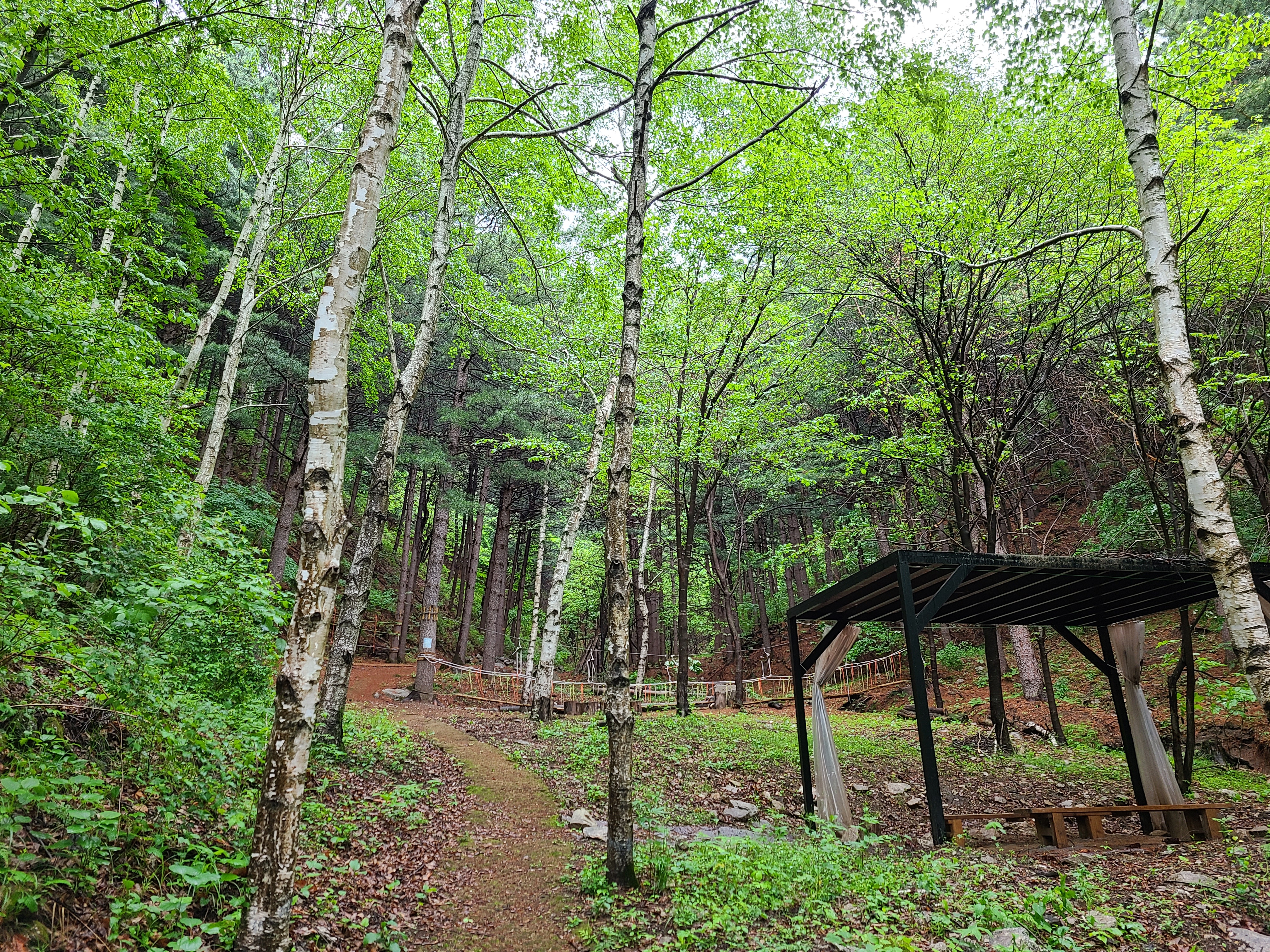 자작나무 숲에 산림욕을 할 수 있는 벤치와 아이들이 놀을 수 있는 기구도 설치되어 있었다.