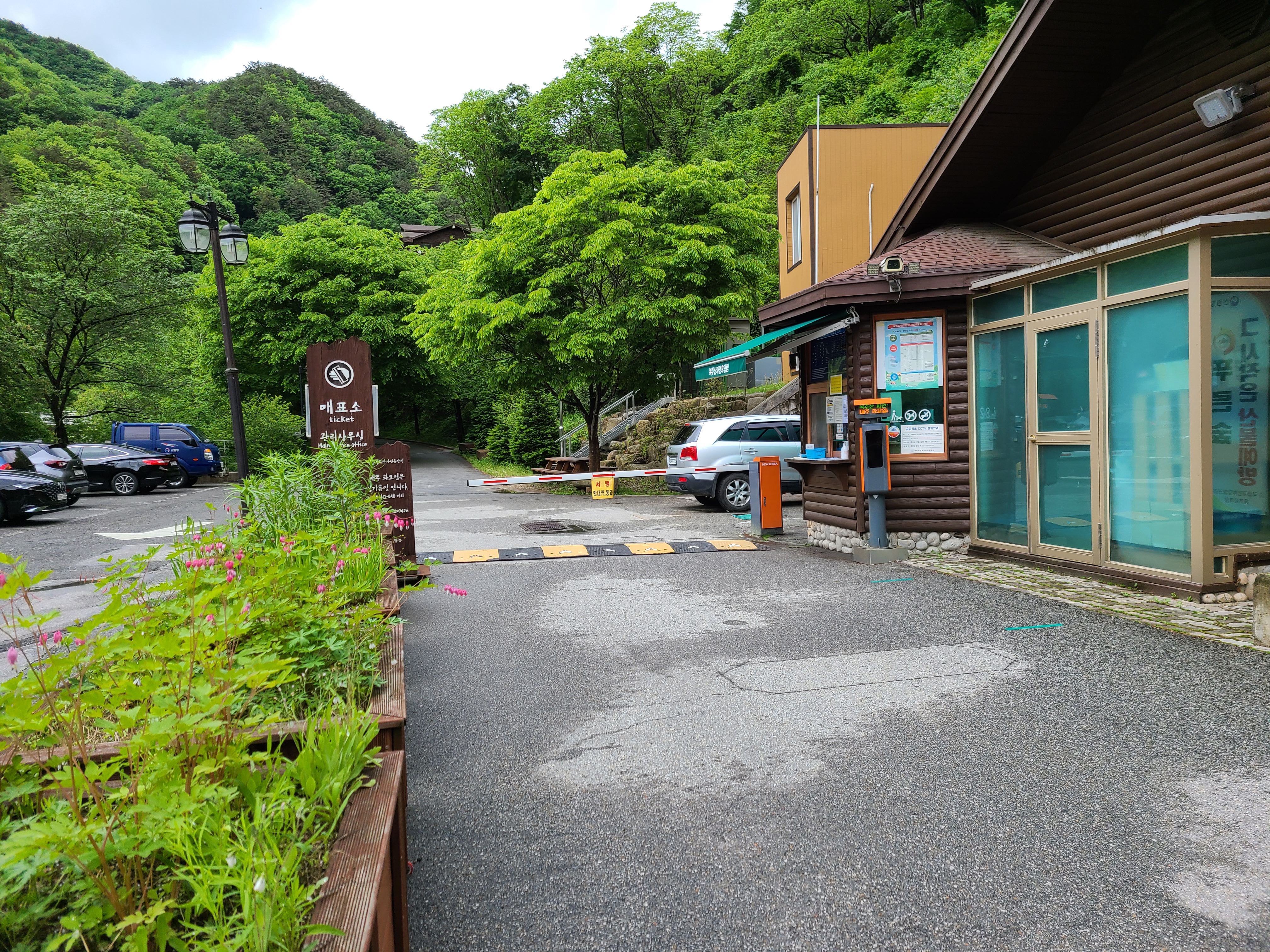 휴양림 매표소에 도착하자 손 소독을 한 후 발열체크와 신분증을 확인하고, 방문자 기록을 한 후에 숙소 키를 받고 쓰레기봉투를 구입해서 숙소로 이동을 했다.