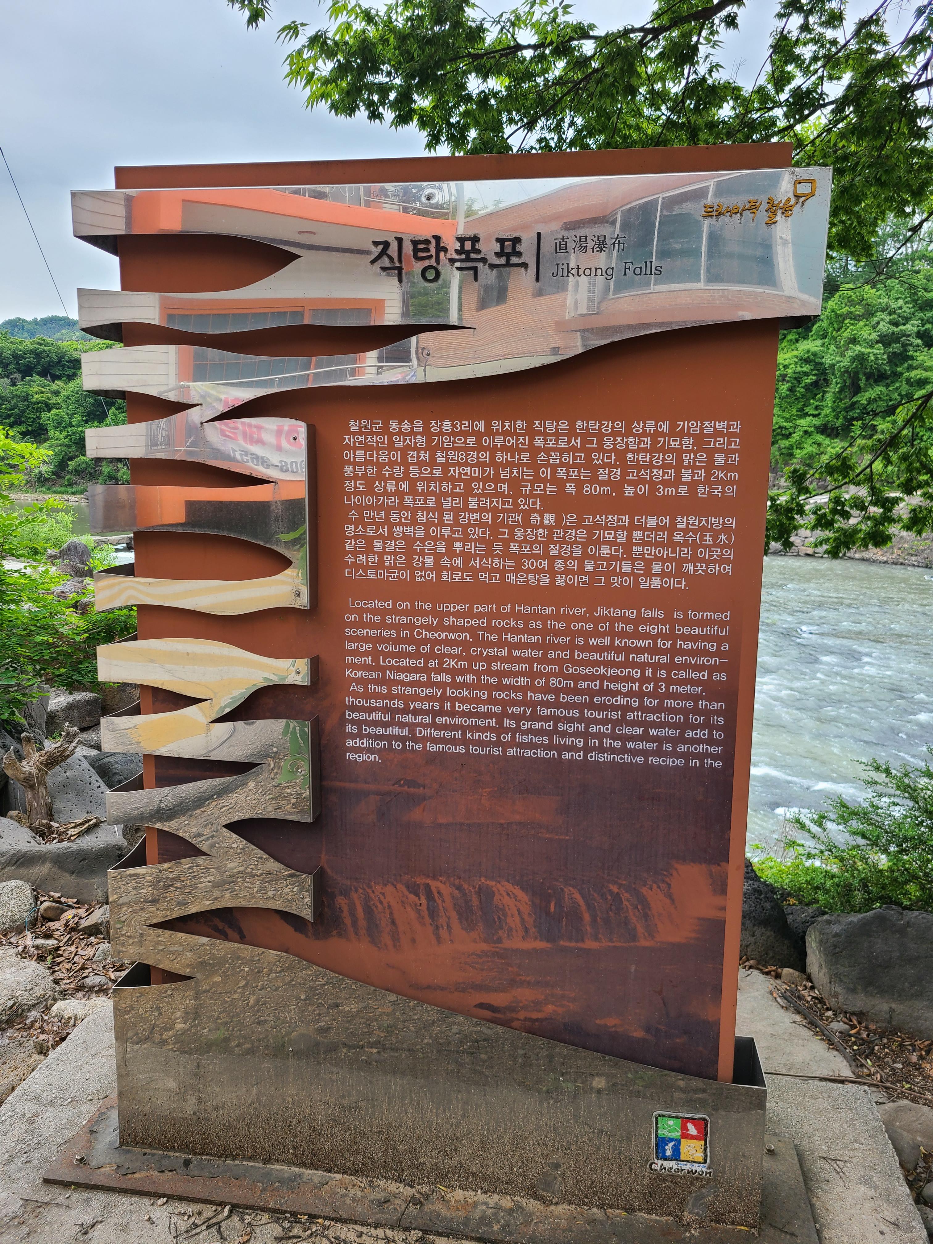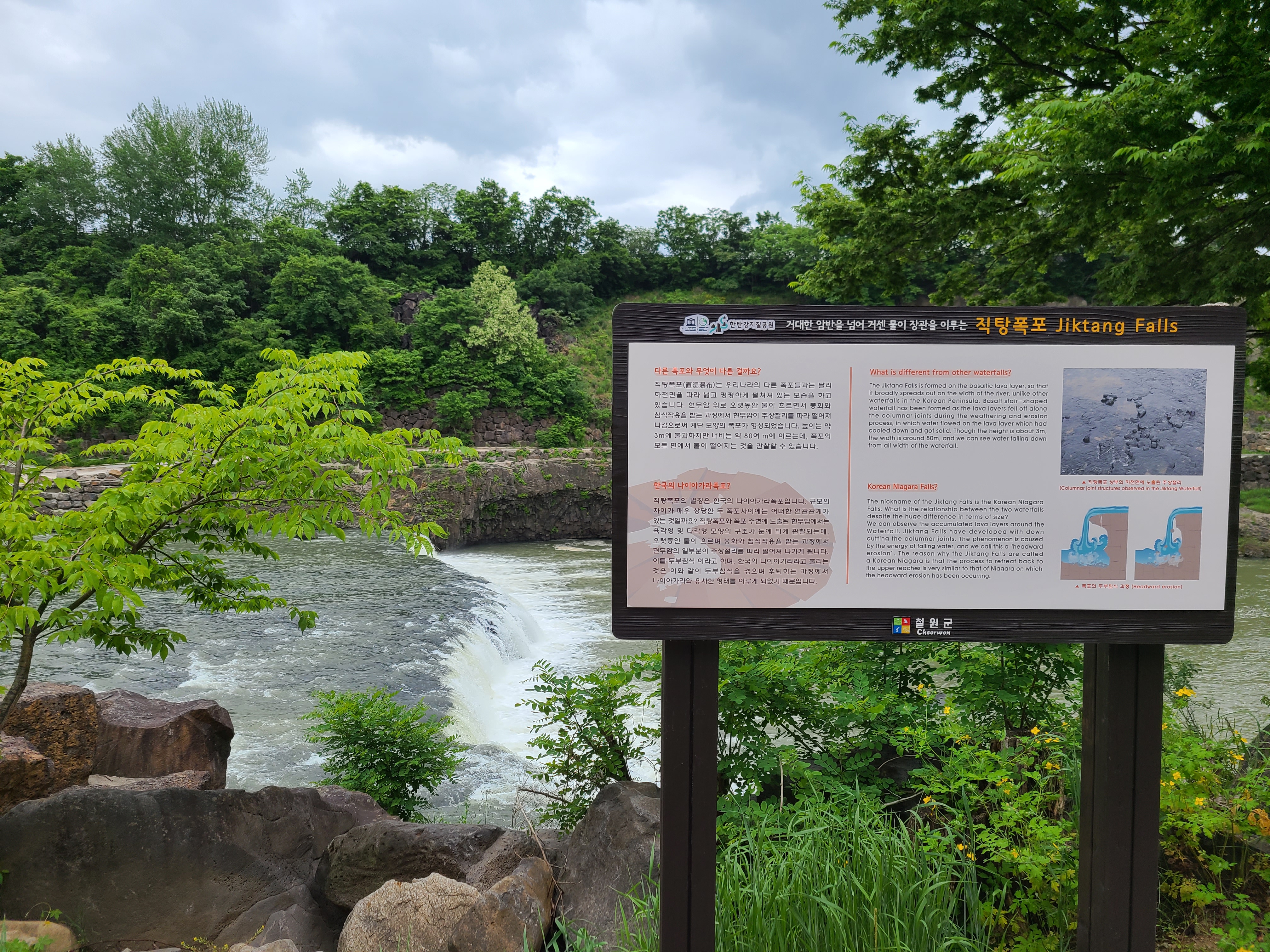 높이 3m와 너비 80m의 직탕폭포는 폭포의 모든 면에서 물이 떨어지는데 일반적인 폭포의 모습과는 많이 다르다. 삼부연폭포는 전날 밤 비가 많이 내려 폭포의 모습이 더 웅장해서 좋았지만, 직탕폭포는 오히려 밤새 내린 비로 강 위로 흐르는 물 사이와 폭포가 떨어지는 부분에 있는 현무암의 모습이 많이 드러나지 않아 아쉬웠다.