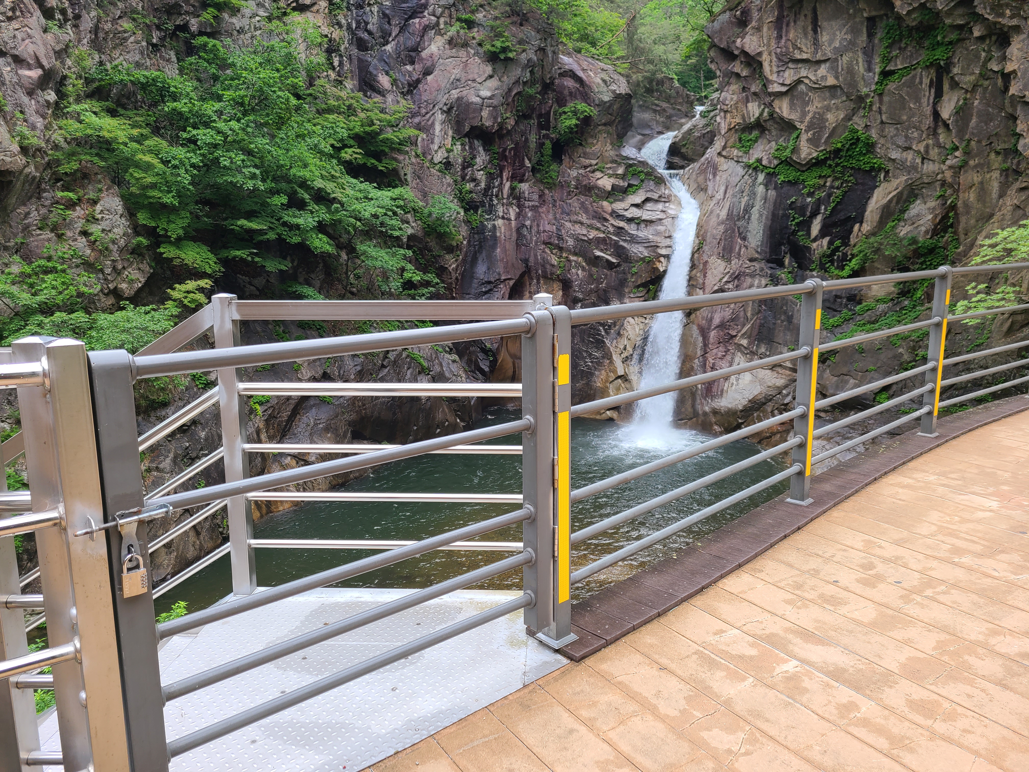 폭포 아래로 내려가고 싶었는데 열쇠로 계단 입구를 잠가놓아 내려갈 수 없었다.