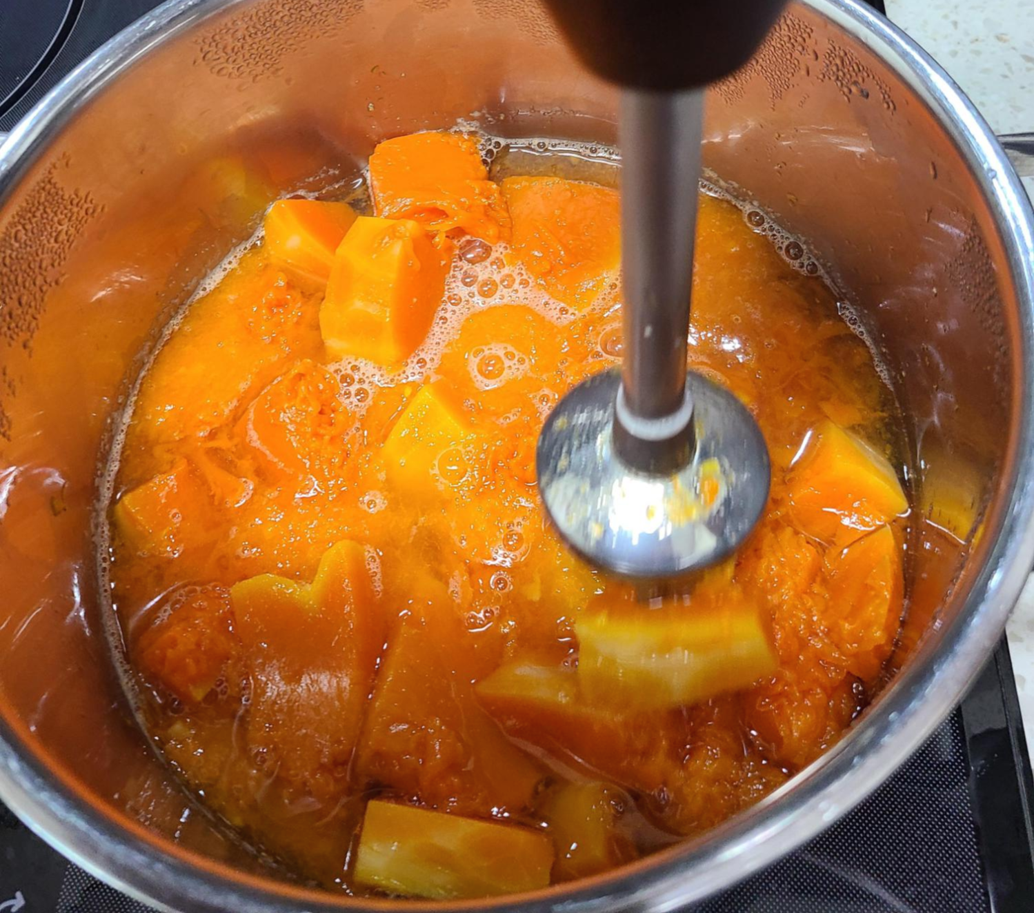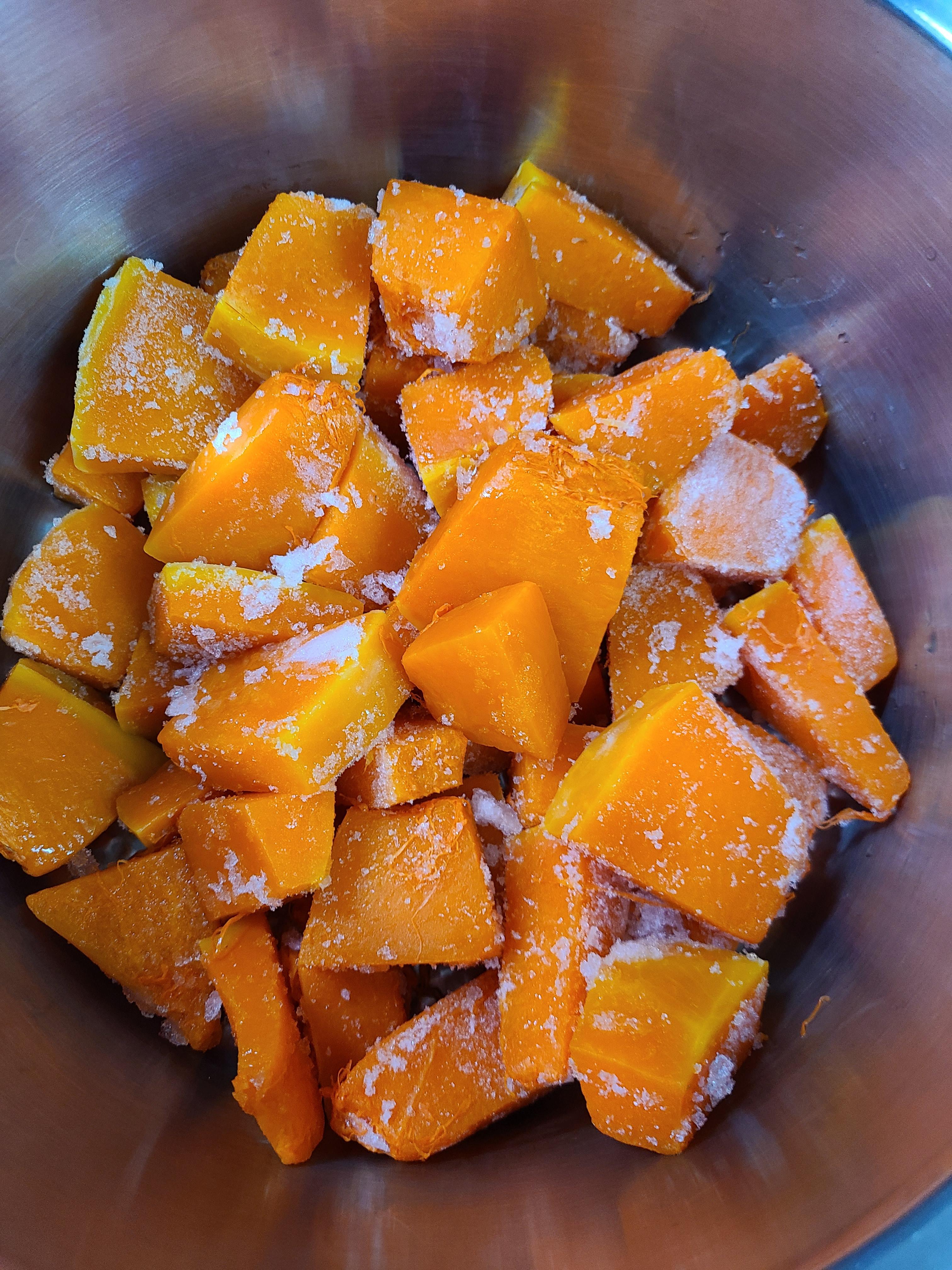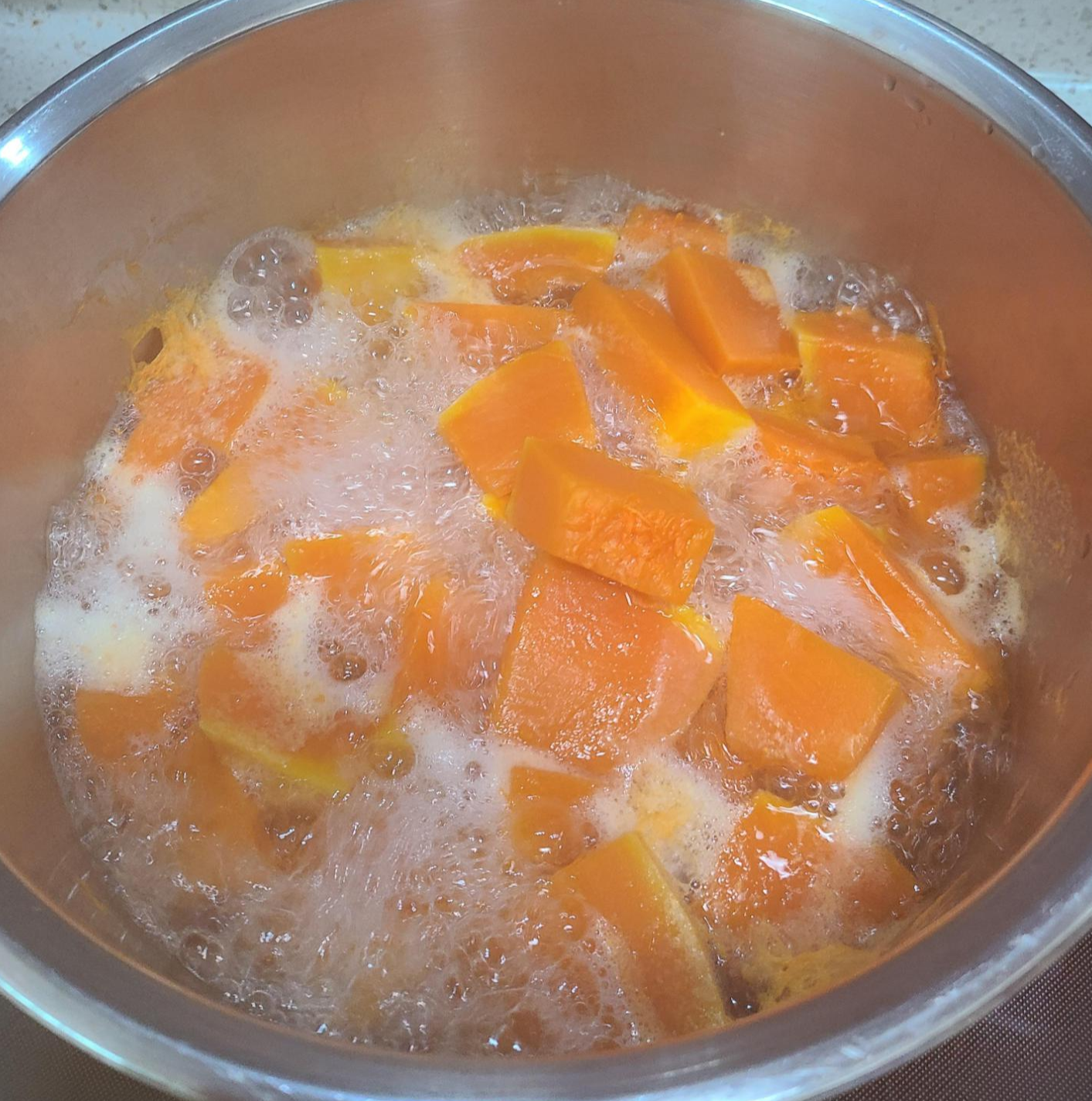 냉동되었던 호박은 10분 정도만 끓여도 충분하다.