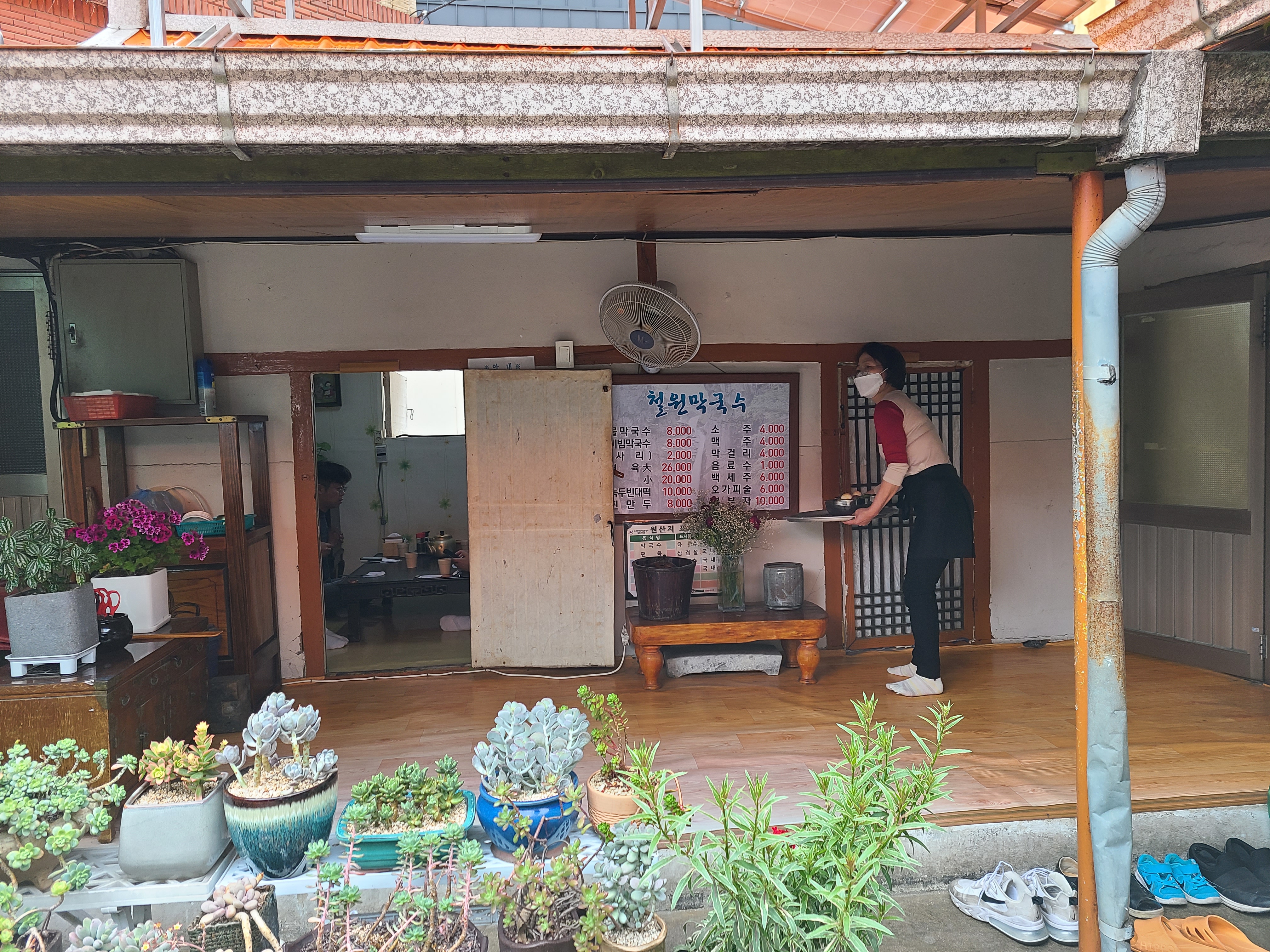 철원에 가면 꼭 들리게 되는 막국수집이 있다. 25년 전 시부모님이 아버님의 사촌형님이 사시는 철원 토성리에서 몇 년 사신 적이 있었다. 시부모님을 뵈러 철원에 가면 함께 외식을 하고는 했는데, 시아버님은 철원 막국수집에 오시는 걸 좋아하셨다. 처음 시부모님을 모시고 막국수를 먹기 위해 철원 막국수에 오던 날, 식당 입구에 들어서는데 할아버지 한분이 큰 가마솥에 불을 때며 돼지수육을 삶는 모습을 볼 수 있었다. 그 모습이 신기해서 한참을 보았던 생각이 난다.