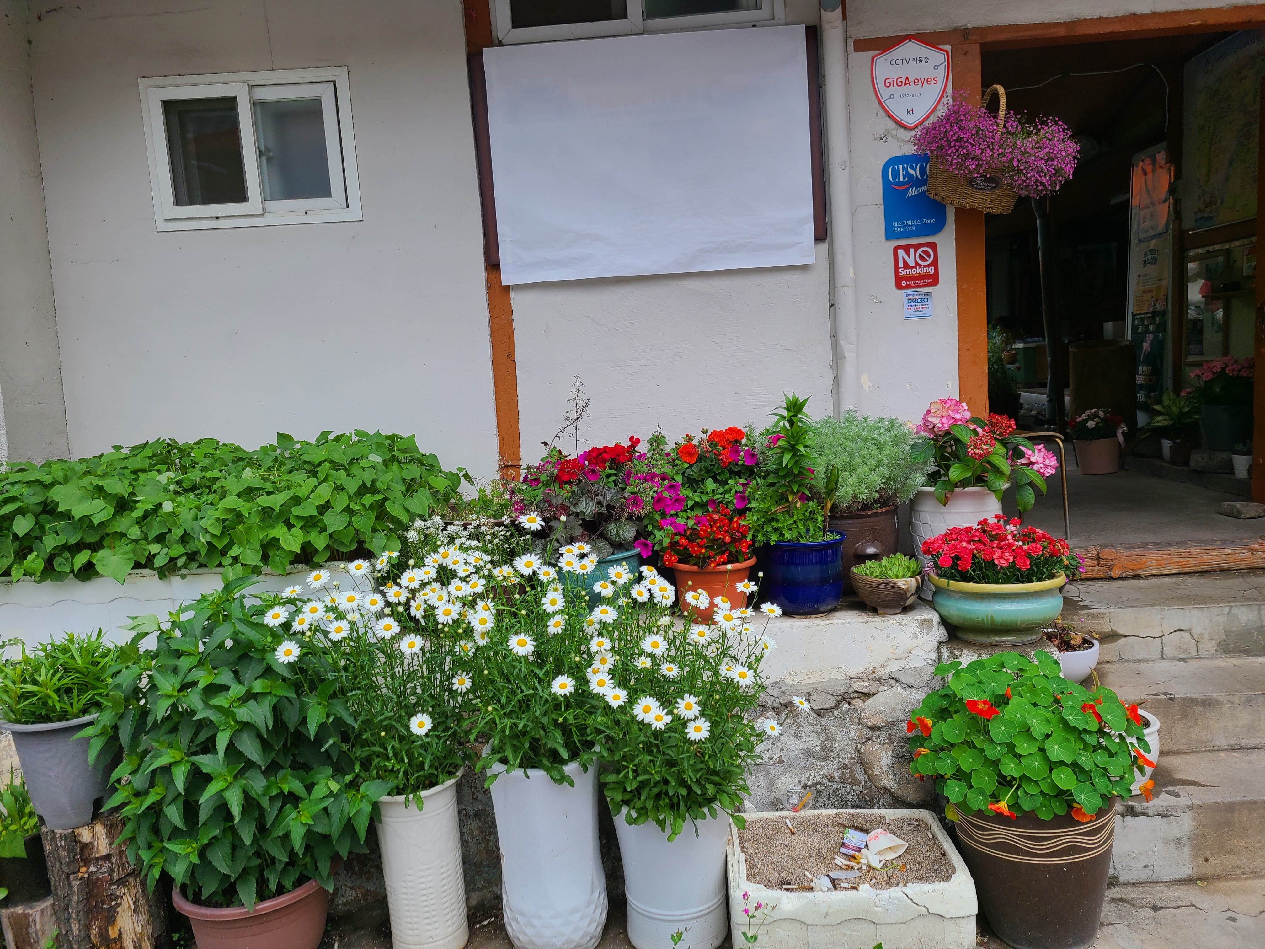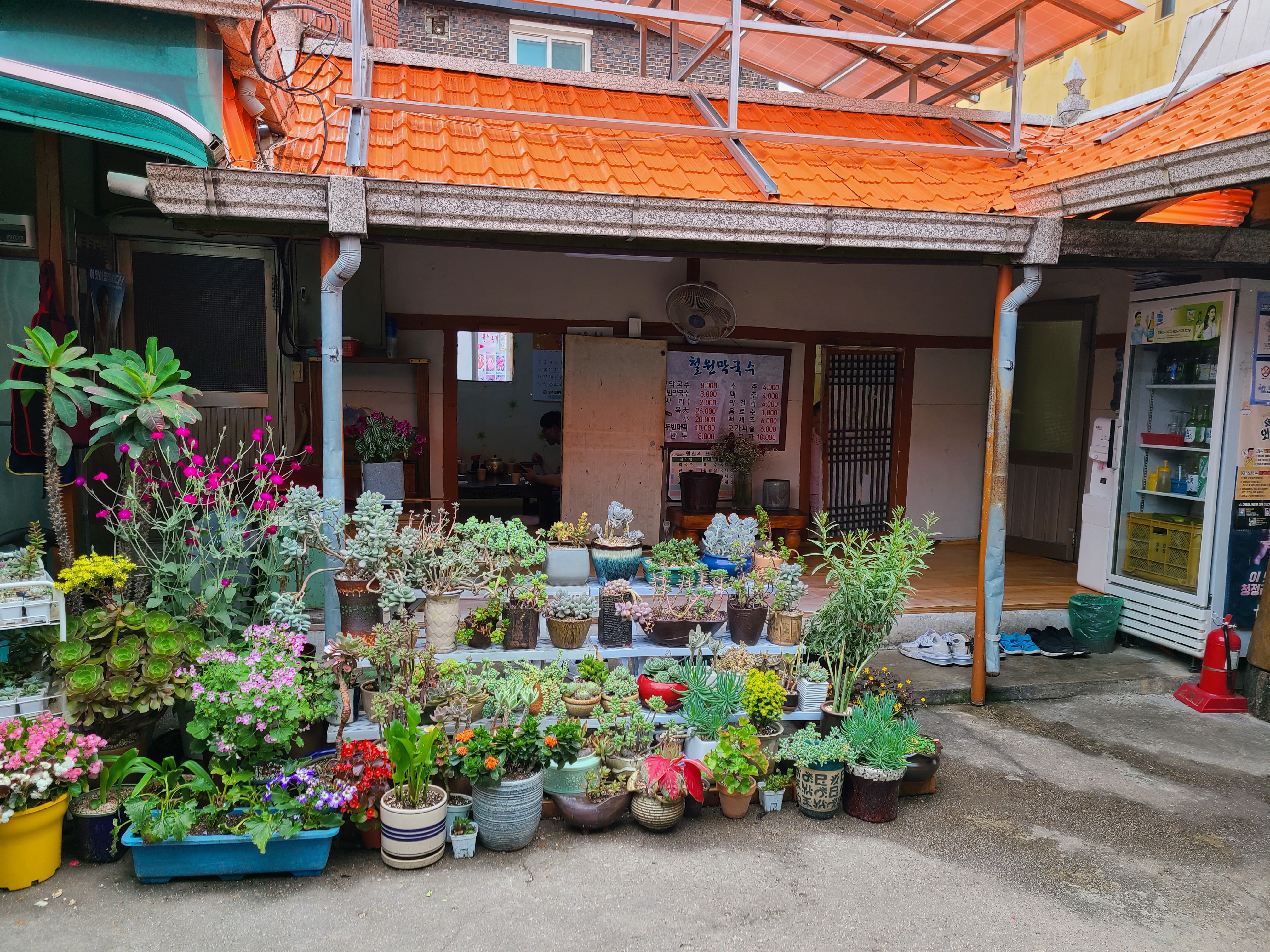식당 입구 앞과 식당 내부에는 화분에 온갖 화초가 가득했다.