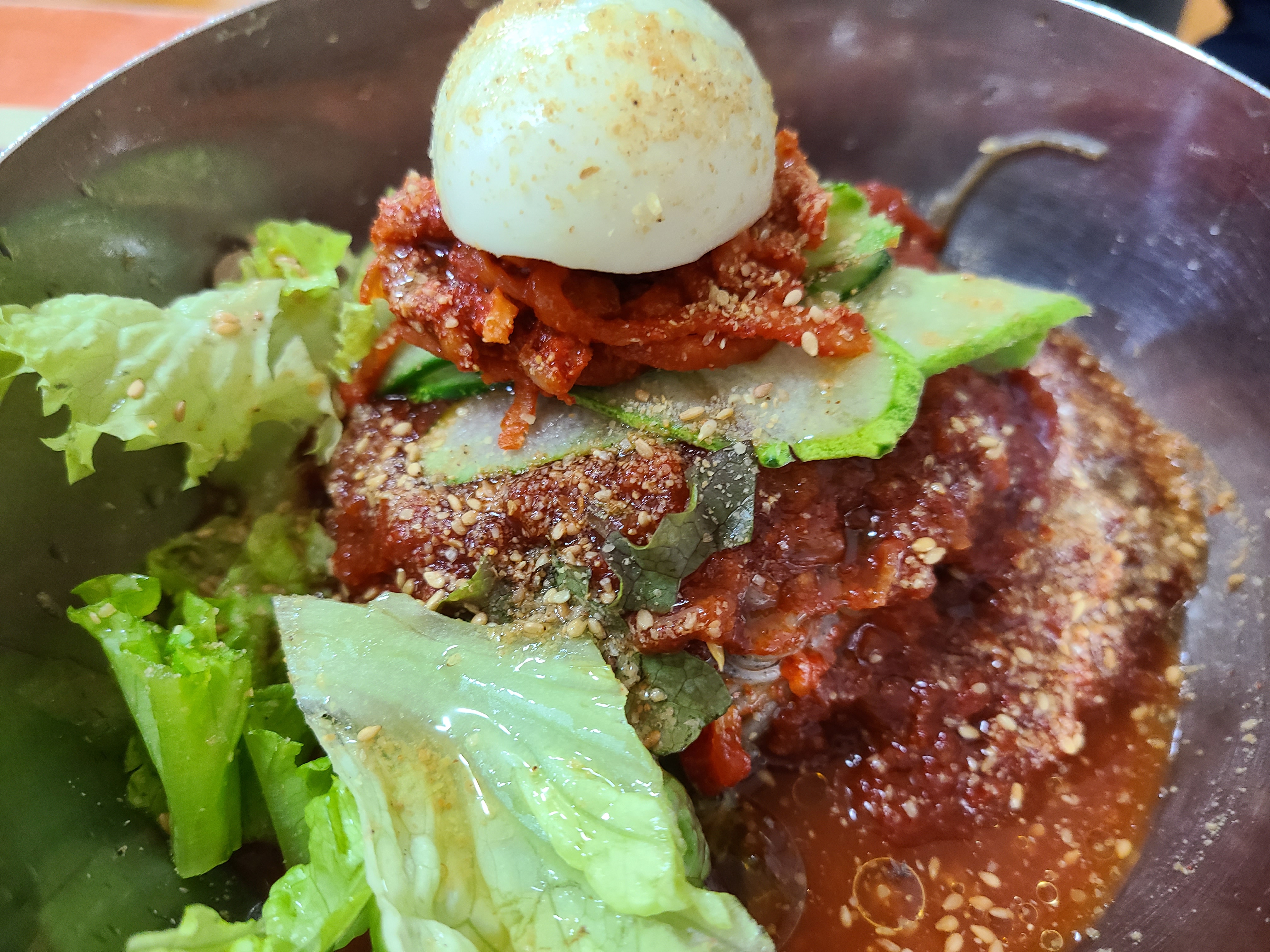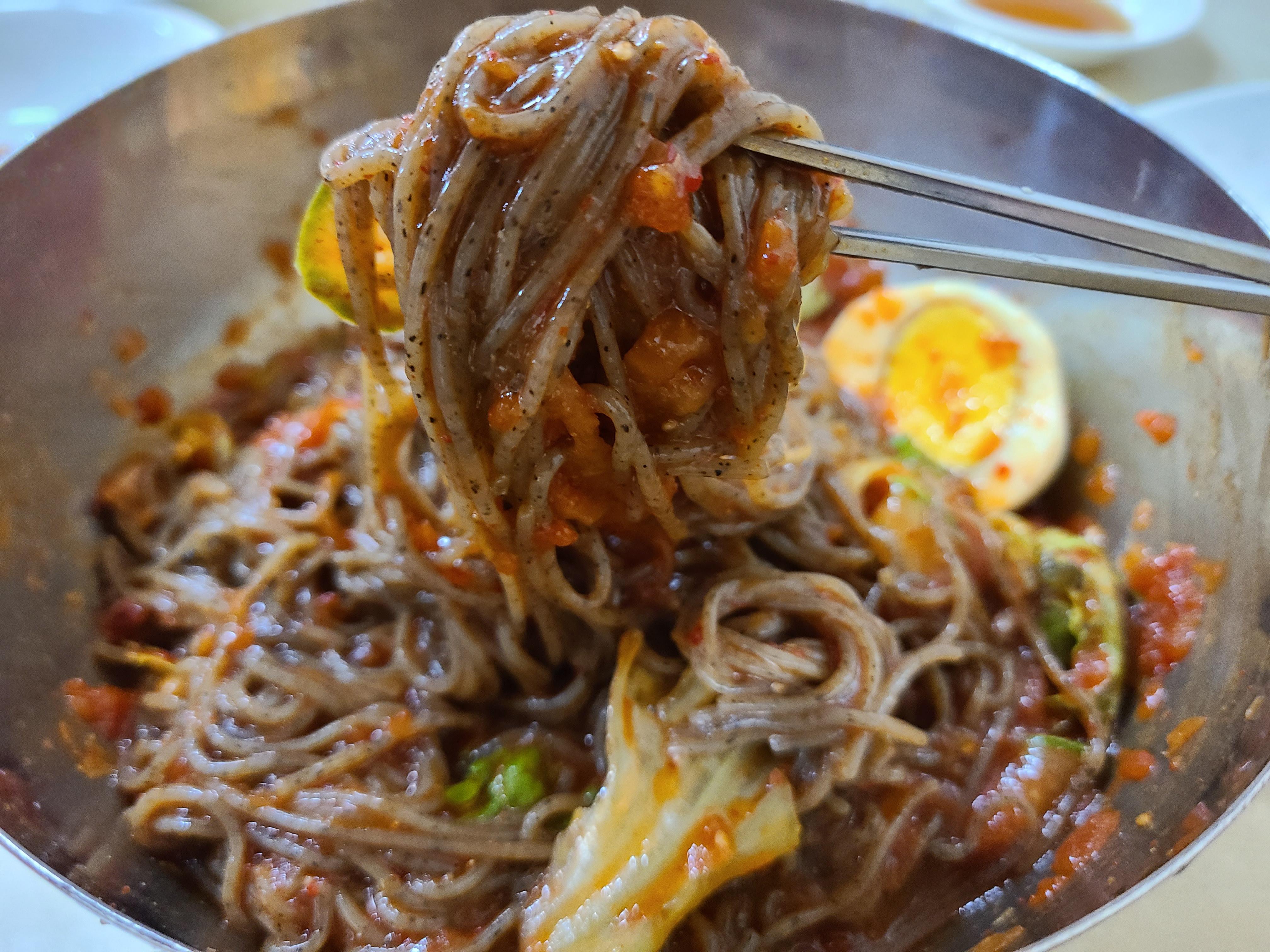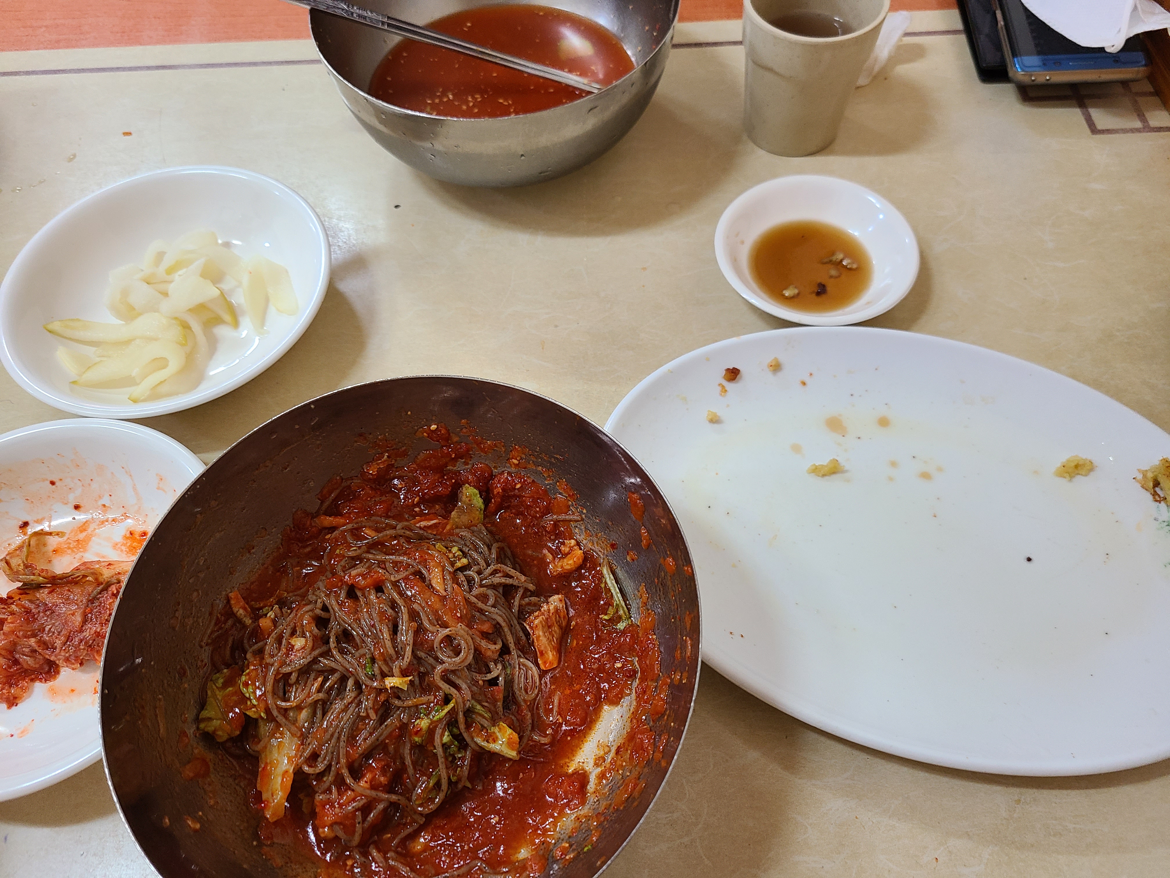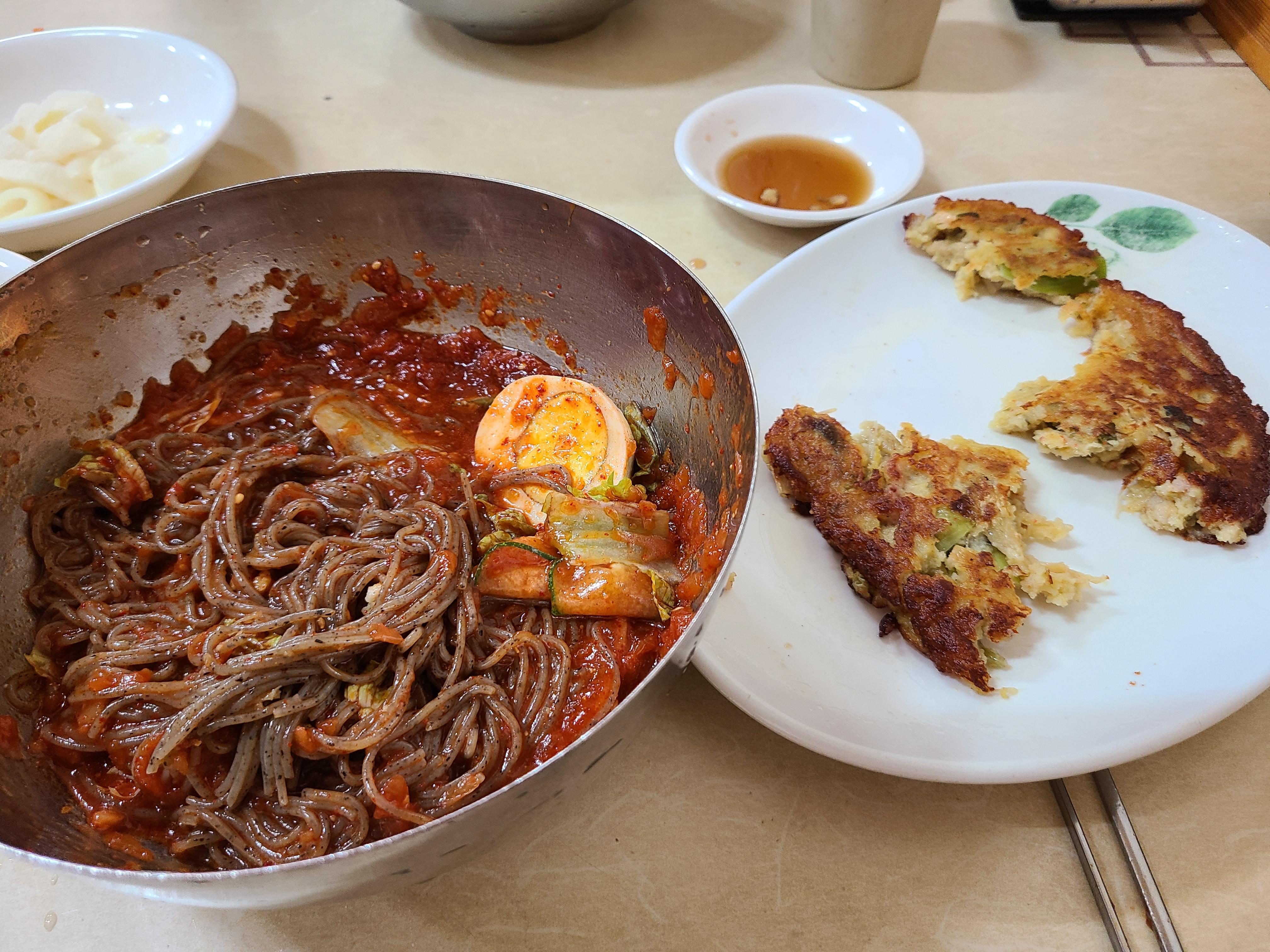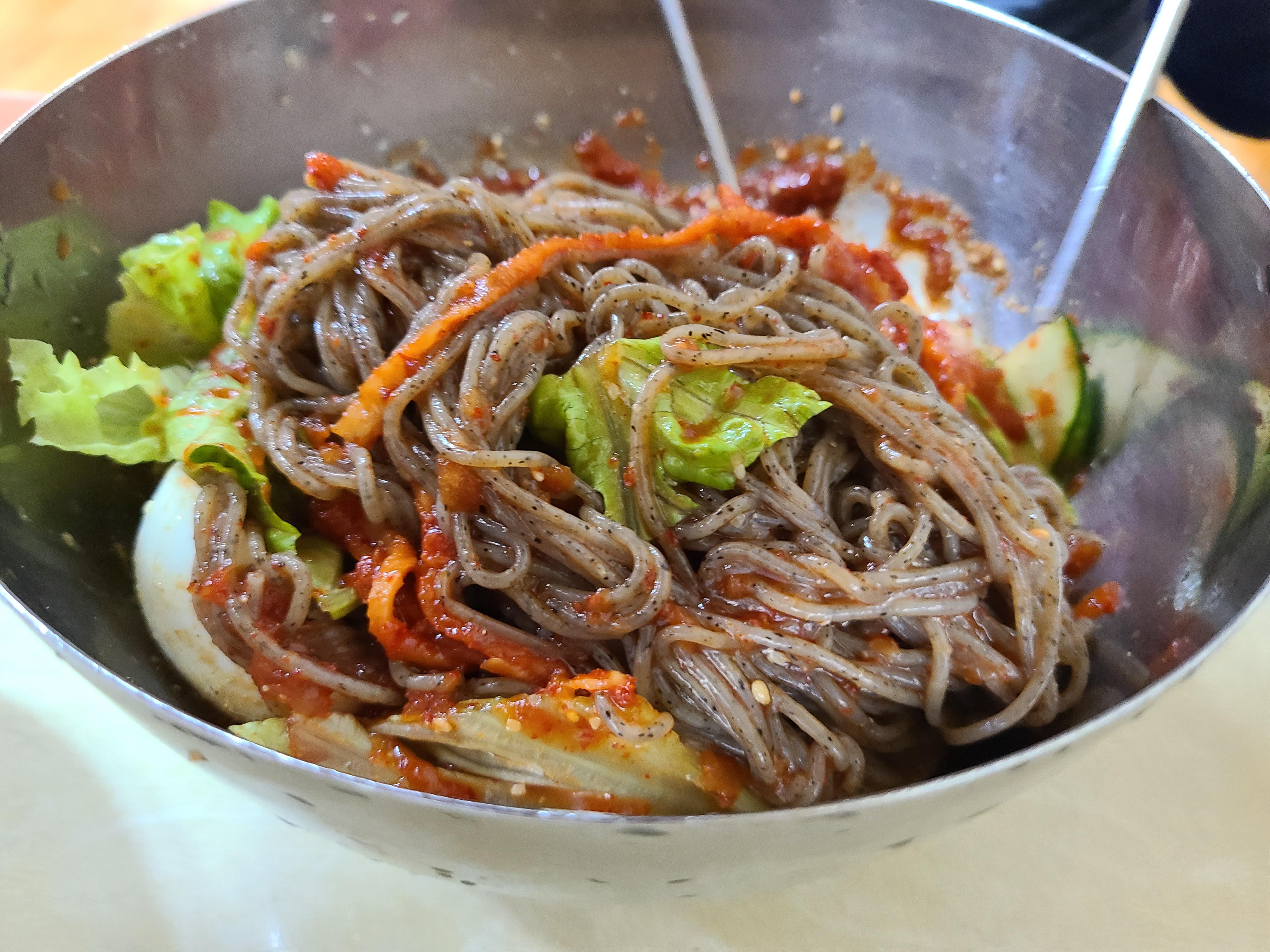 녹두빈대떡을 많이 먹어서 배가 불러 비빔 막국수를 남기고 말았다. 지금 다시 사진을 보니 남기고 온 비빔막국수가 먹고 싶다.