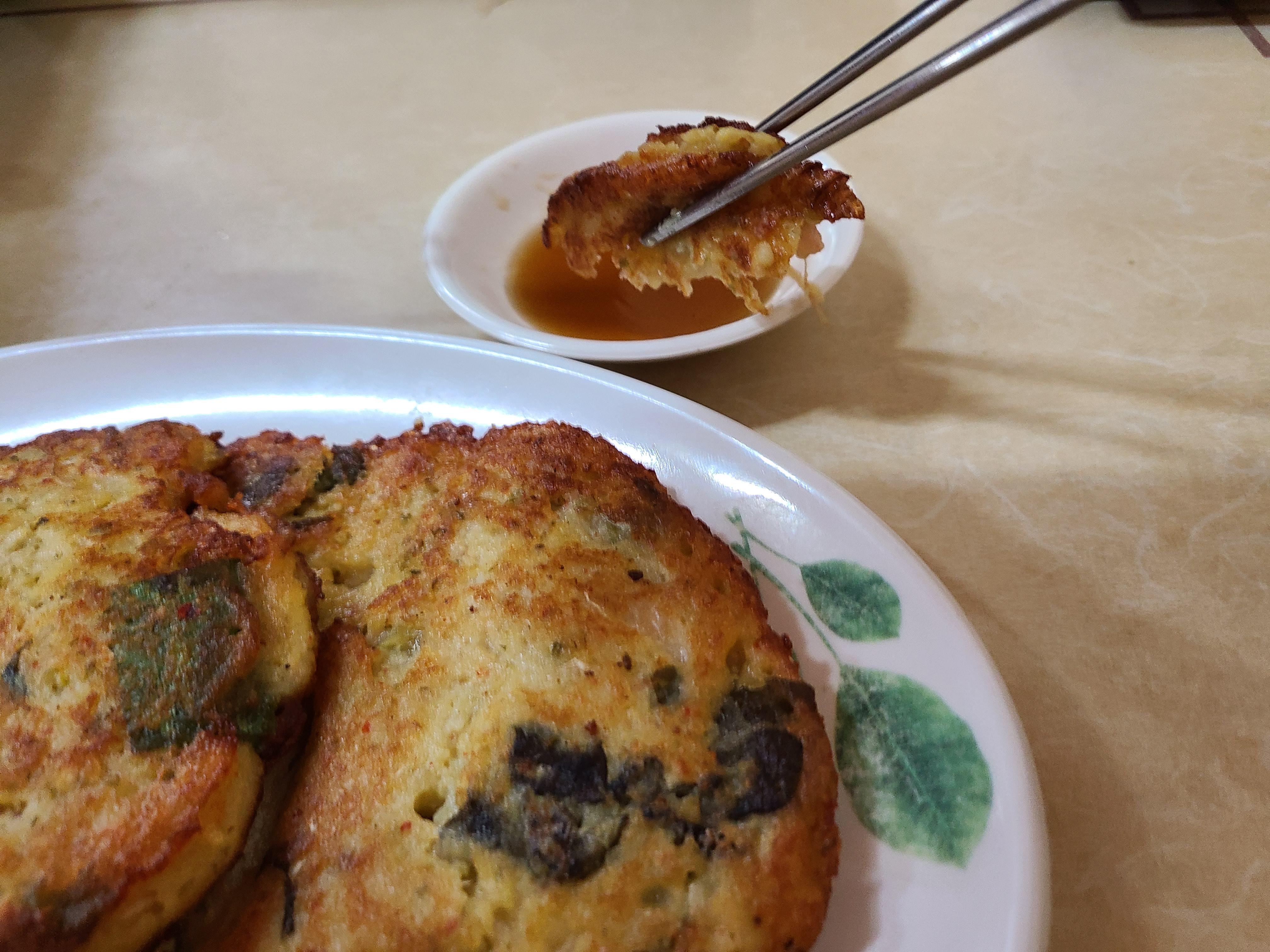 녹두빈대떡의 맛이 변함없이 맛있었다. 겉은 바삭하고 속은 촉촉하며 구수한 맛이 녹두빈대떡의 고유의 맛이 그대로 느껴진다. 집에서 녹두를 갈아서 해 먹던 맛과 다르지 않다.