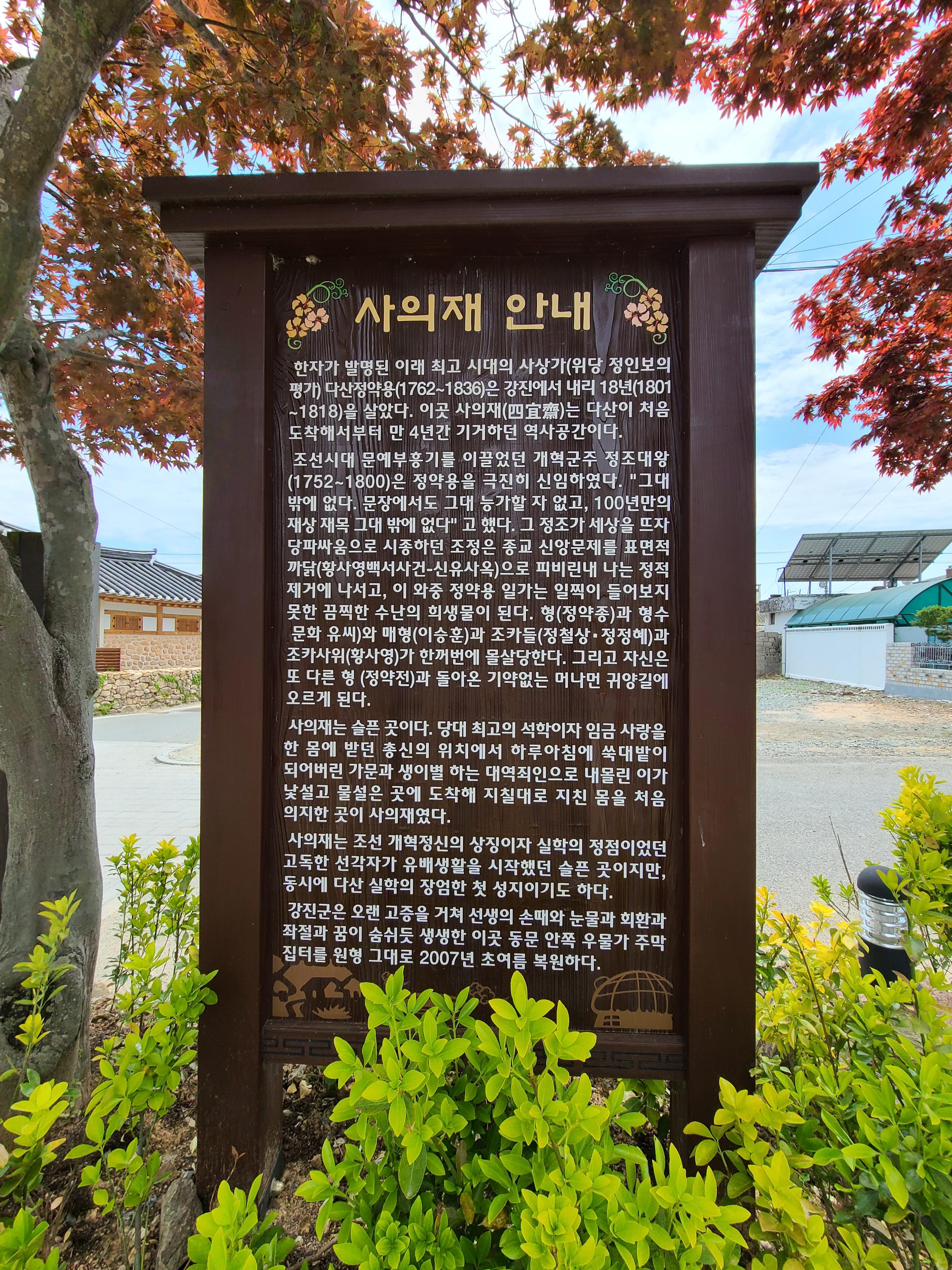 강진군청 바로 옆에 있는 사의재는 다산 정약용이 1801년 강진에 유배 와서 처음 머물던 곳이다.