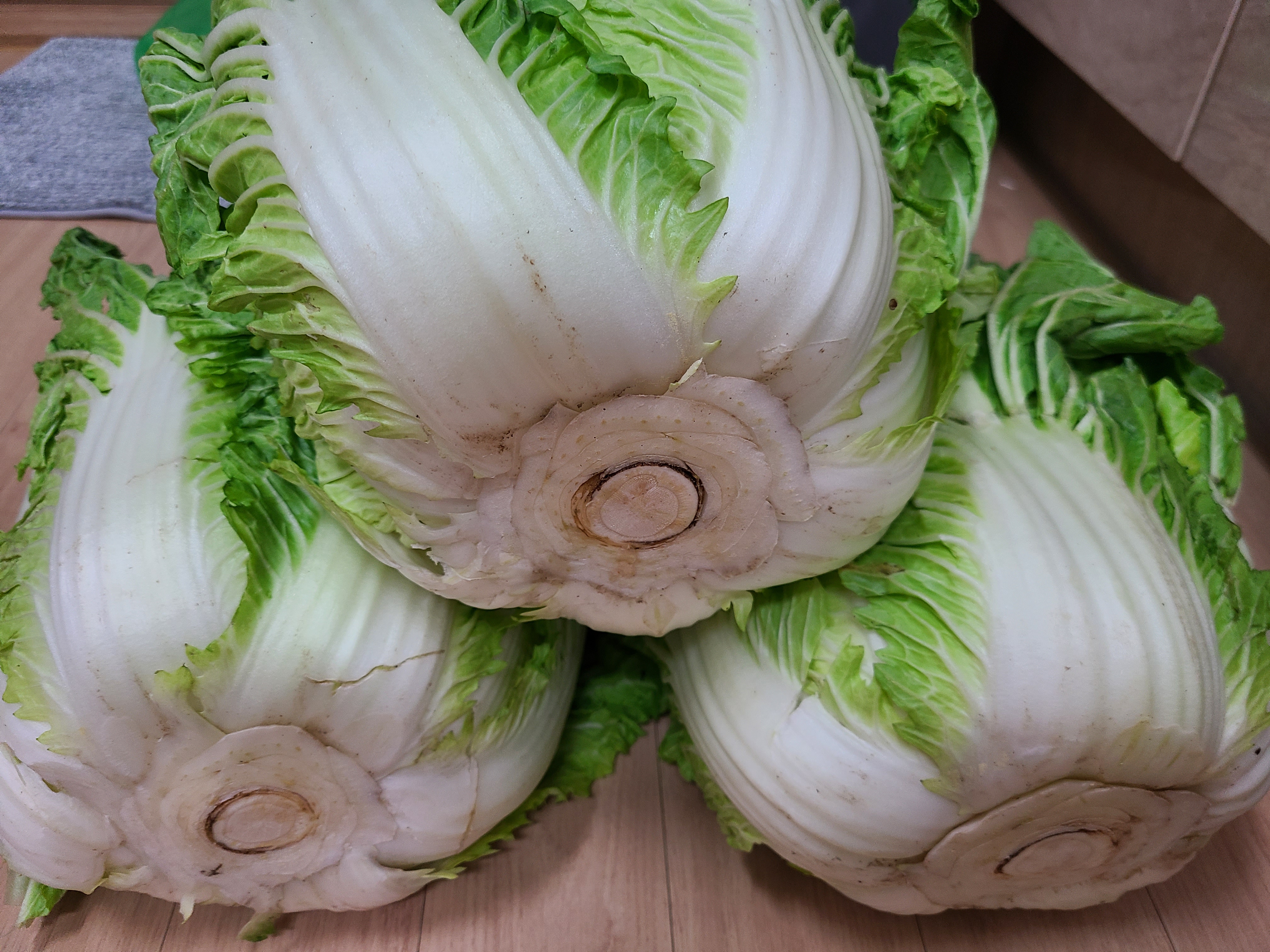 배추를 다듬는 과정 중에 겉잎을 떼어냈는데 절인 후에 푸른 부분 몇 개를 더 떼어놓았다가 우거지로 사용해도 좋다.