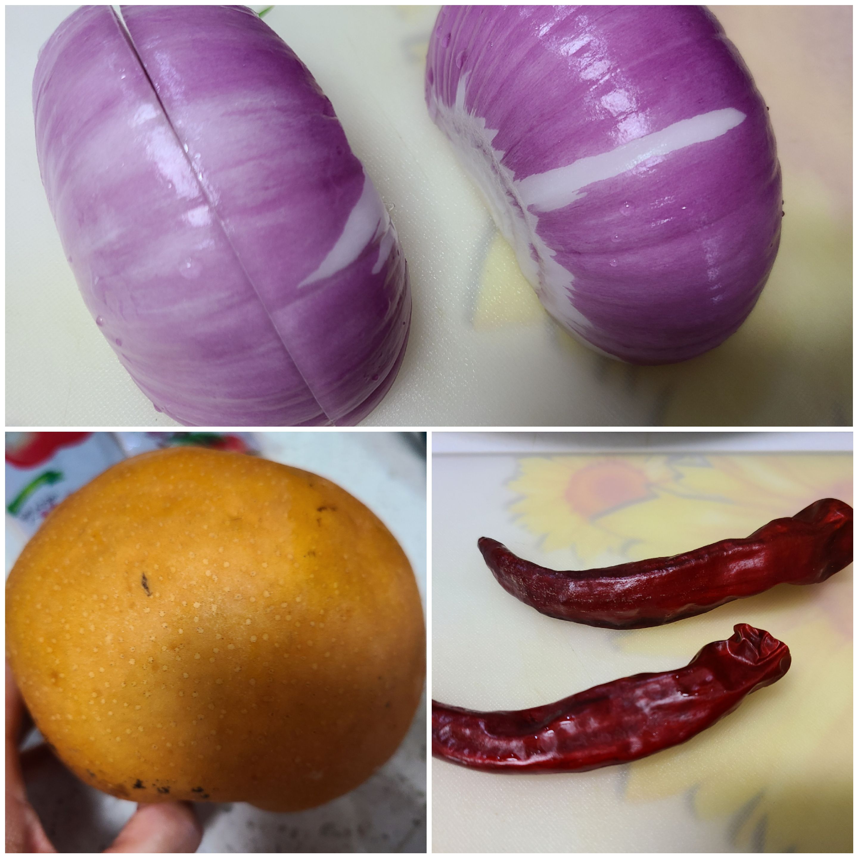 적양파 한 개를 반을 자른 후 길이를 다시 반 자른 후 얇게 썰어준다.