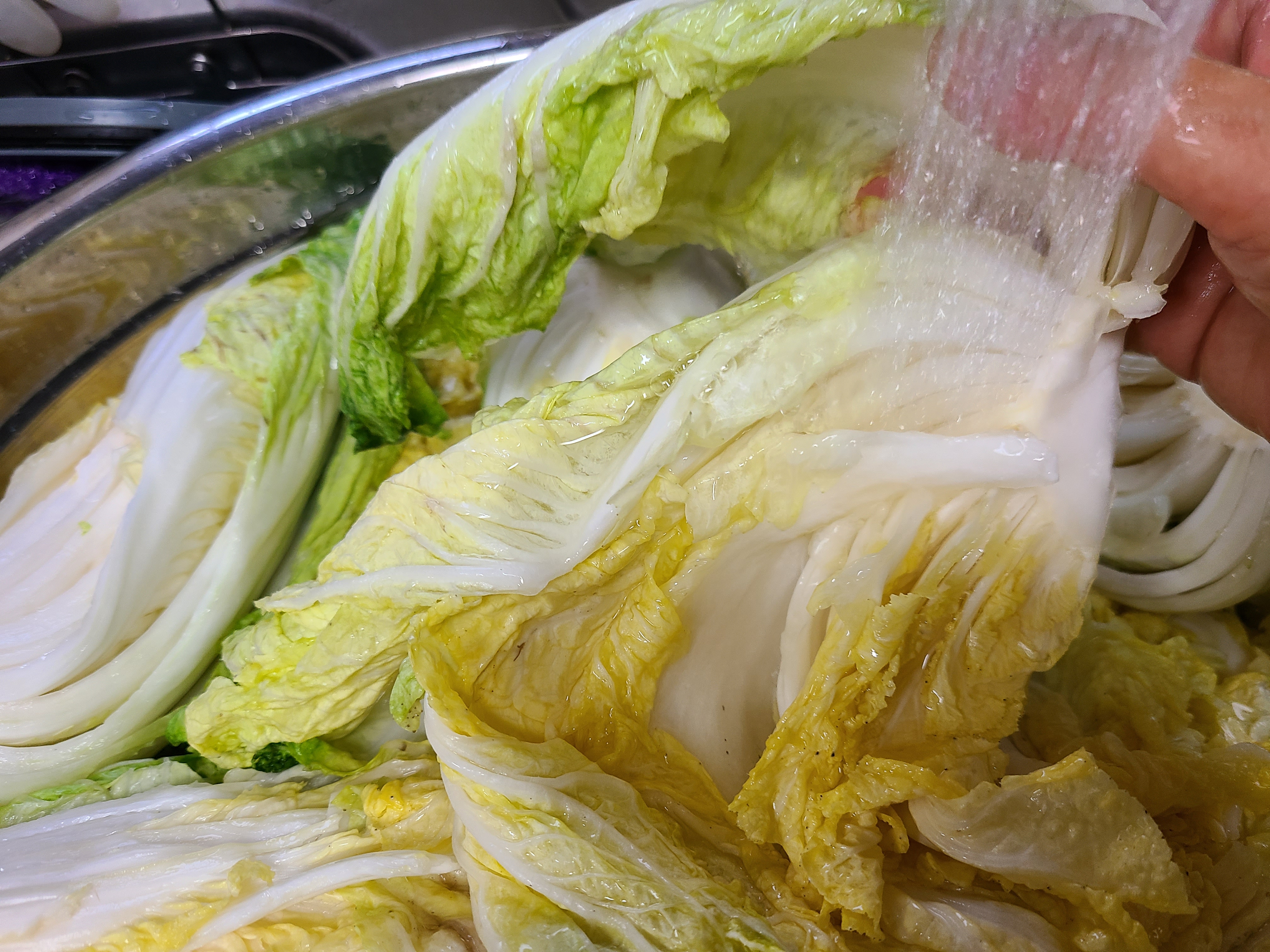 여름배추는 김장배추처럼 오래 절이지 않기 때문에 헹굼은 최대한 빨리 헹구어 주워야 배추가 다시 살아나지 않는다.