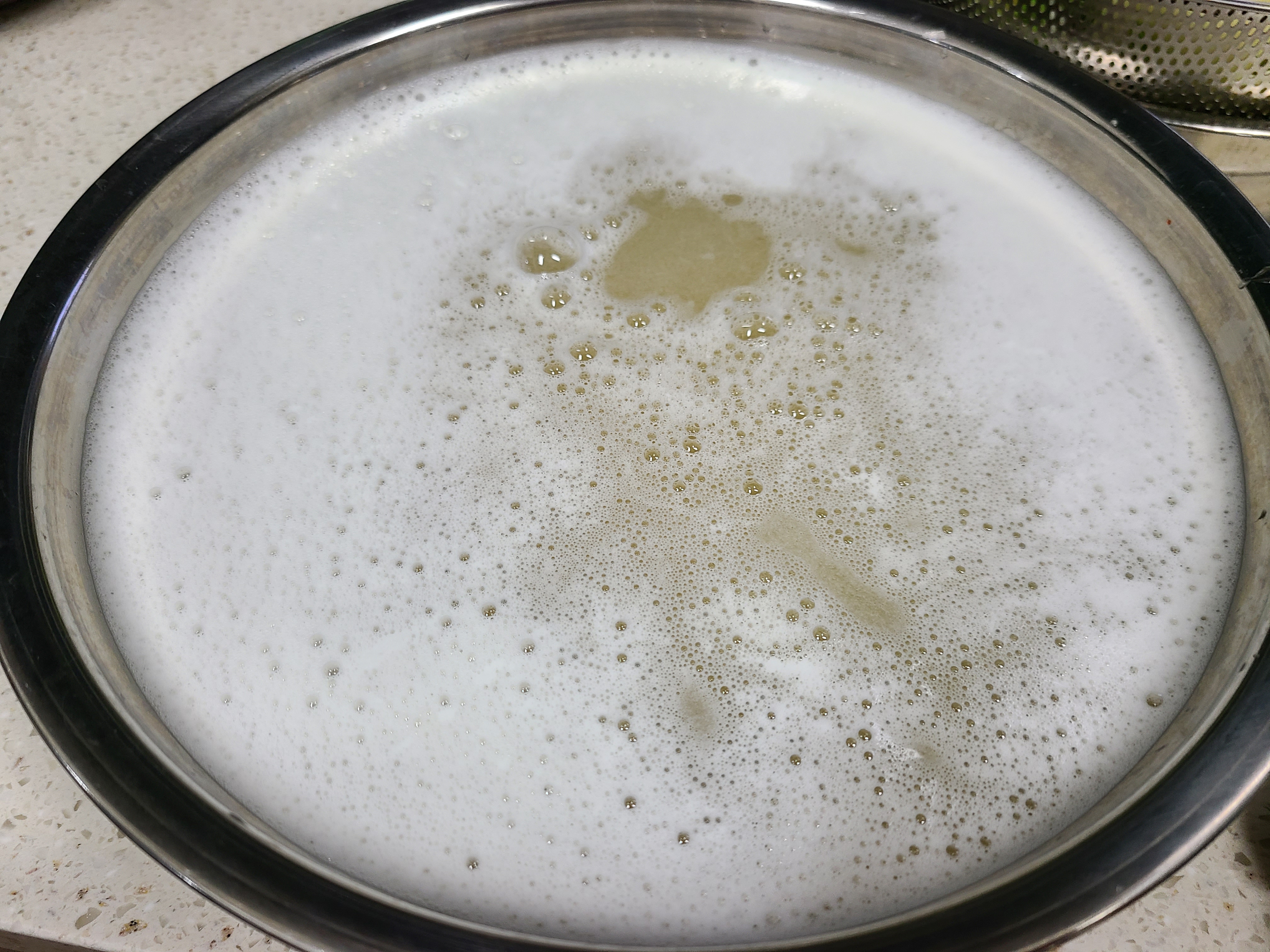 북어 육수 5l, 무 배즙 1.5l, 찹쌀풀 1.5l를 큰 보울에 담아준다.