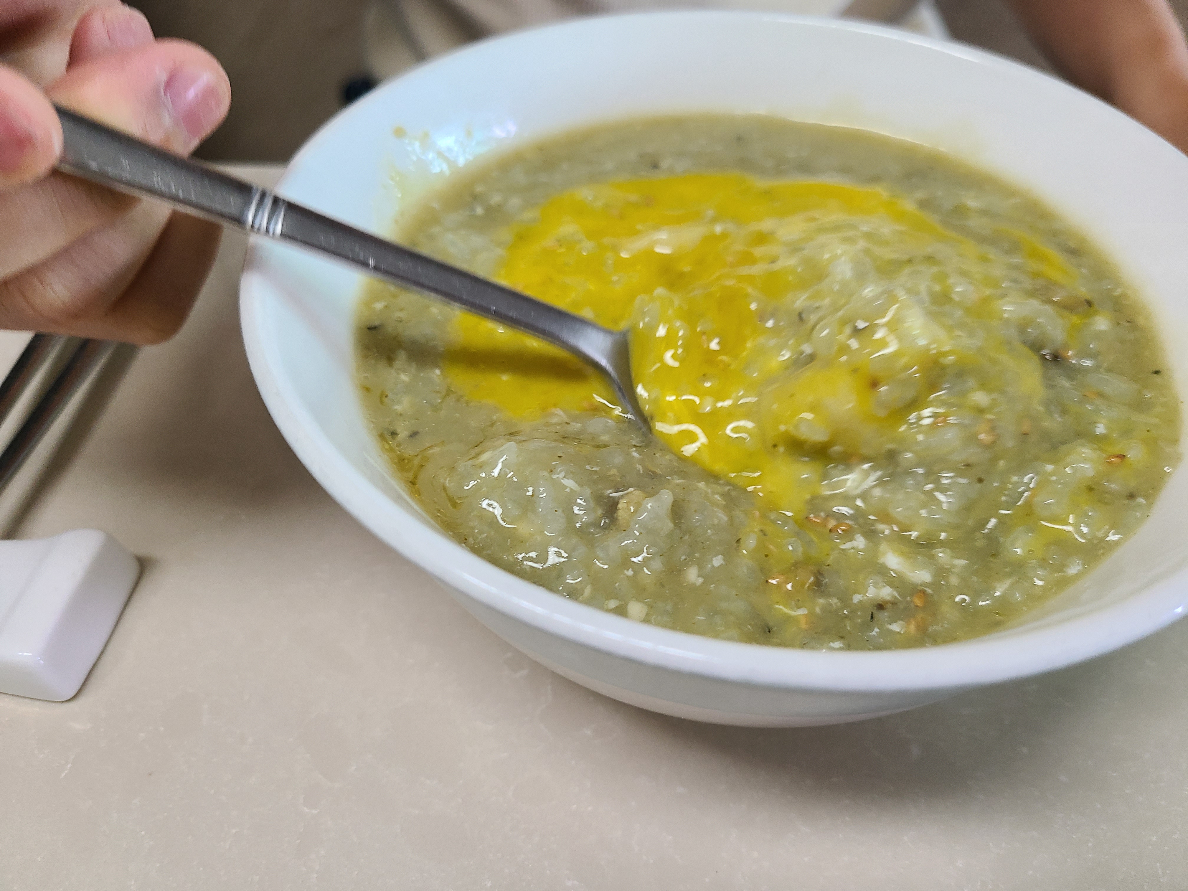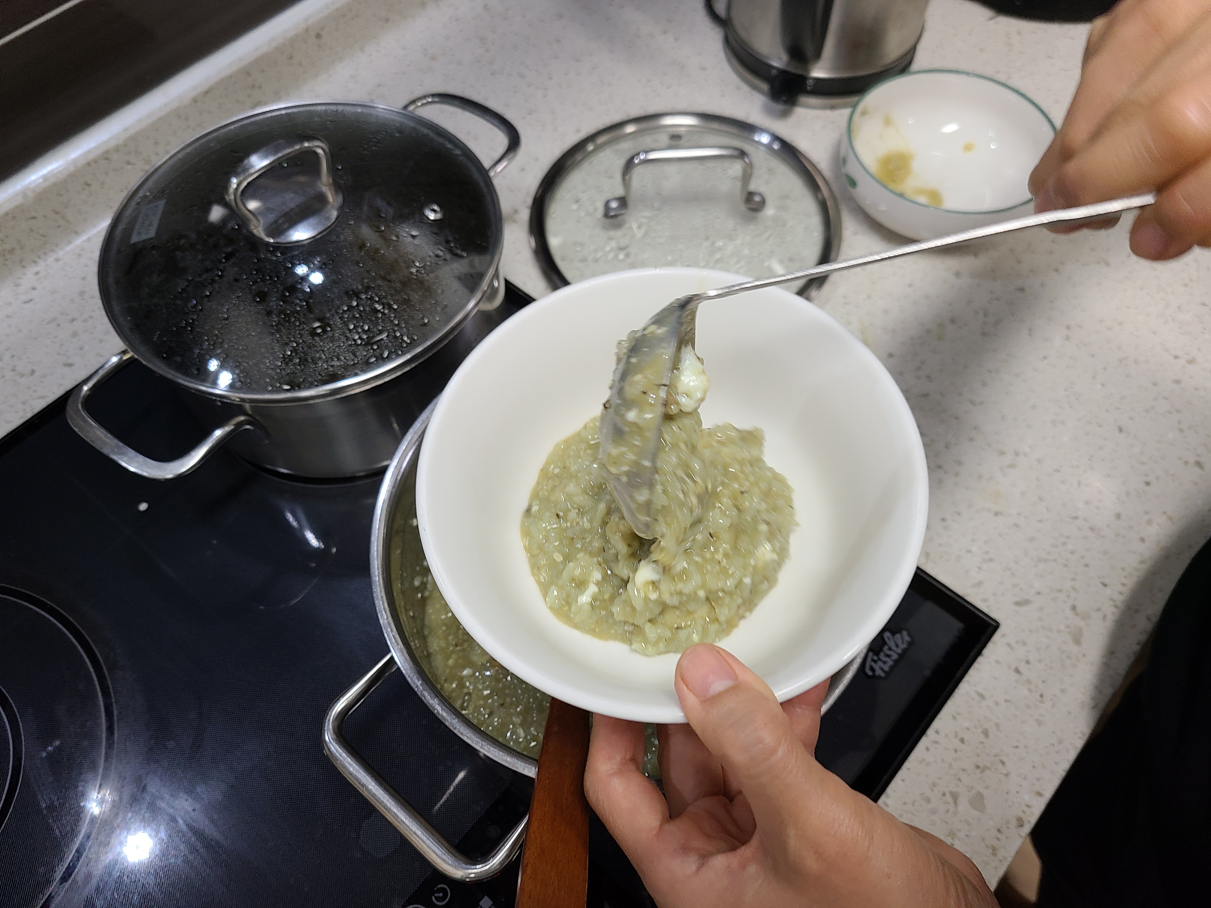 남은 한 그릇은 내 거~^^ 딸하고 사위 주려고 만든 전복죽을 맛있게 먹었다.