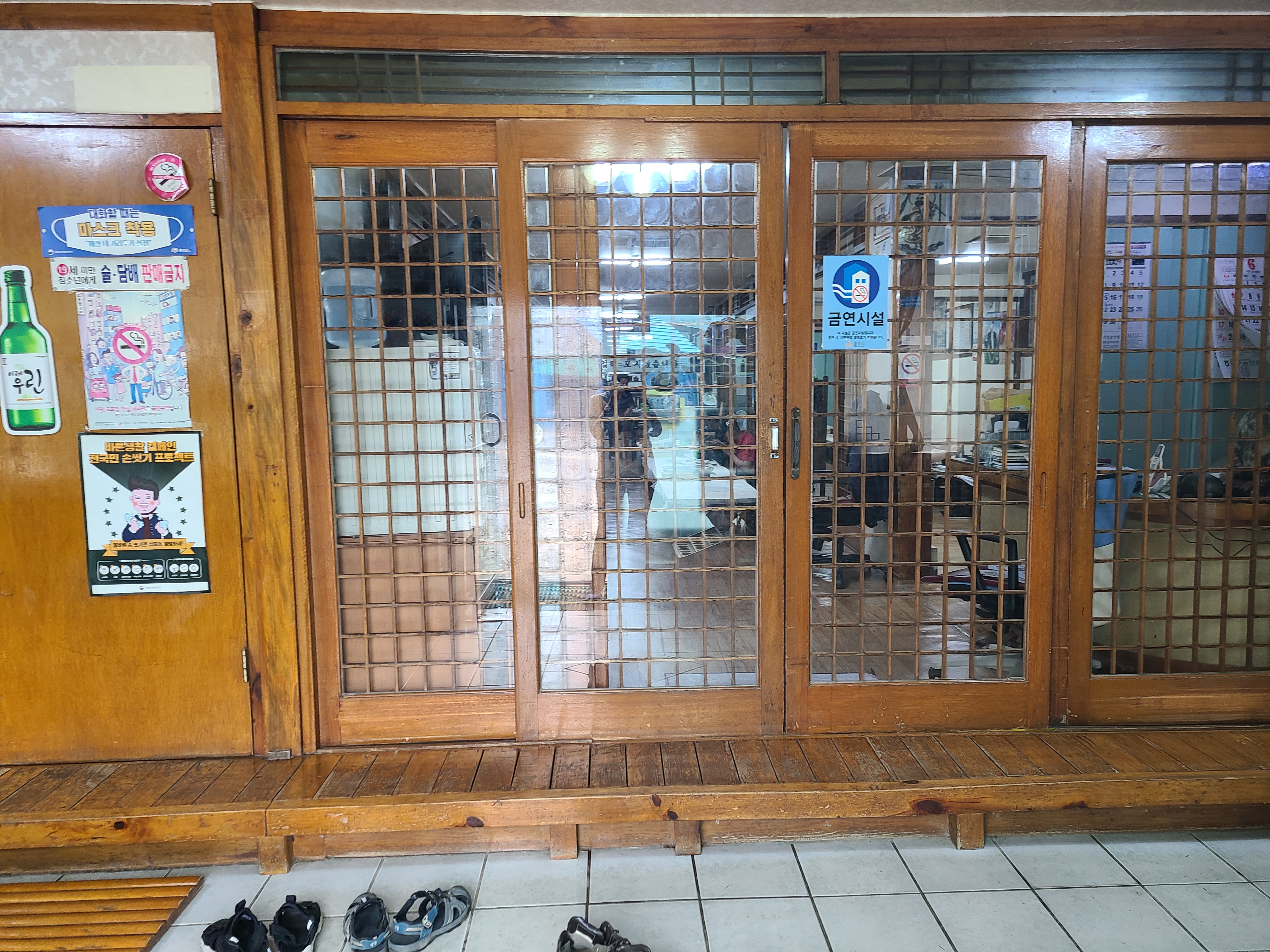 음식점 이름은 청수 회관이다. 입구에 들어서니 구조가 오래된 식당으로 보인다. 출입구를 열고 들어서면 신발 벗는 곳이 있고 다시 미닫이 문을 열고 들어가야 했다.