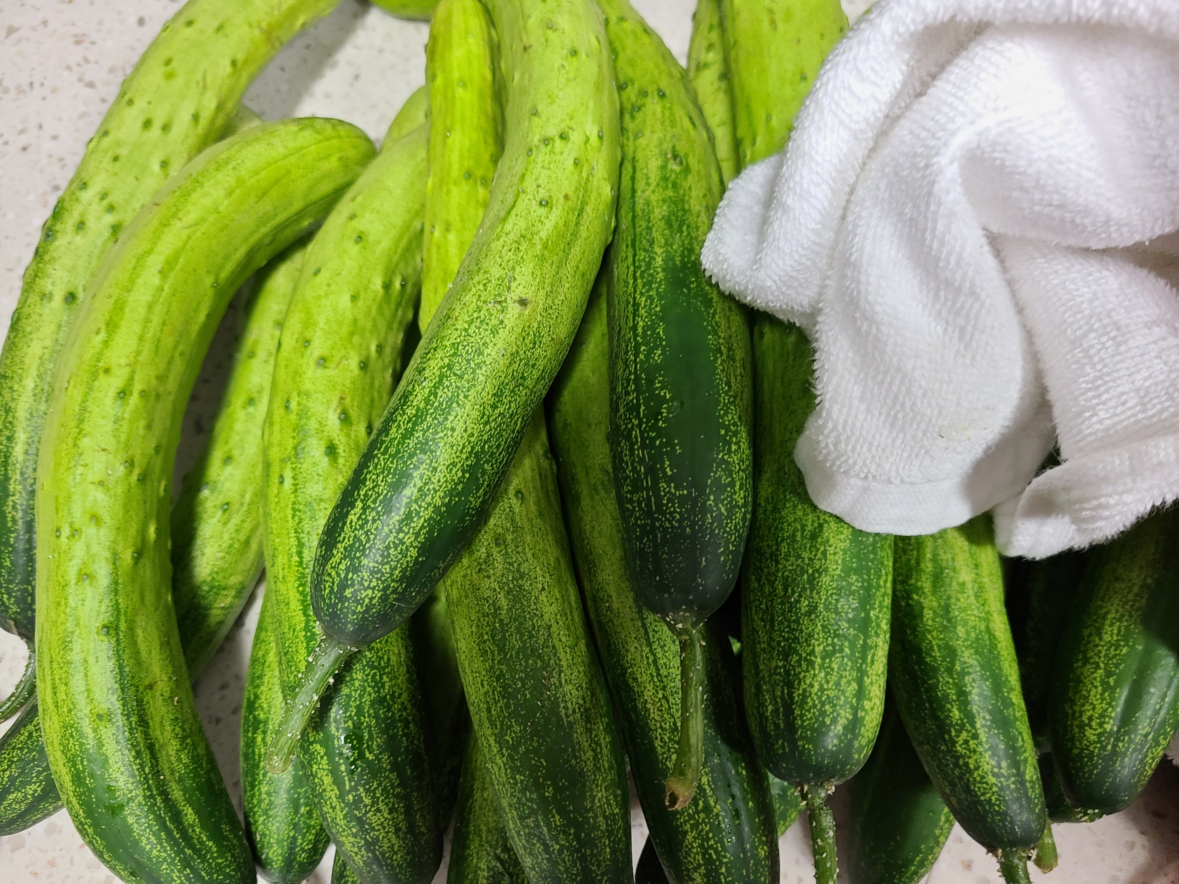 오이지무침을 몇 번 해서 이웃과 나누어 먹었더니 오이지가 몇 개 남지 않아 다시 오이 50개를 구입했다.