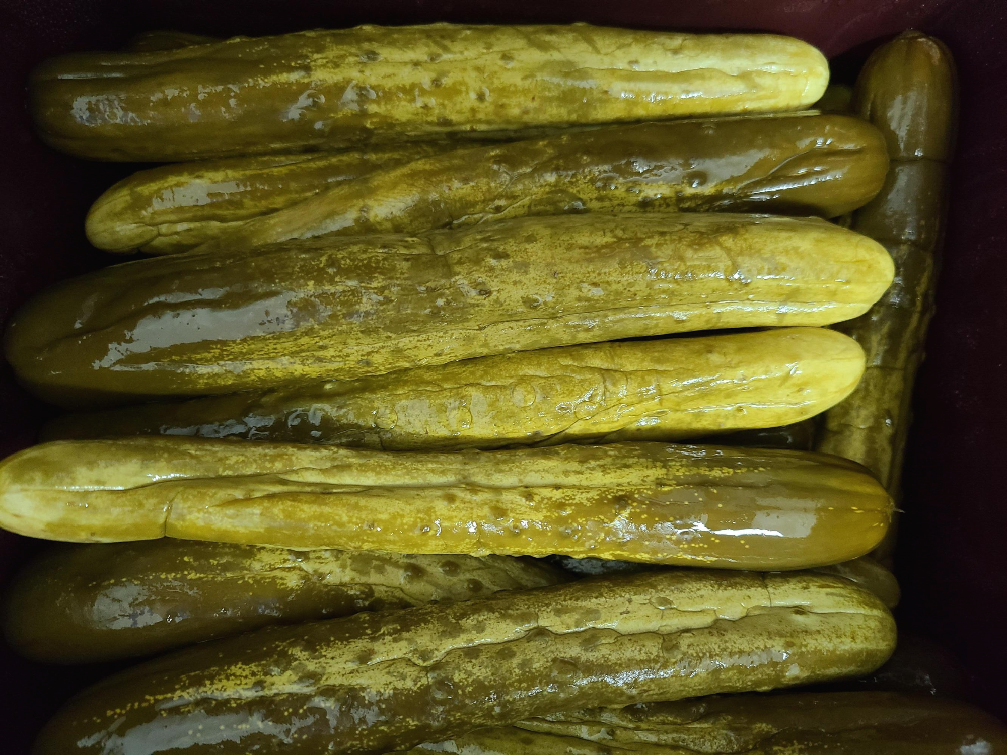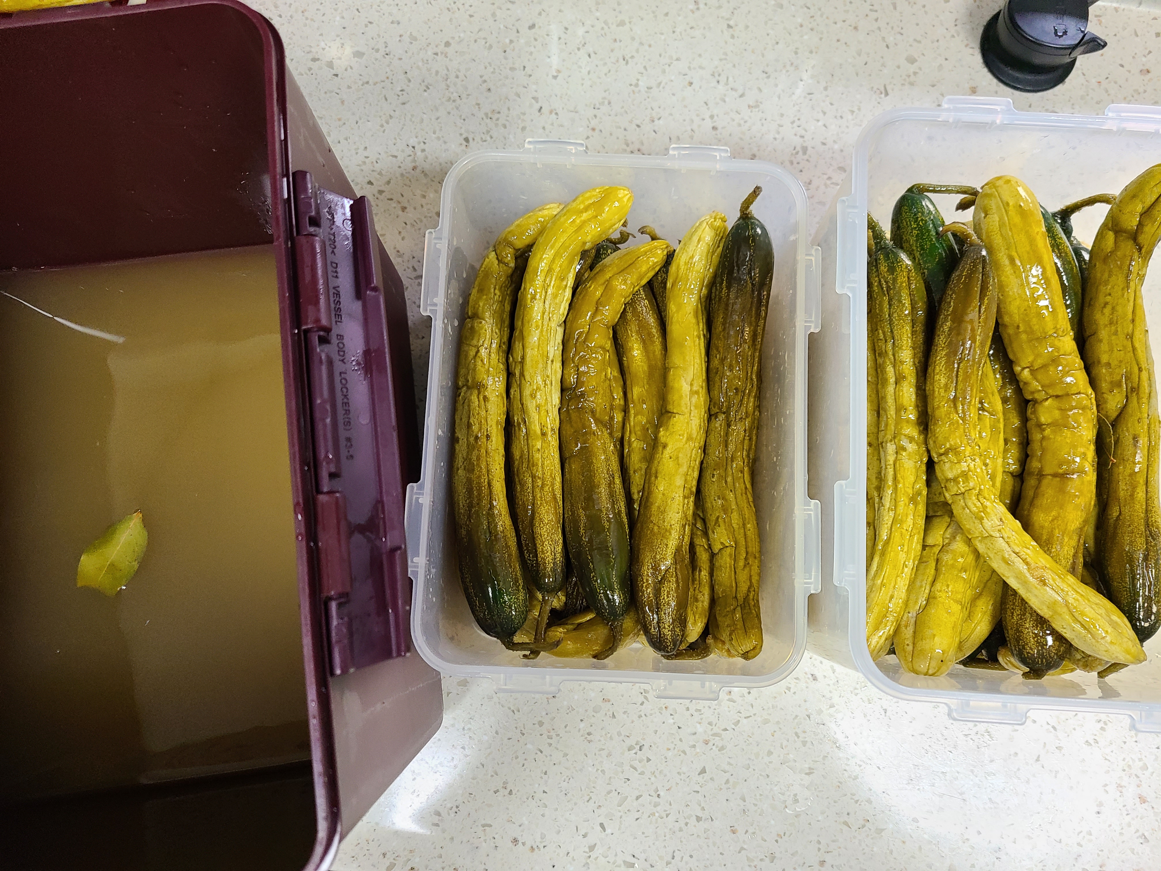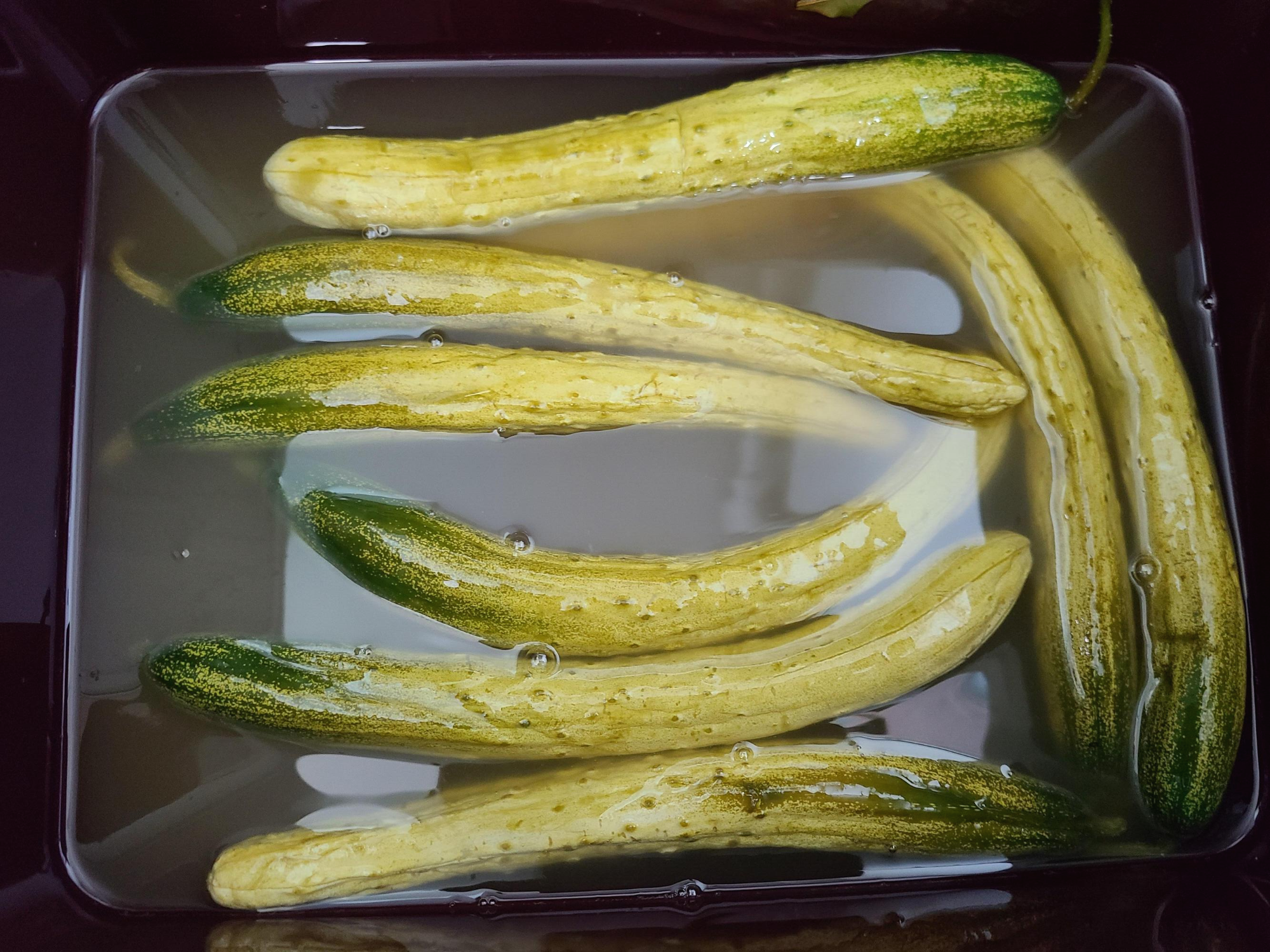 10. 실온에 5일을 더 두어 1주일이 지난 오이를 꺼내보니 익기는 했는데 짭조름하다. 그리고 약간의 골 가지도 생겼다.