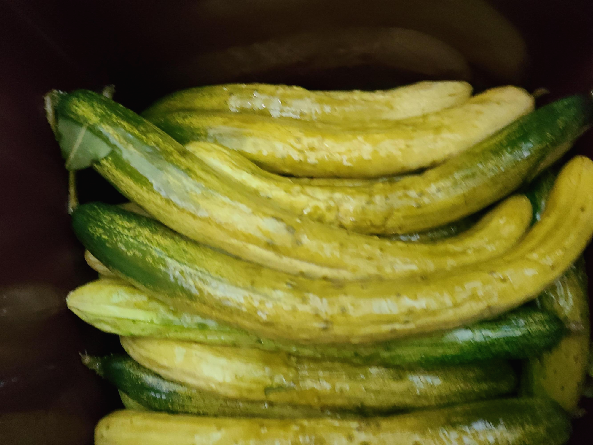실온에 4일을 더 두었더니 오이가 노란색이 되고 겉면이 쪼글쪼글해졌다.