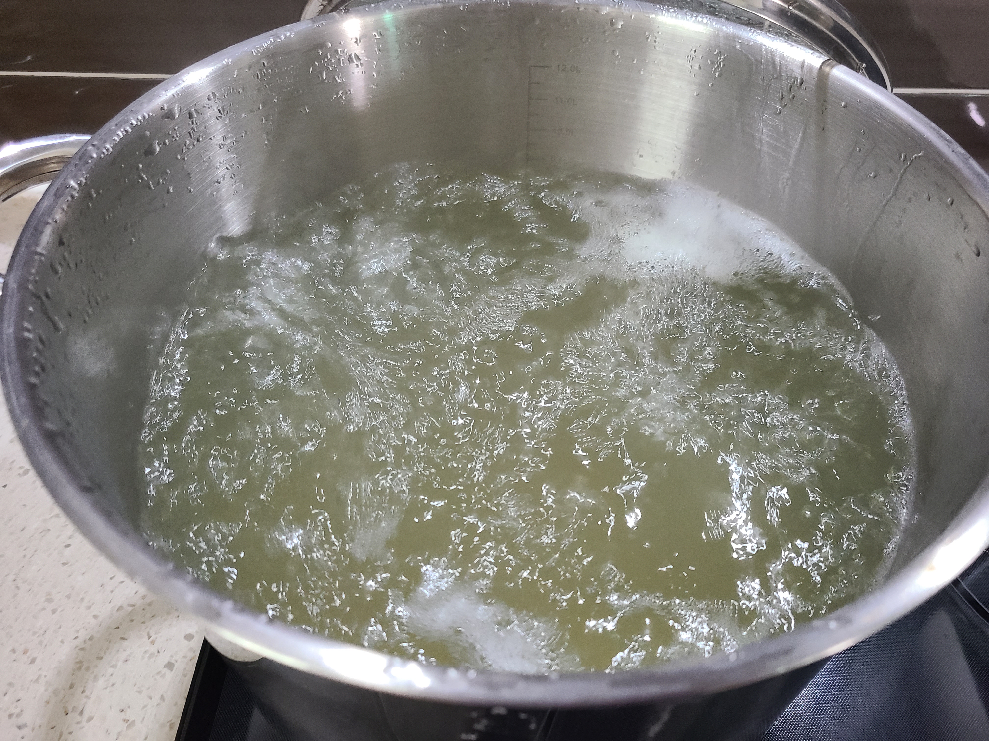 3. 큰 들통에 천일염과 물을 1: 10의 비율로 담아 끓여준다.(사진을 찍는다는 것을 잊고 찍지를 못했다.)