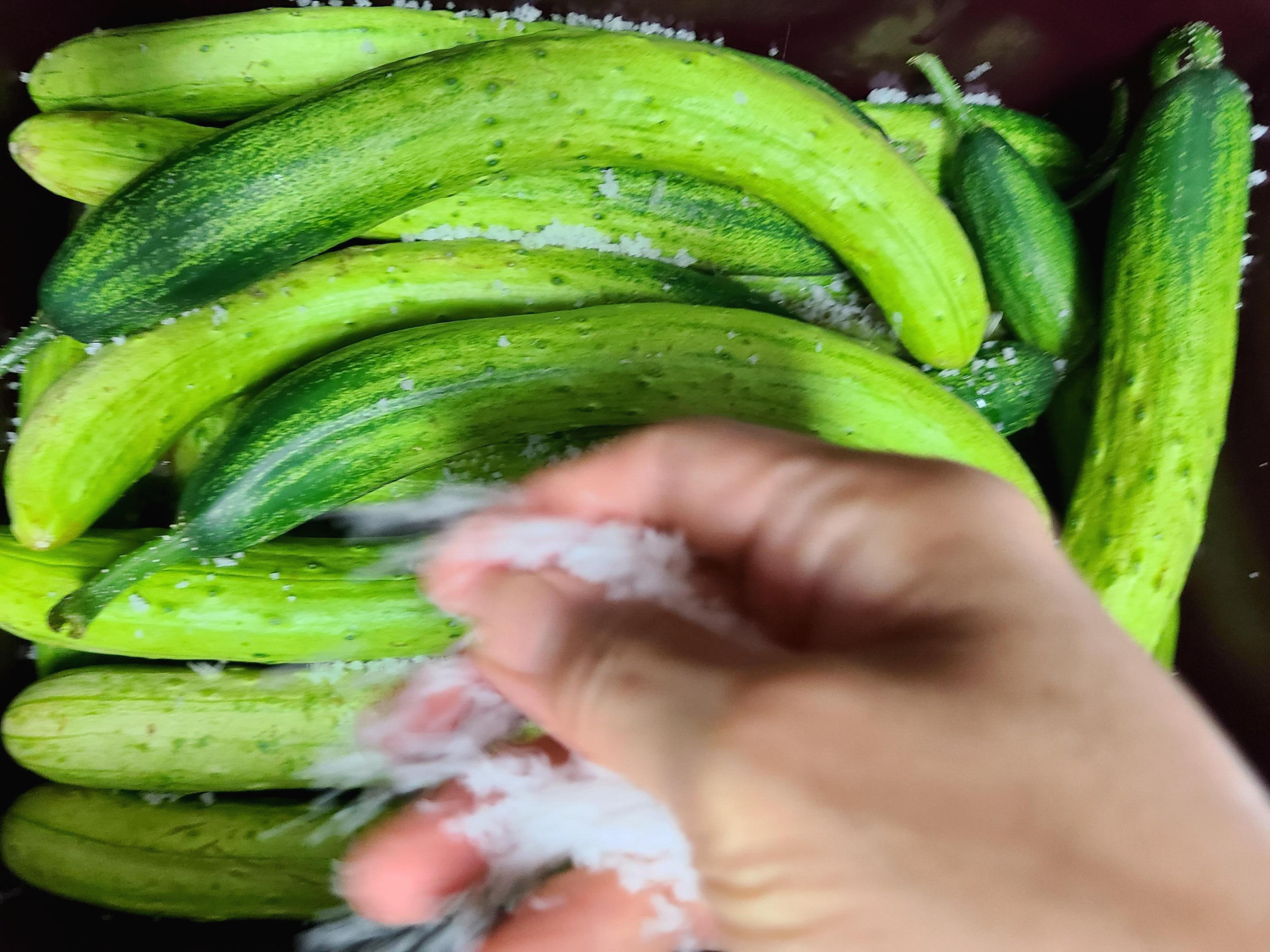 2. 천일염 한 줌을 골고루 뿌려준 후