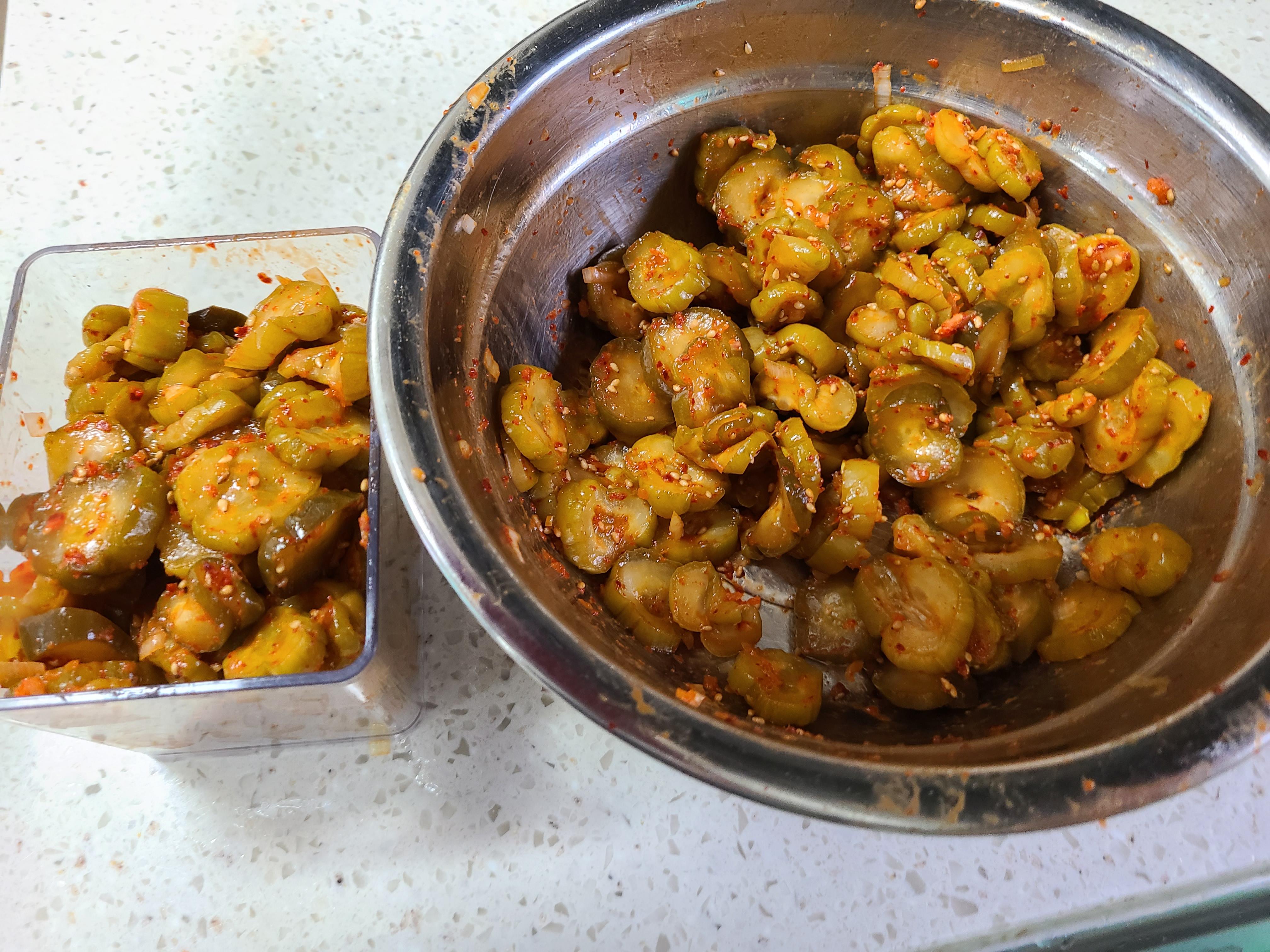 앞으로는 번거롭게 소금물을 끓이기보다는 물 없이 담그는 방법대로 만들어야겠다.