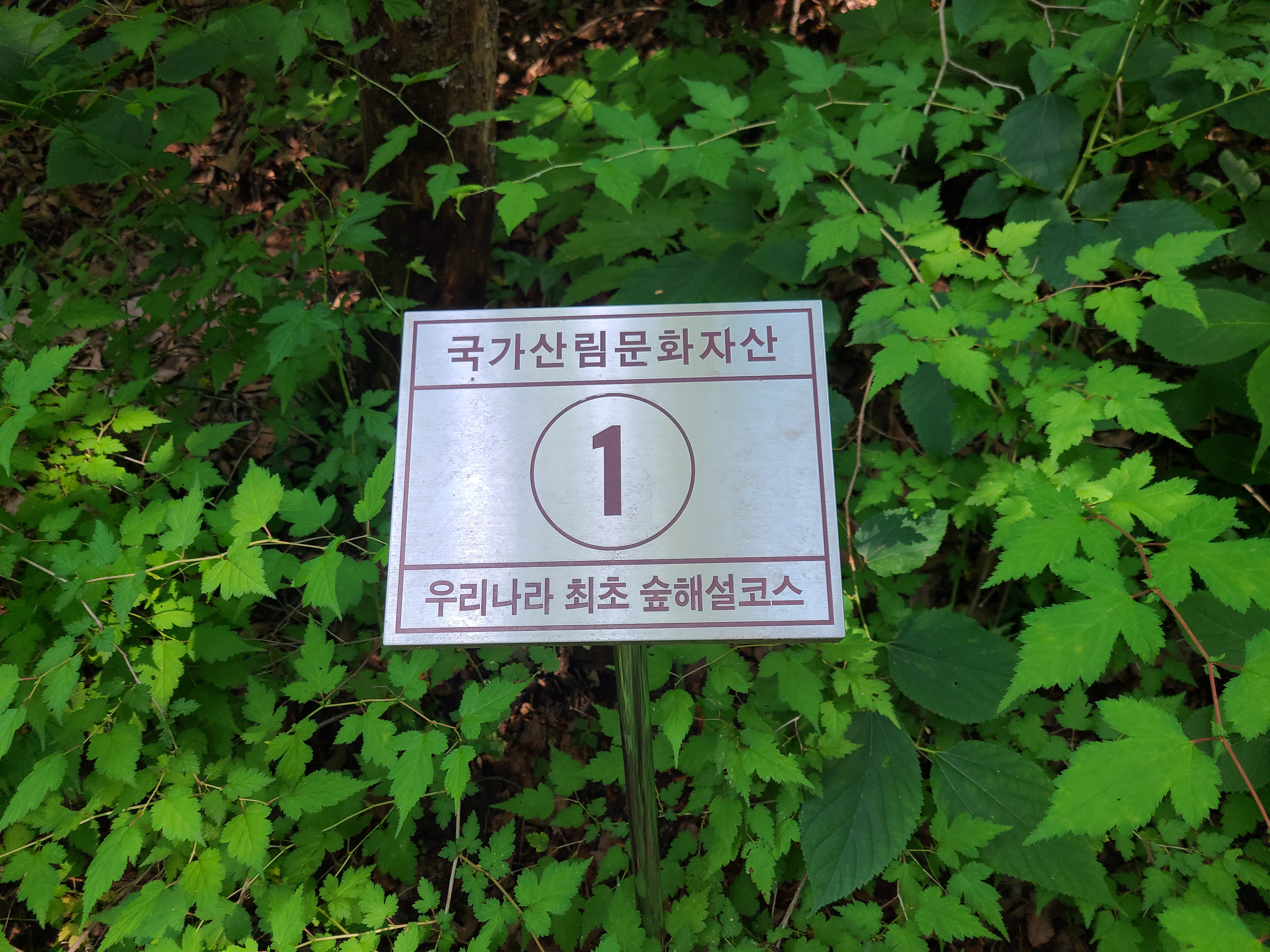 숙소에 짐을 풀은 우리는 휴양림 산책을 시작했다. 양평시내에서는 날씨가 무척 뜨거웠는데 산음 자연휴양림은 너무도 시원했다. 매표소 근처 치유의 숲 코스 시작점을 향해 내려갔다.