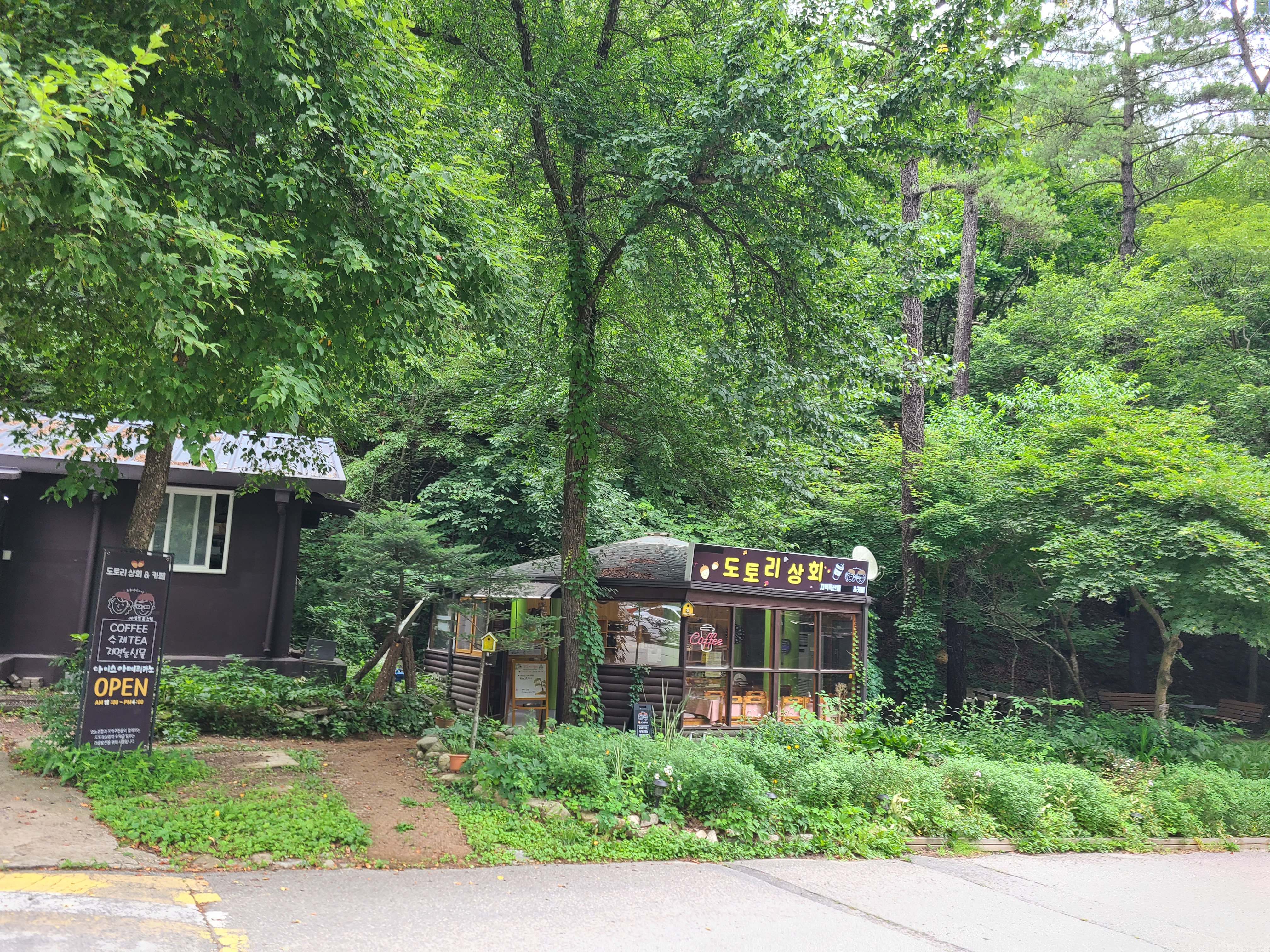시장 건너편에 있는 카페에서 시원한 아이스커피를 마시며 우리는 두물머리와 세미원 구경을 포기하고 산음 자연휴양림으로 바로 들어가기로 했다.