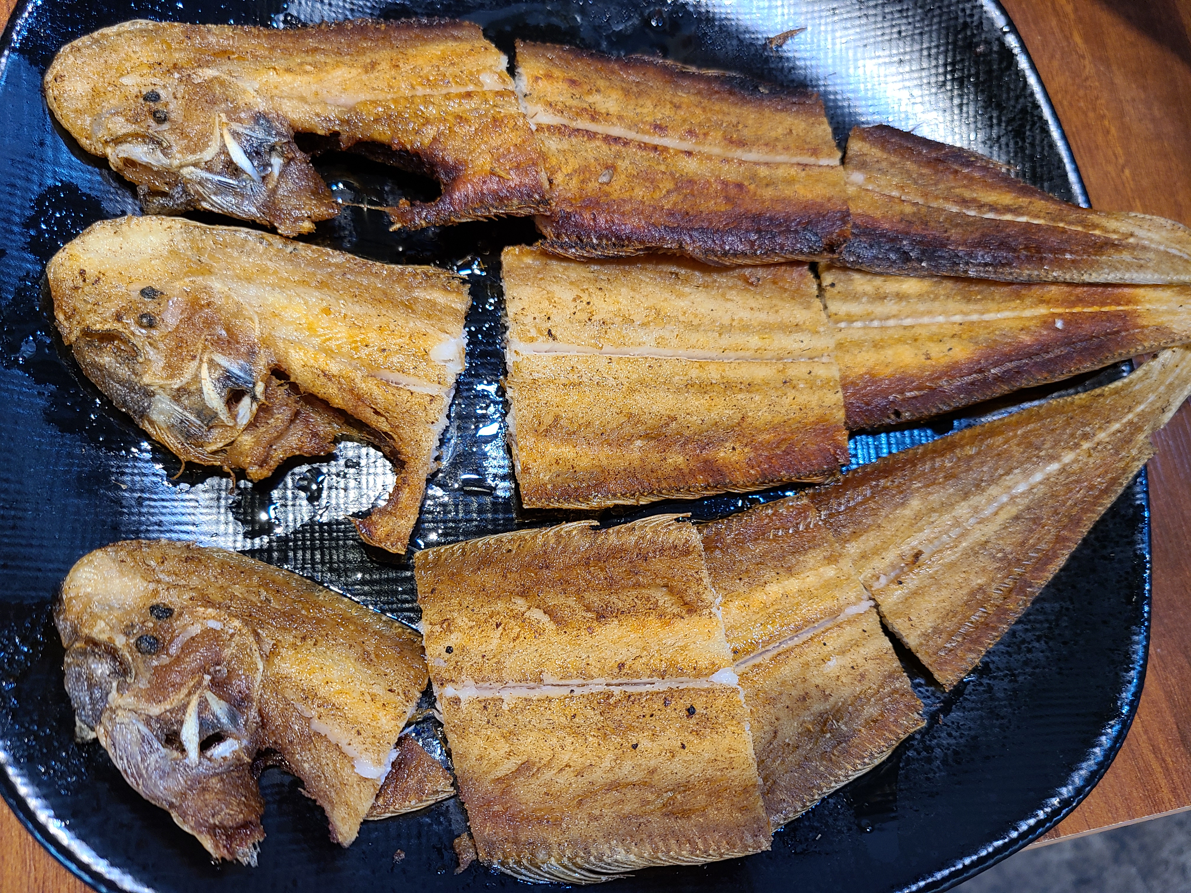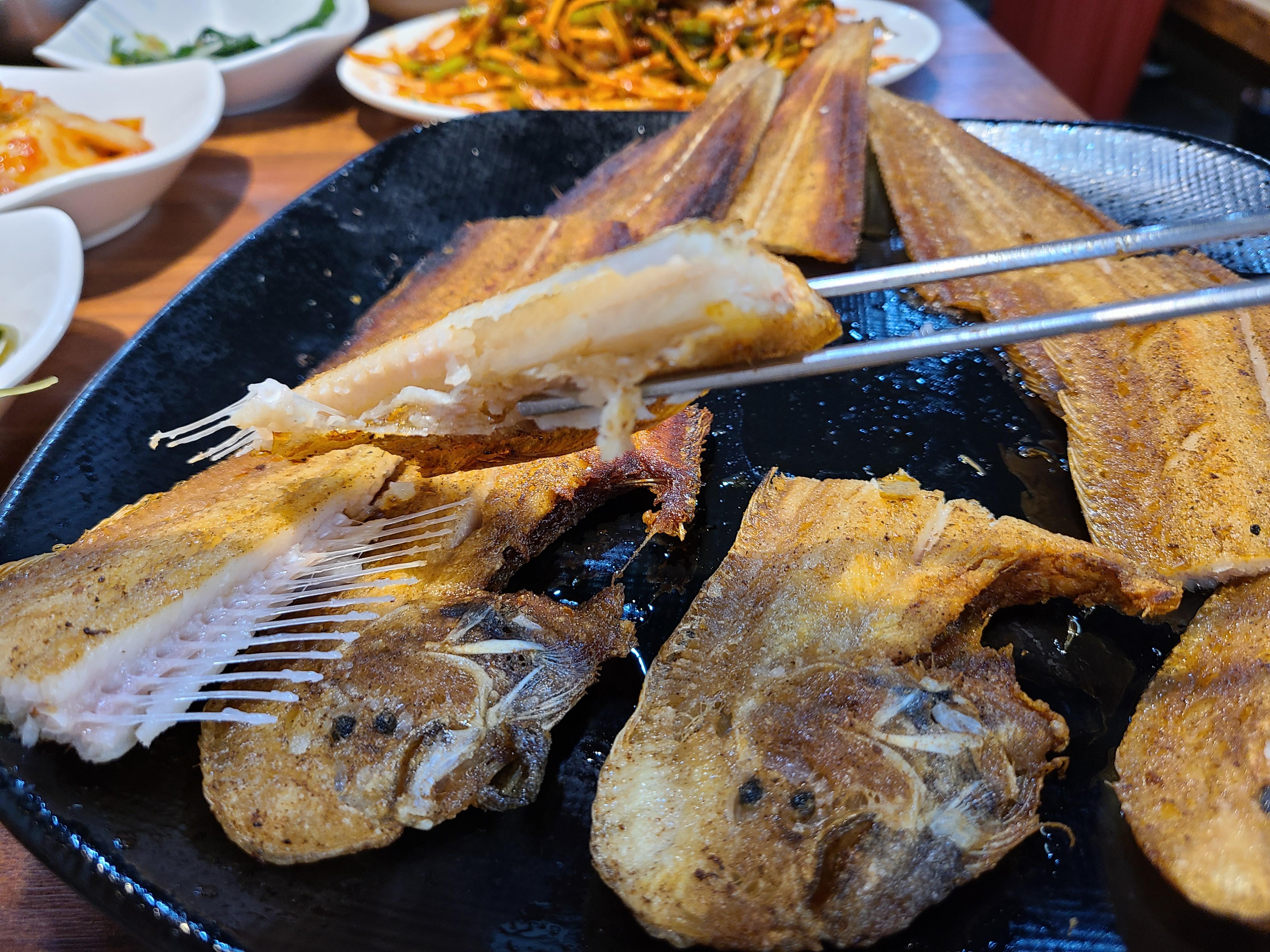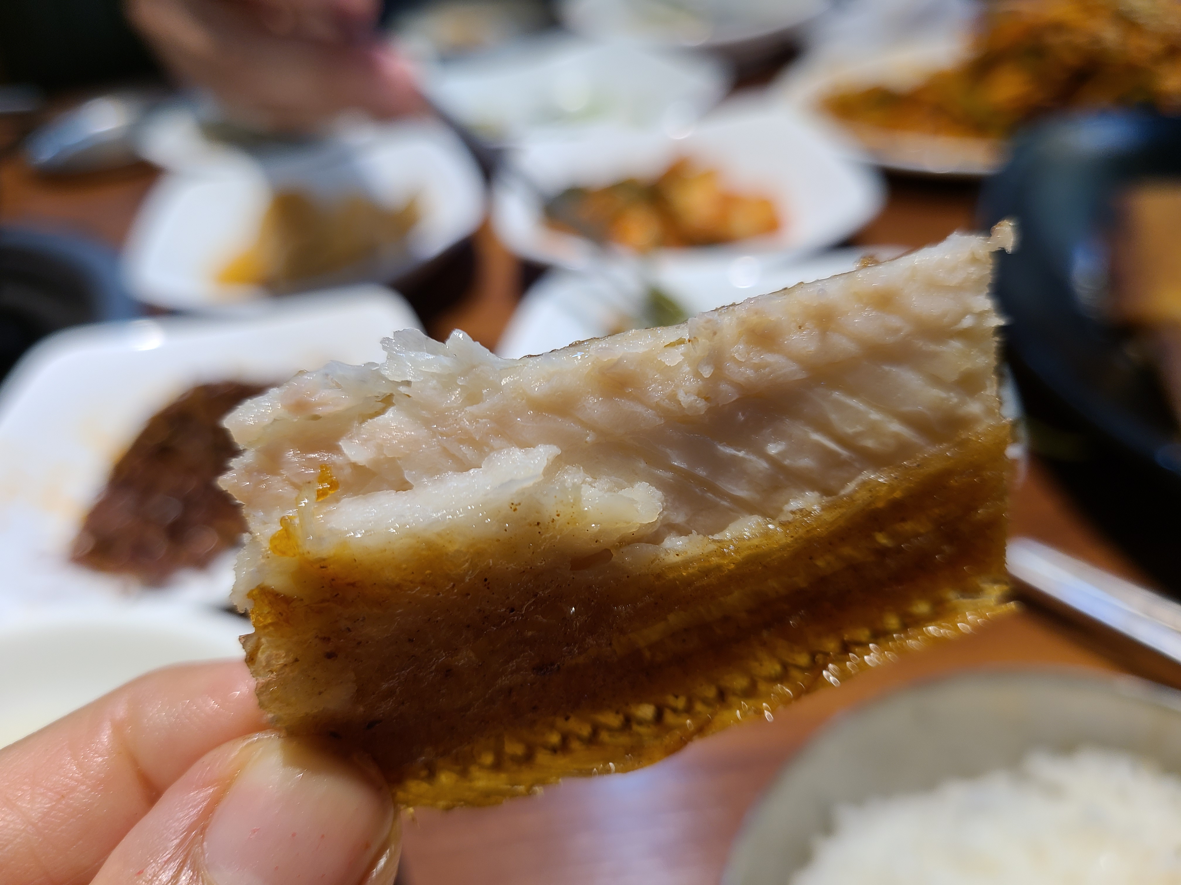 박대 구이를 먹는데 생선을 먹는다기 보다는 기름에 튀긴 과자를 먹는 기분이었다.