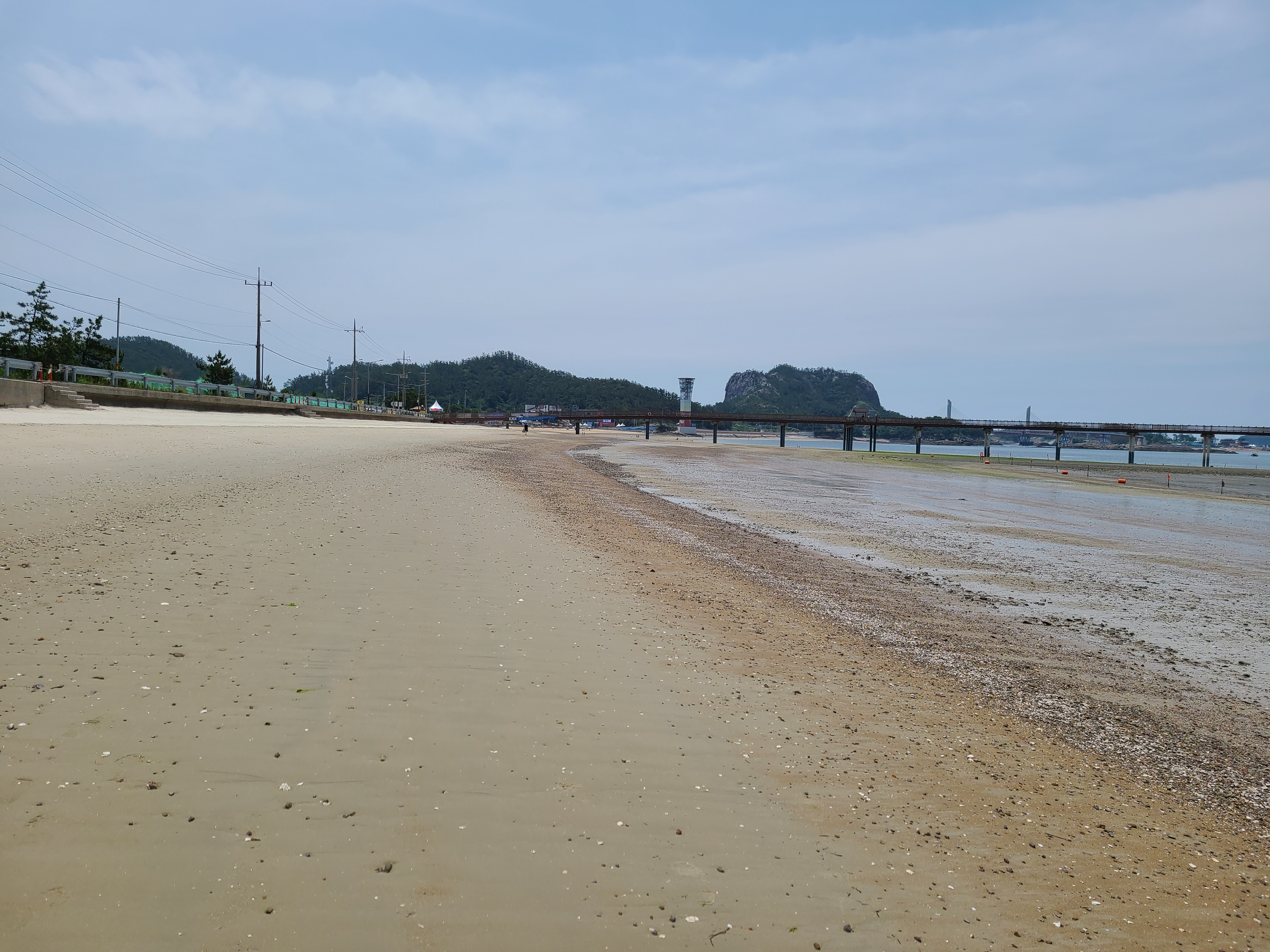 본격적인 휴가철이 되지 않은 때여서 인지 수영하는 사람들의 모습은 보이지 않았다. 바닷물이 빠져나간 모래사장을 걷기에 너무 좋았다.