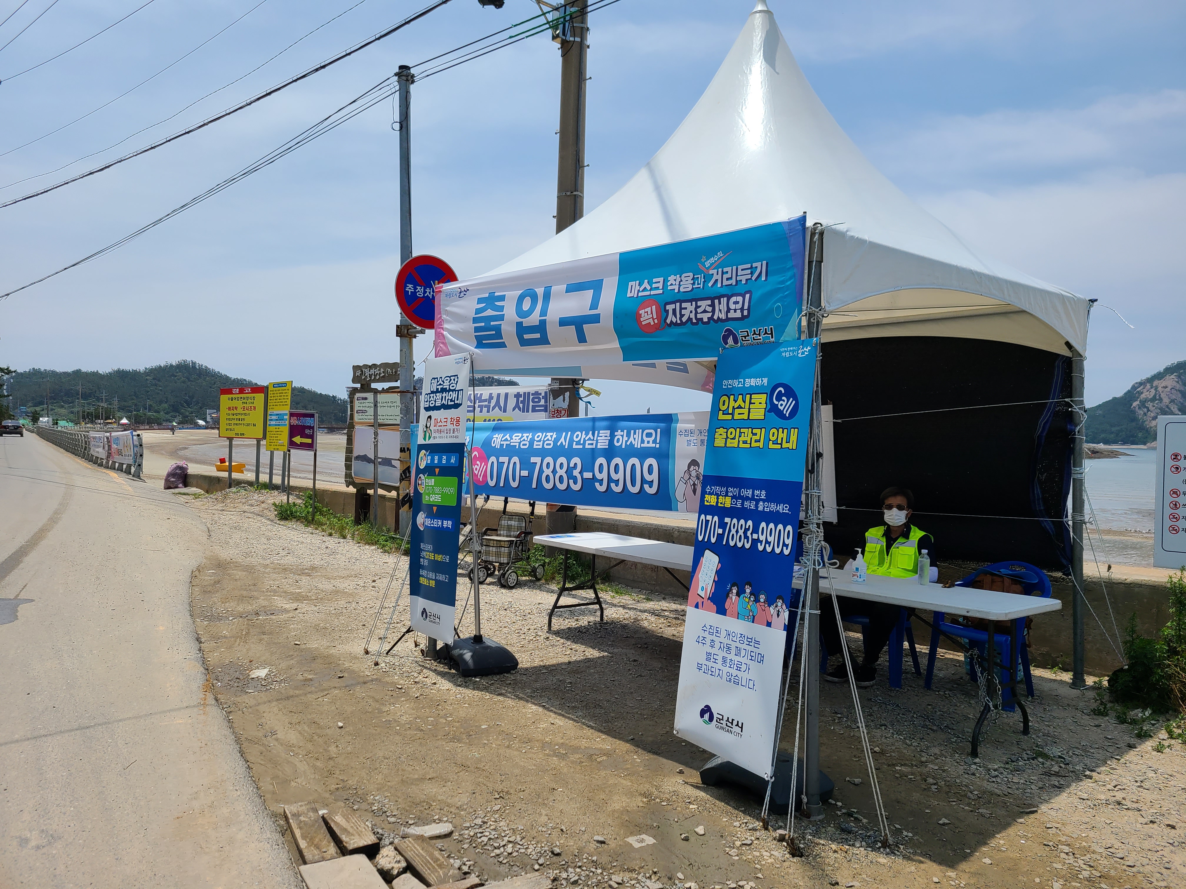 선유도 해수욕장은 전용 출입구에서 체온을 재고 손 소독과 안심콜까지 마쳐야 출입 스티커를 손등에 붙여주었다.