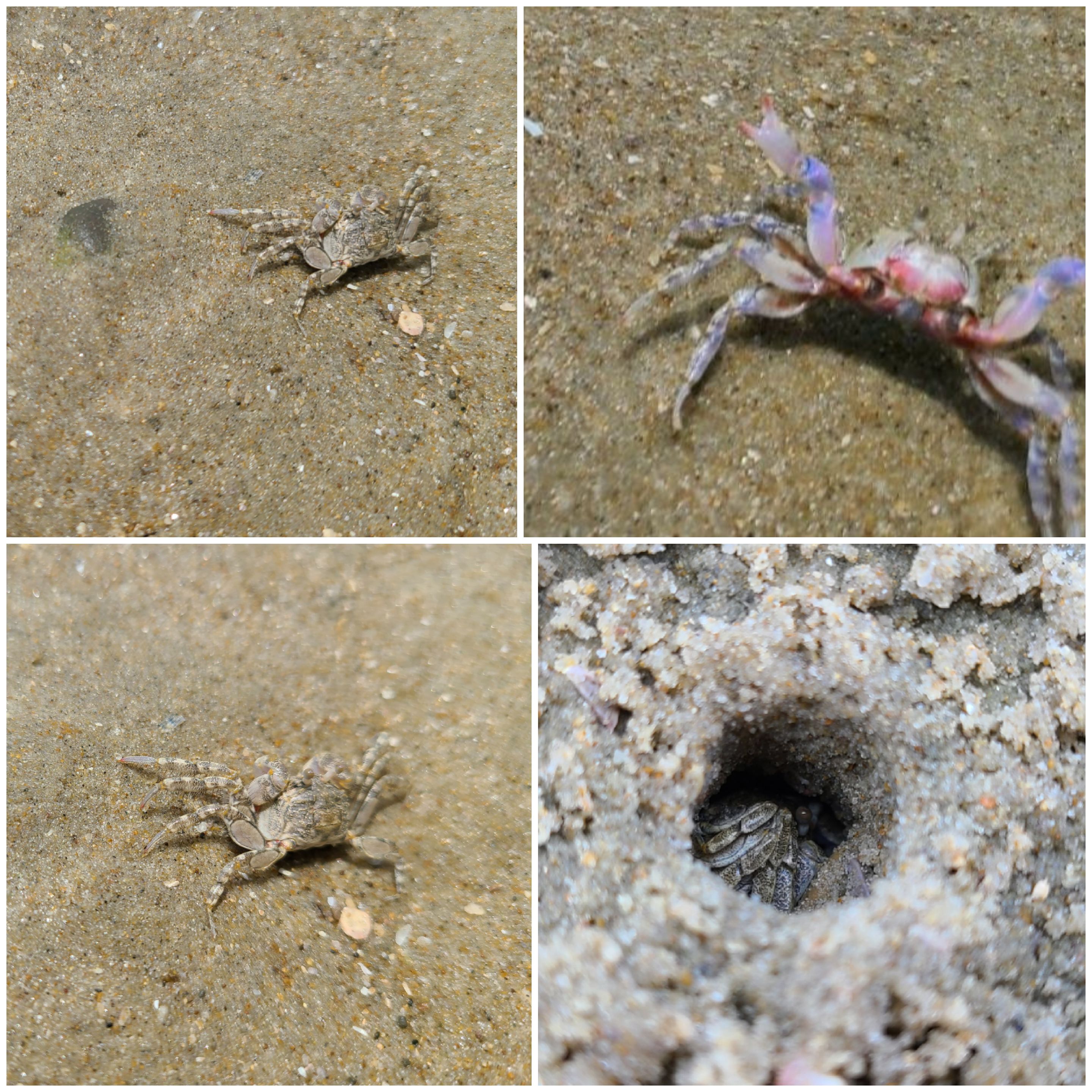아직 피서객들이 몰려오지 않은 선유도 해수욕장을 걷는데 작은 게들이 눈에 많이 띈다. 오른쪽 위에 게 한 마리는 가까이 가서 사진을 찍는데 화가 났는지 집게발을 벌리고 울긋불긋한 배를 보이며 일어서서 공격 자세를 취했다.
